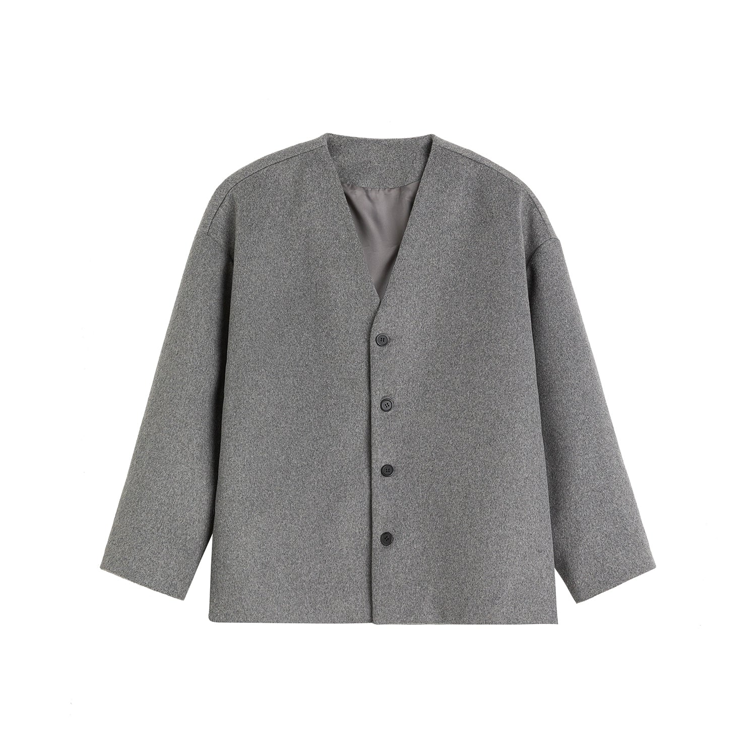 Collarless Solid Oversize Wool Knit Cardigan WN13340