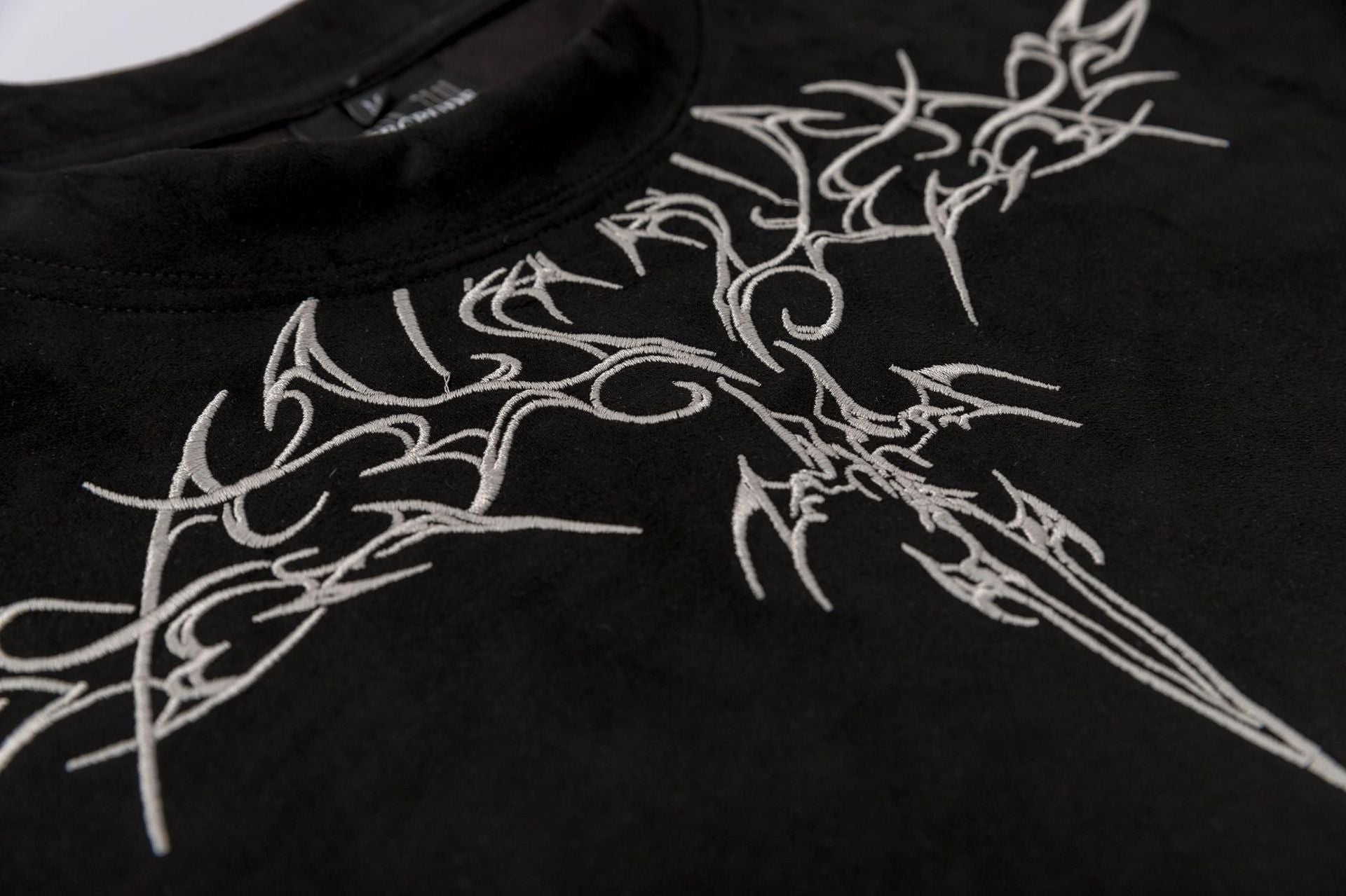 Wing Embroidery Suede Short Sleeve T-Shirt WN16189