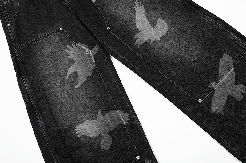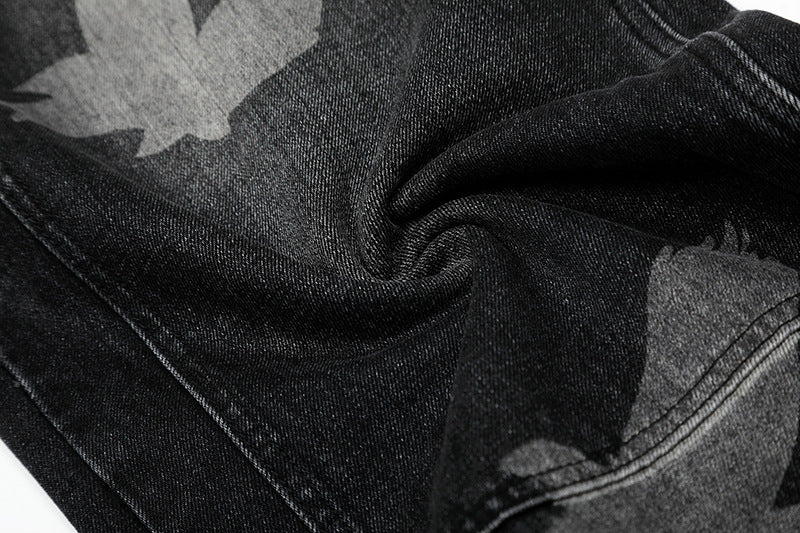 Graphic Design Wide-Leg Straight Denim Jeans WN18535