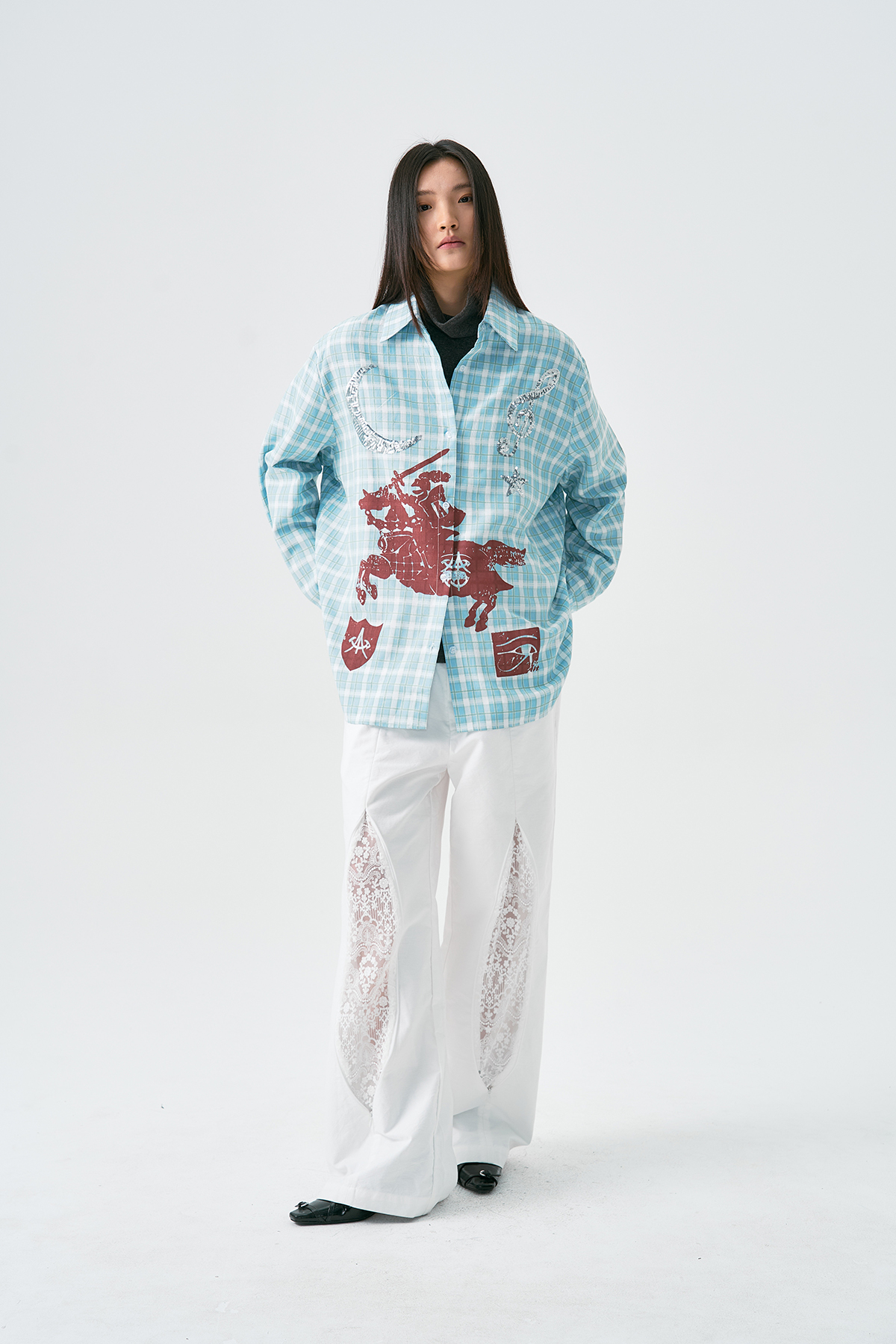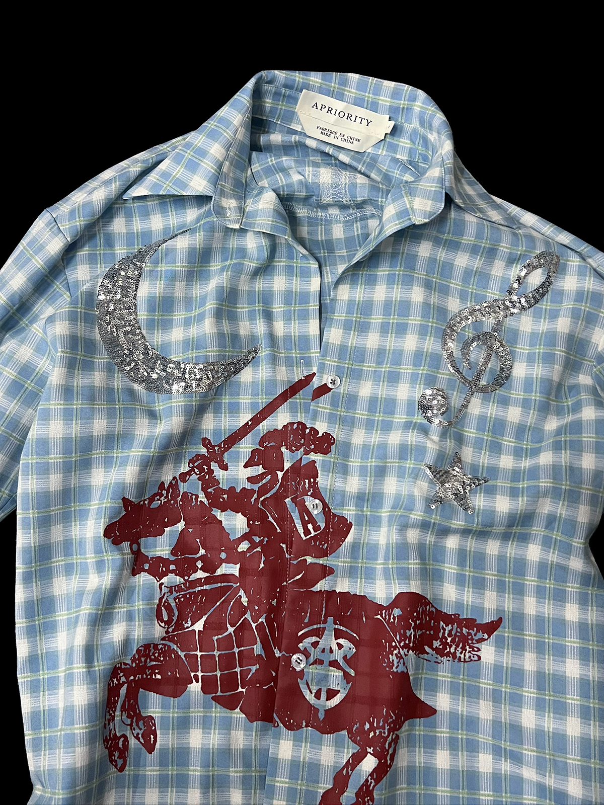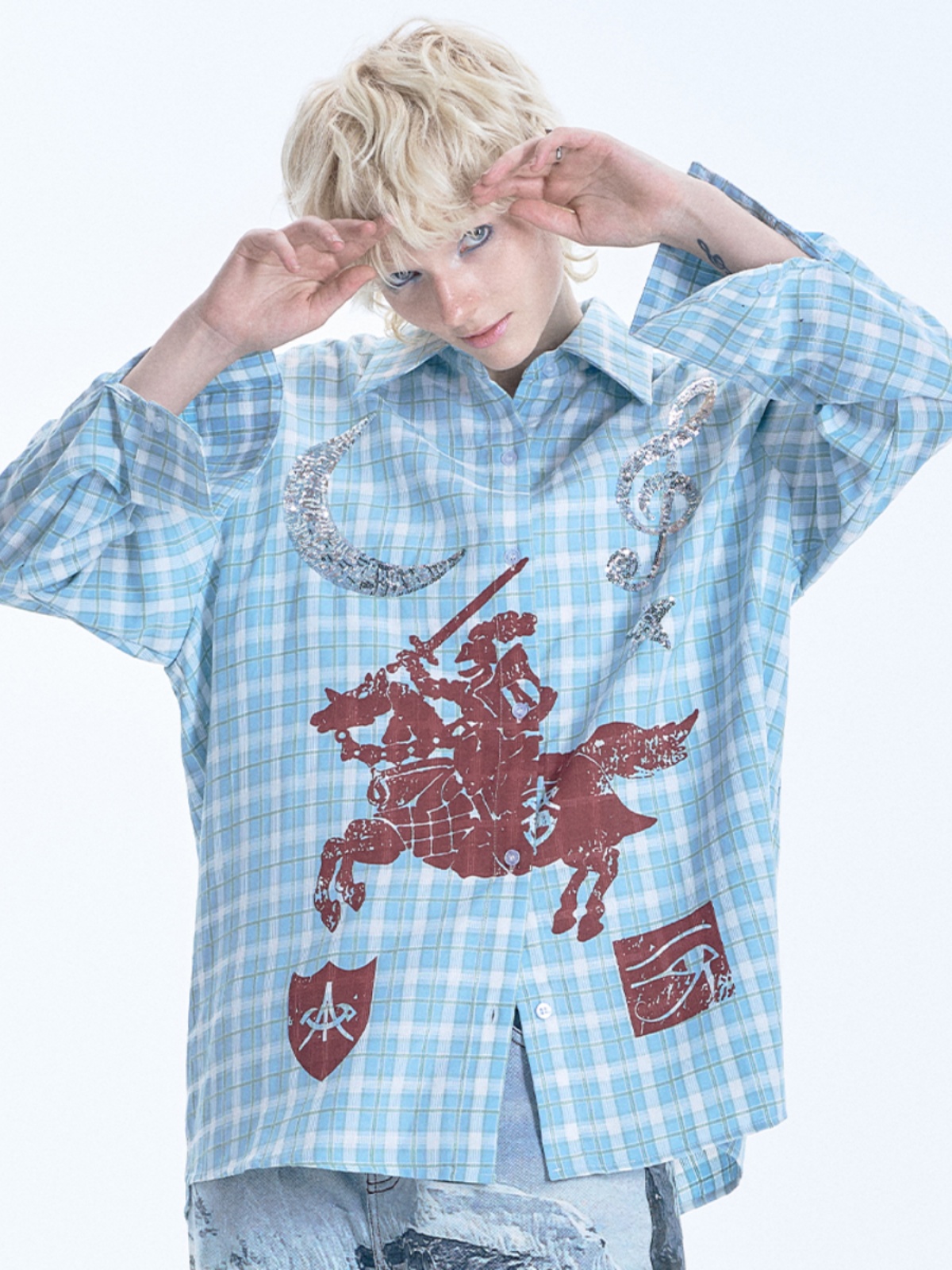 Don Quixote Print Sequin Embroidery Long Sleeve Shirt WN18993