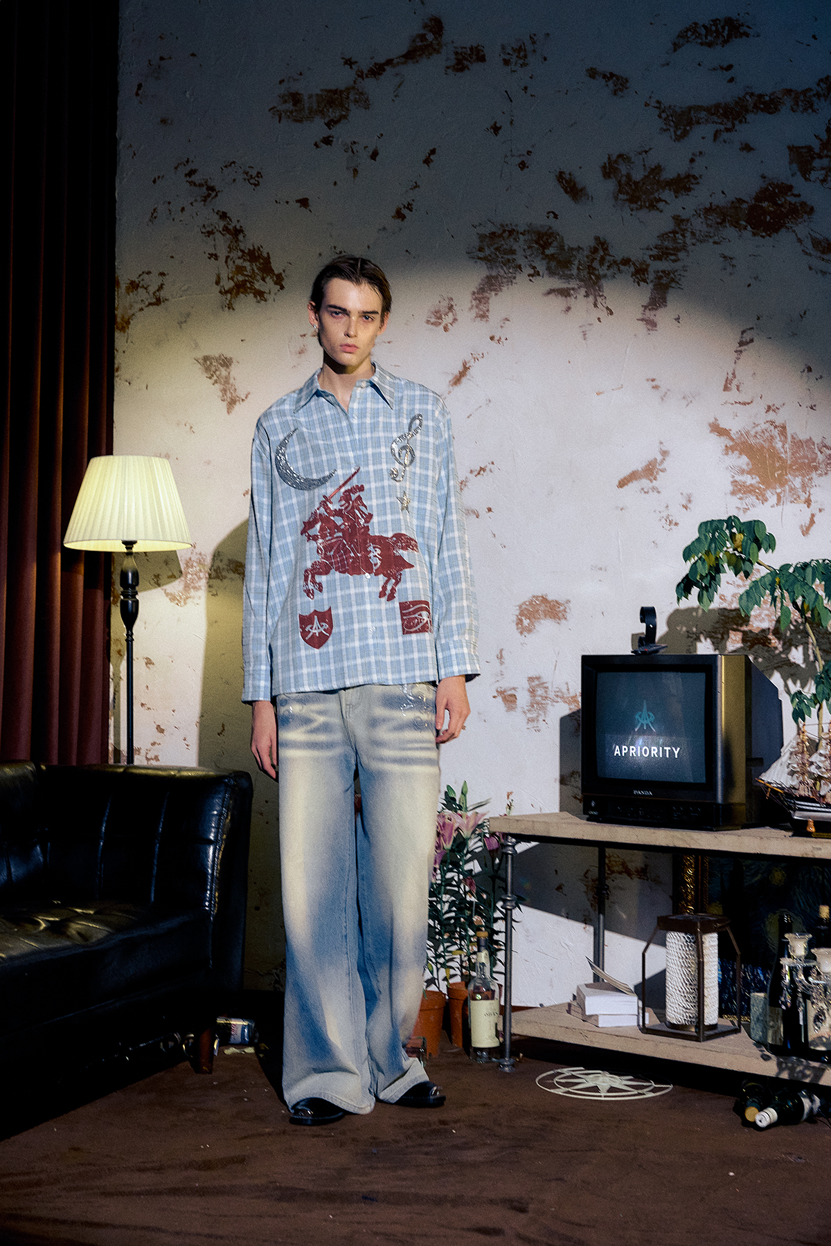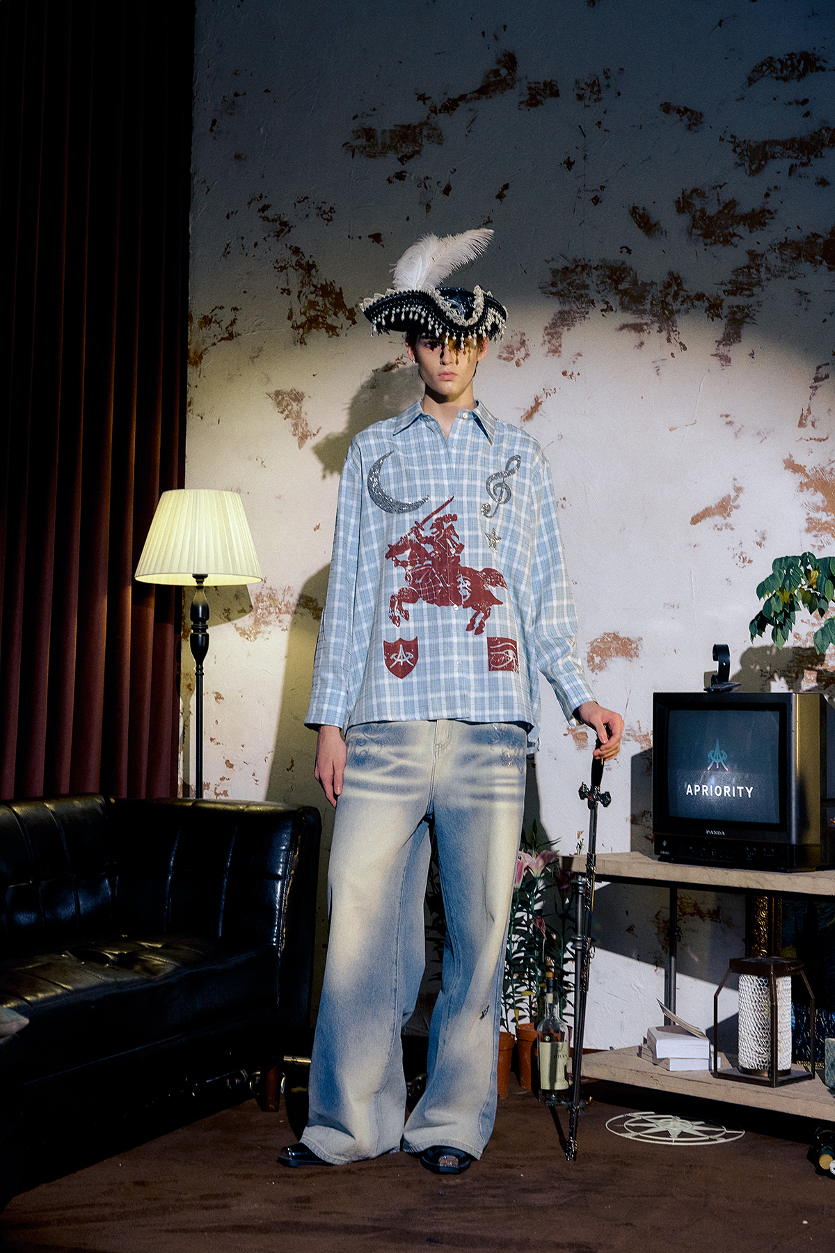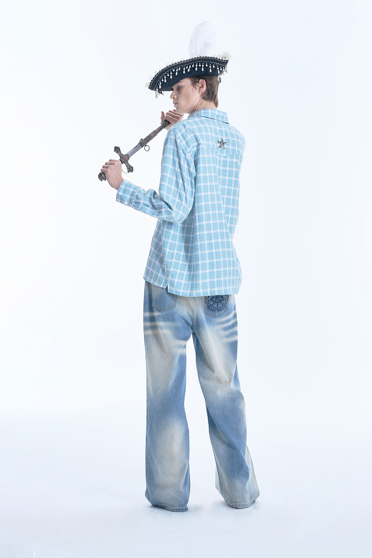 Don Quixote Print Sequin Embroidery Long Sleeve Shirt WN18993