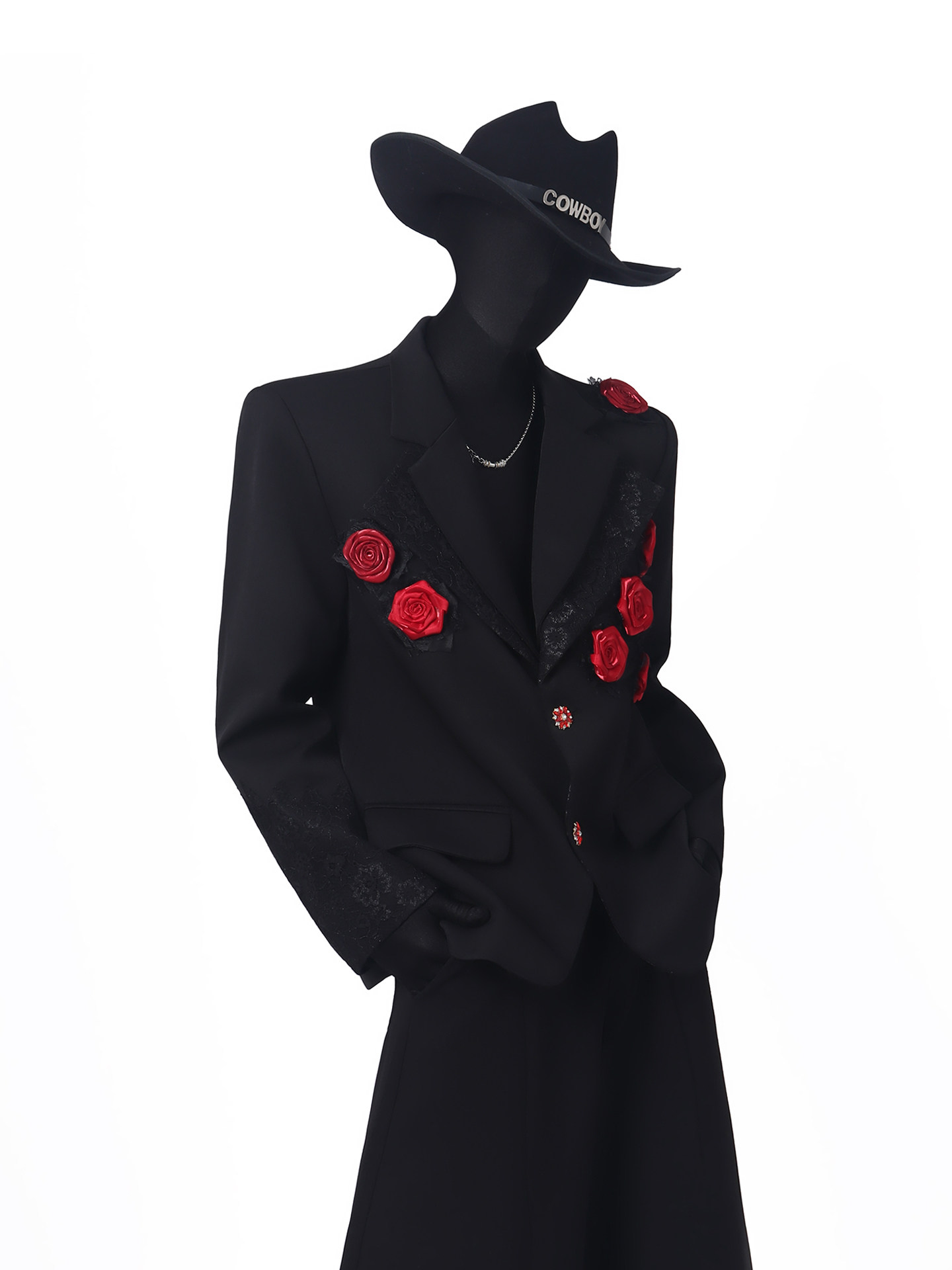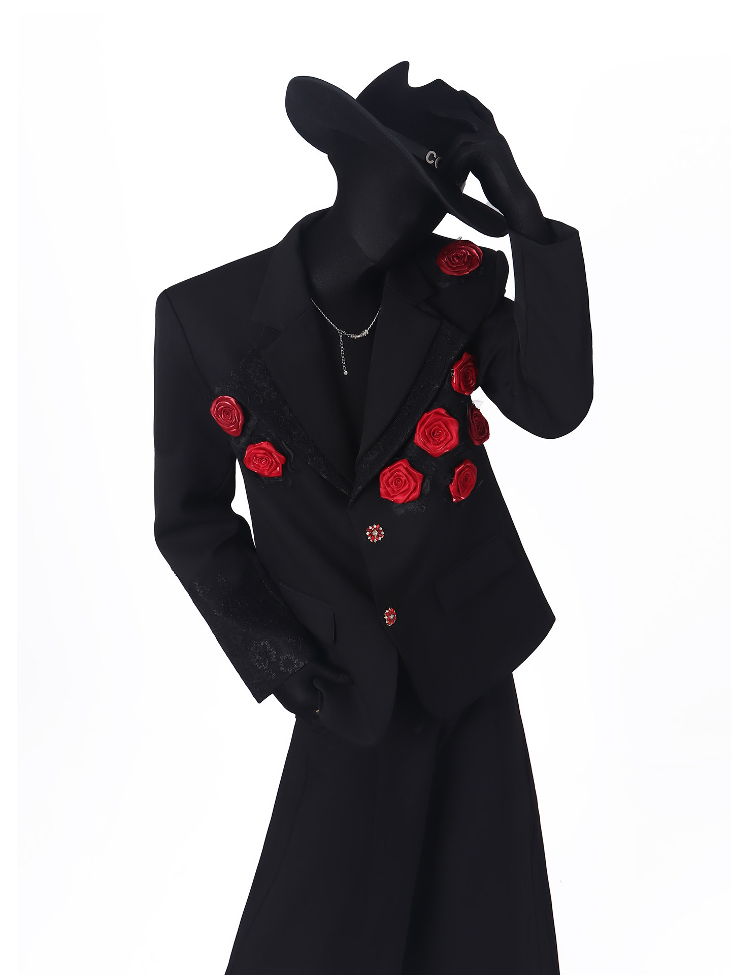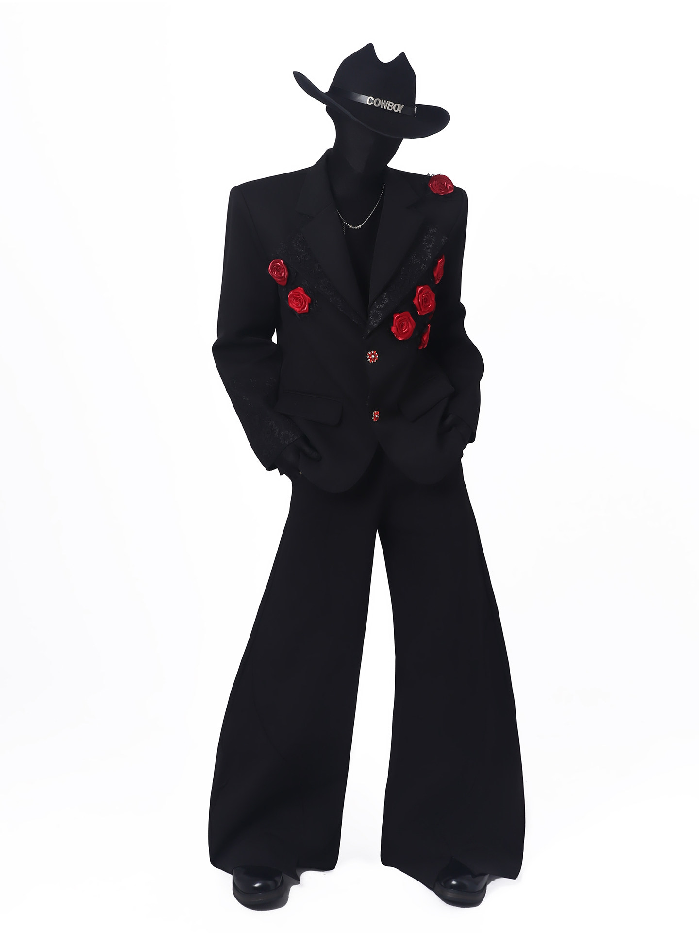 3D Flower Design Tailored Jacket & Wide-Leg Trousers Setup WN23753
