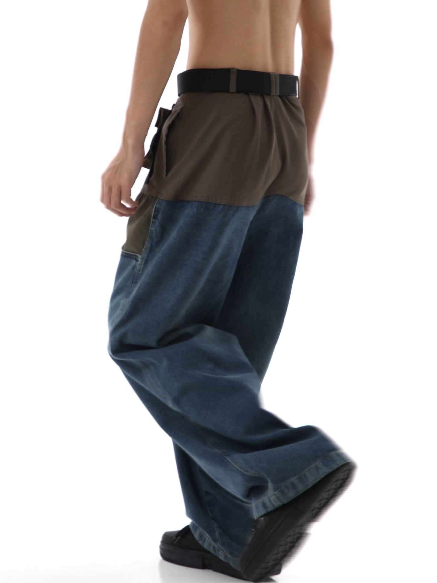 Multi Pocket Patchwork Wide-Leg Straight Denim Jeans WN5704
