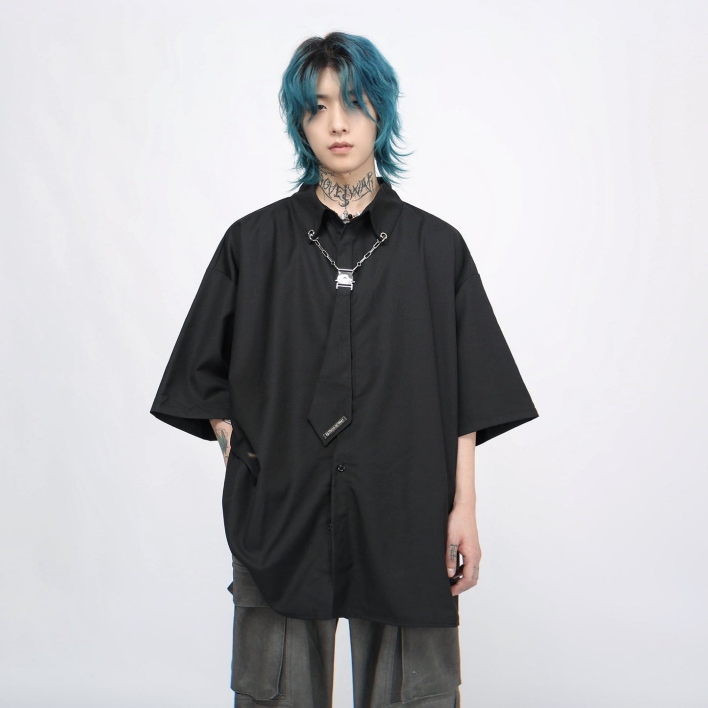 Tie Accessories Design Oversize Short Sleeve Shirt WN5869