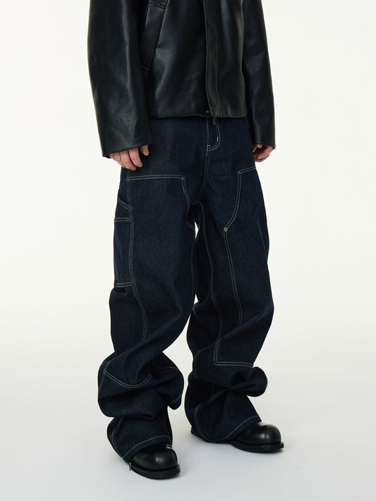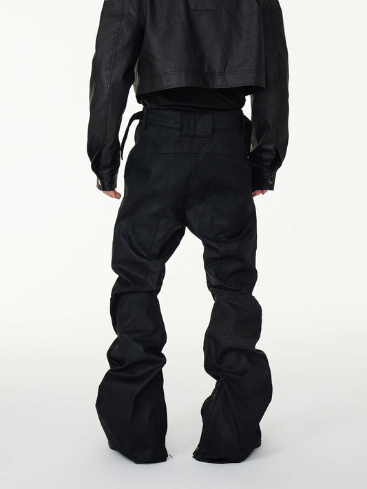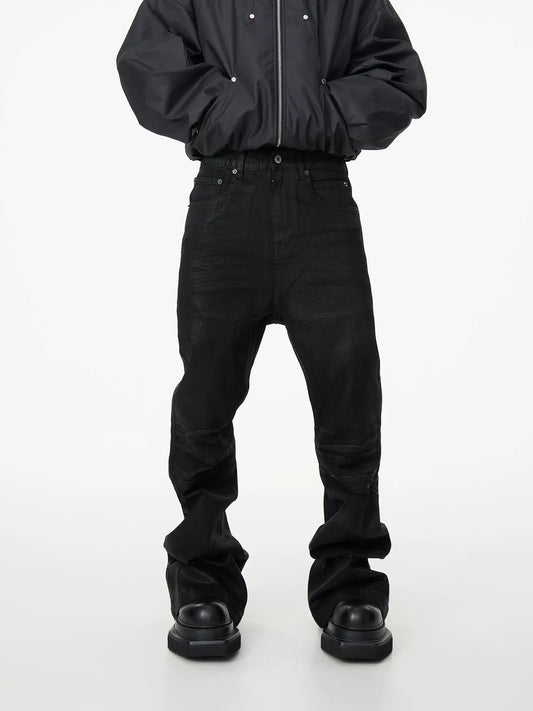 Waxed Coated Biker Armor Pleats Wide Leg Dragging Denim Jeans WN17003