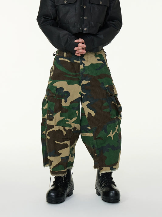 Washed Wrinkle Multi-Pocket Camouflage Cargo Half Pants WN16985
