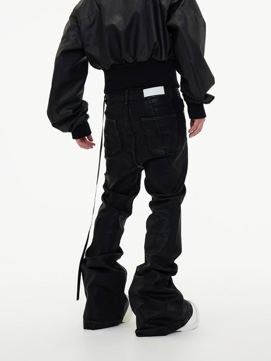 Waxed Coated Patchwork Flare Denim Jeans WN16979