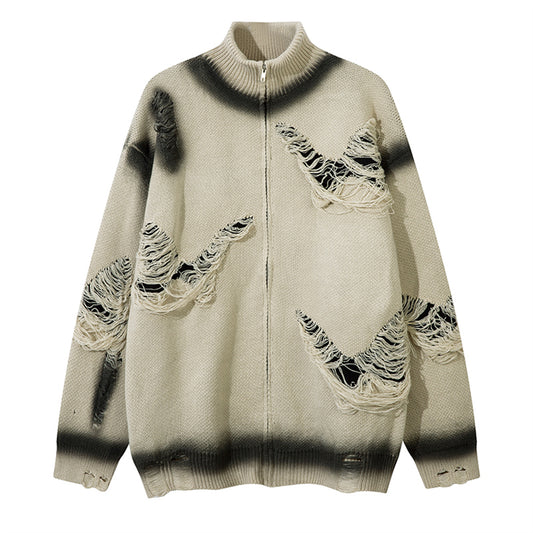 Butterfly Spray-Paint High-Neck Oversize Knit Cardigan WN11562