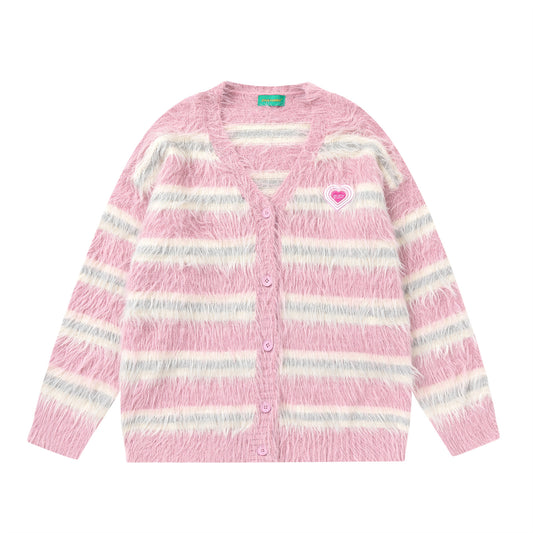 Stripe Heart Embroidery Collegiate Knit Cardigan WN11522