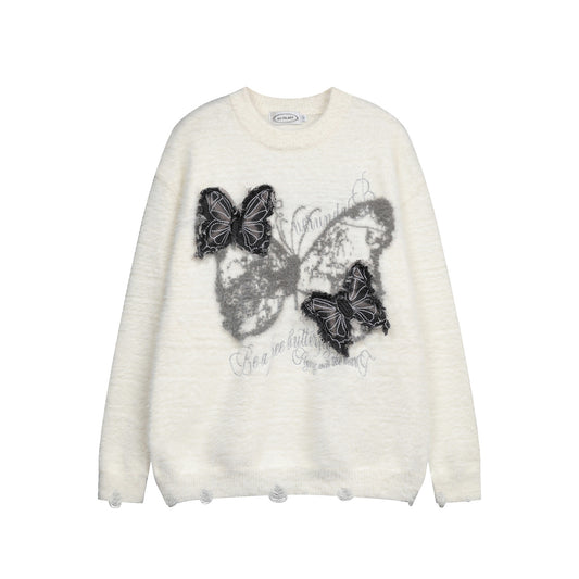 Butterfly Patchwork Embroidery Knit Sweater WN11539