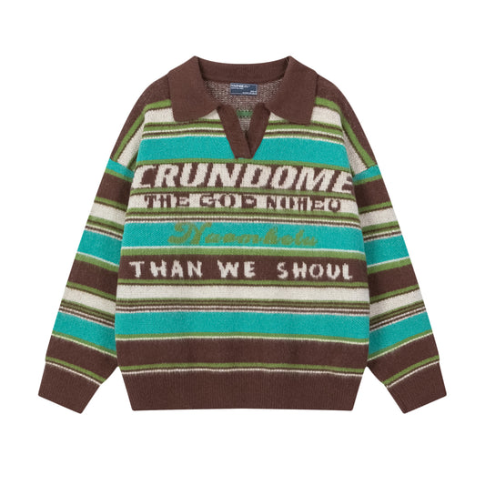 Stripe Polo Collar Knit Sweater WN11520