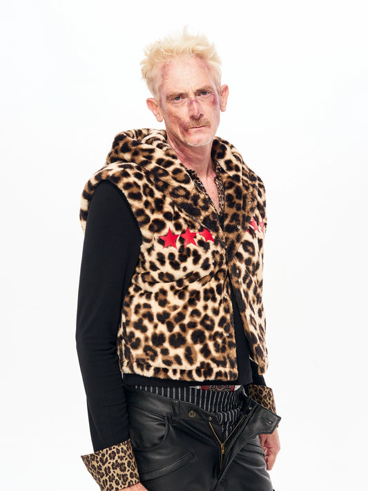 Star Patch PU Leather Hooded Zipper Vest WN18800