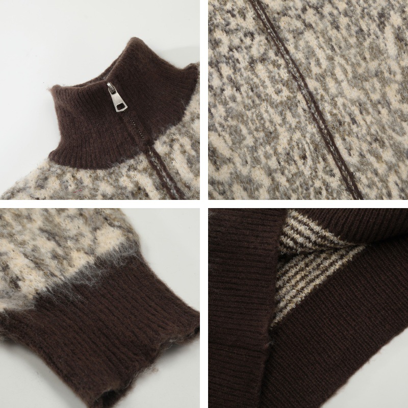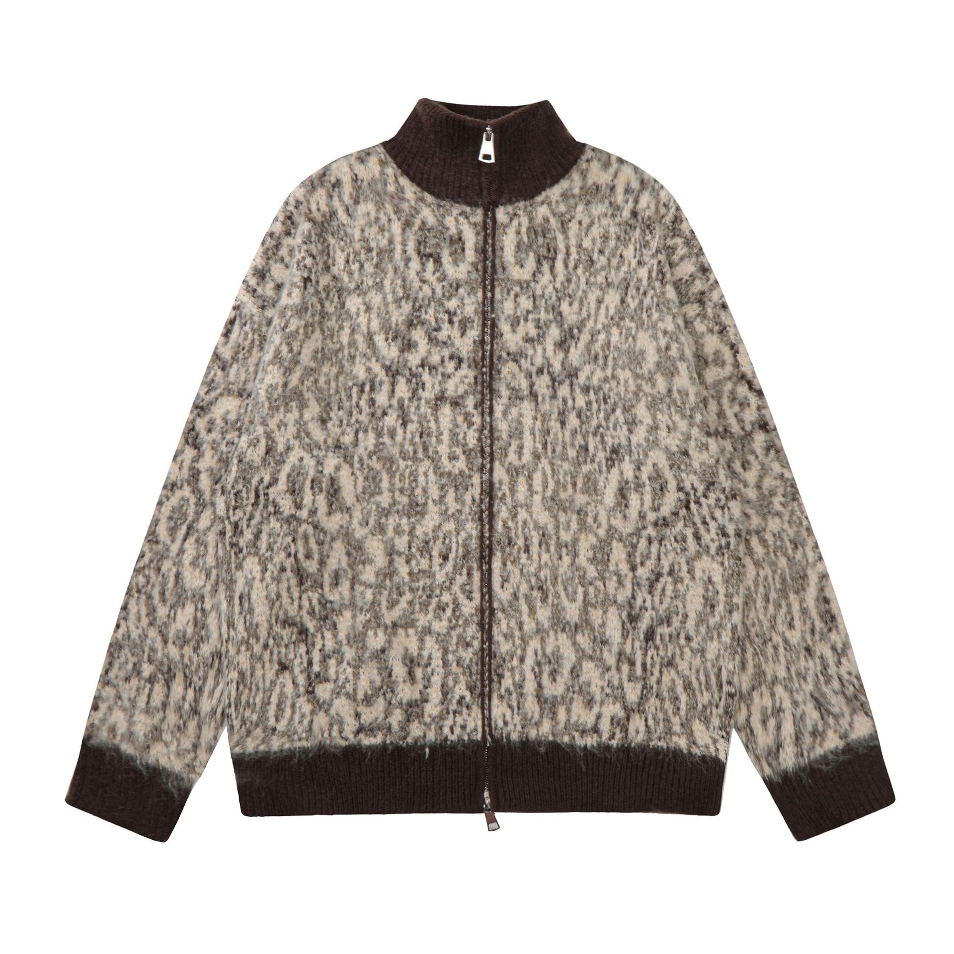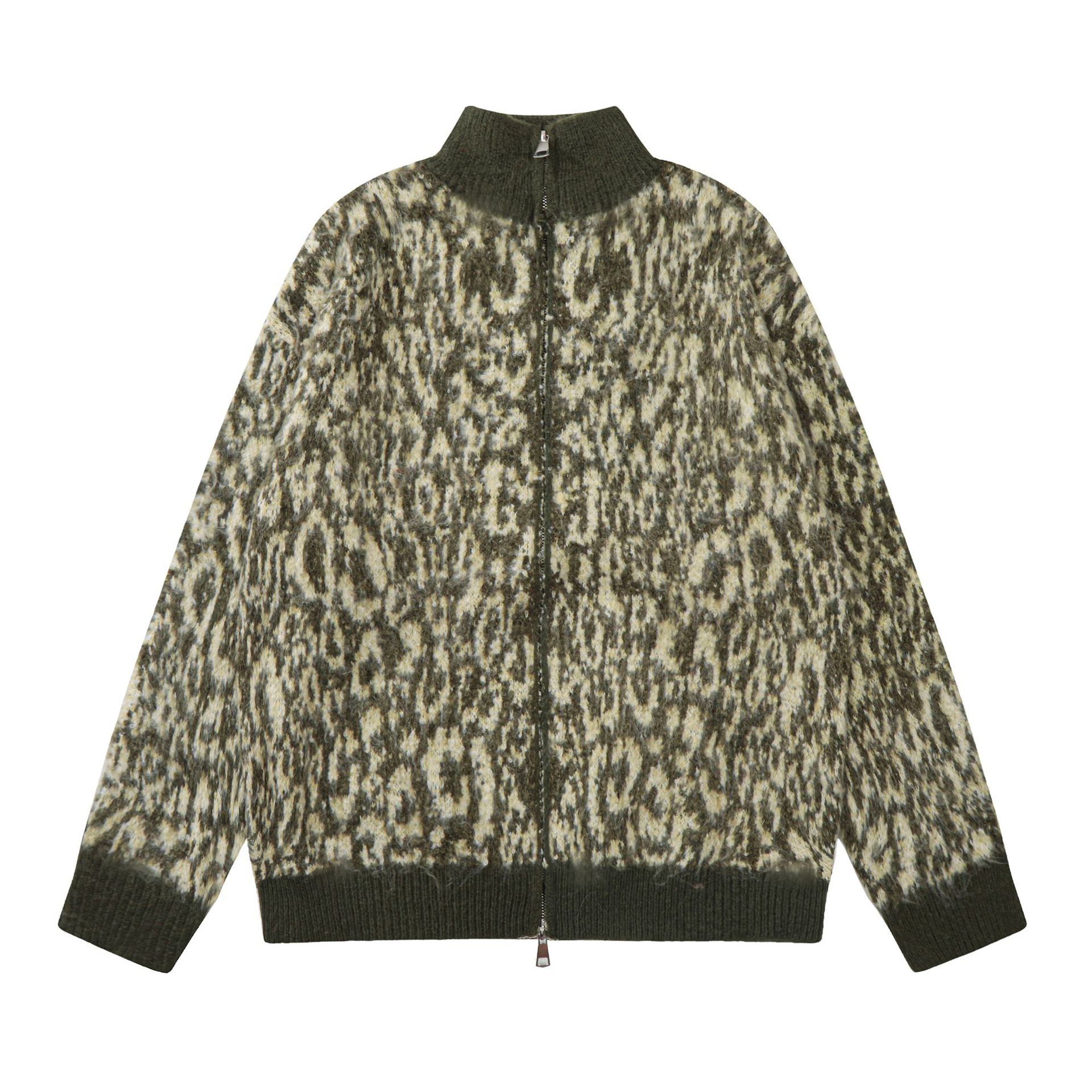 Double-Zipper Leopard Print Knit Cardigan WN11179