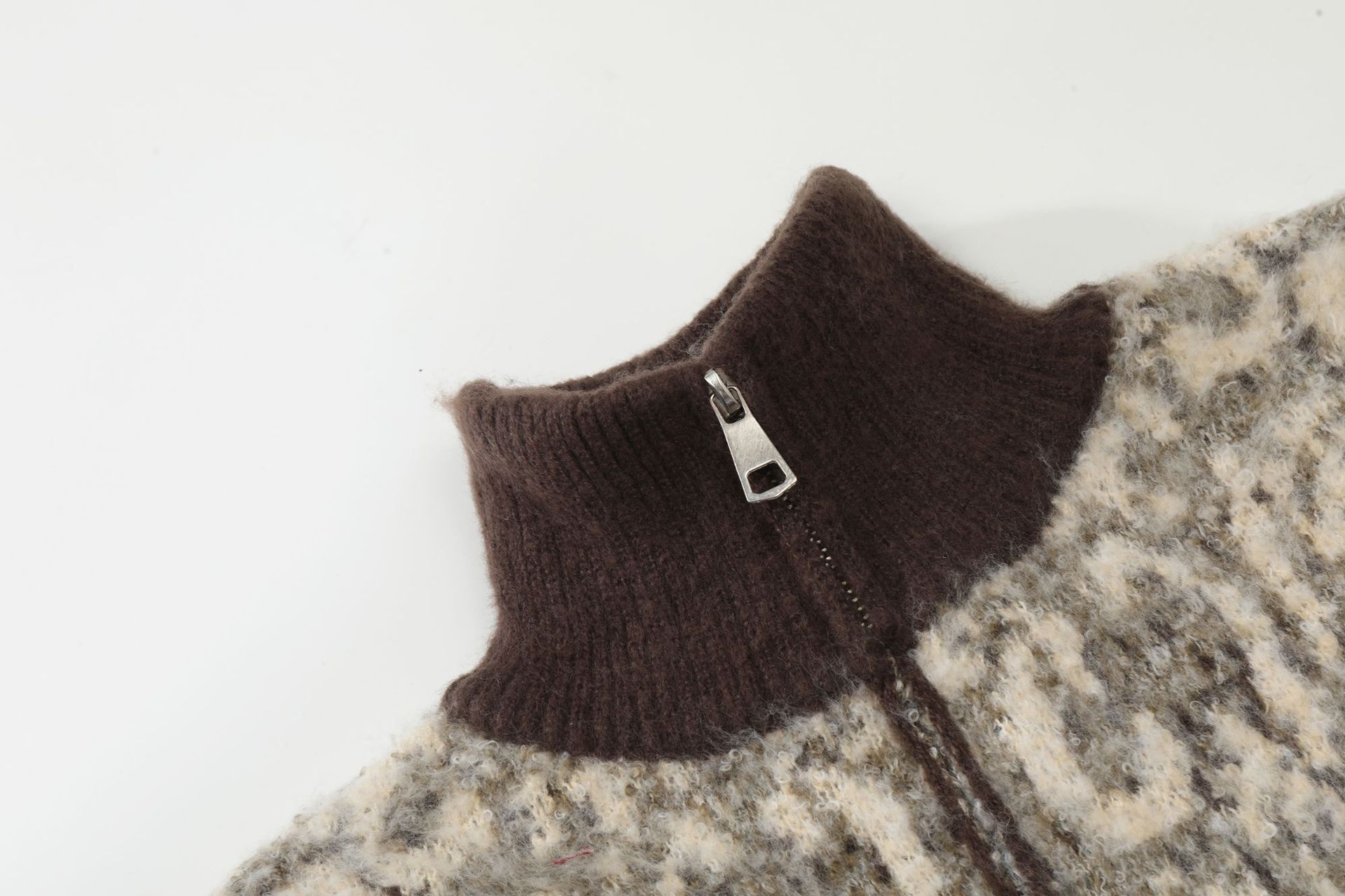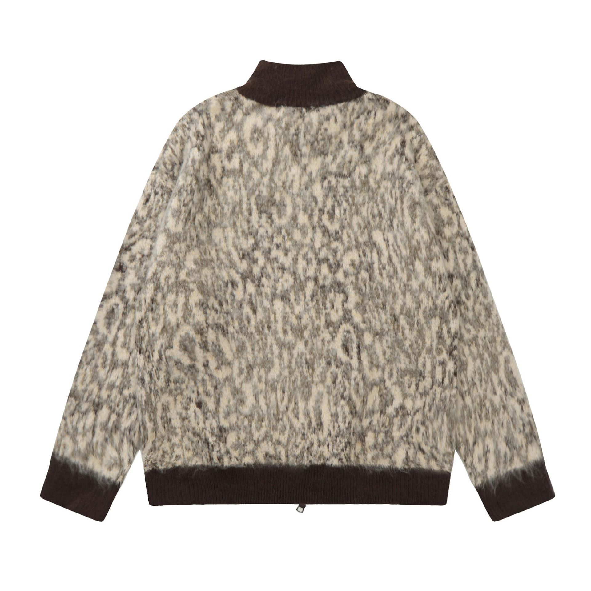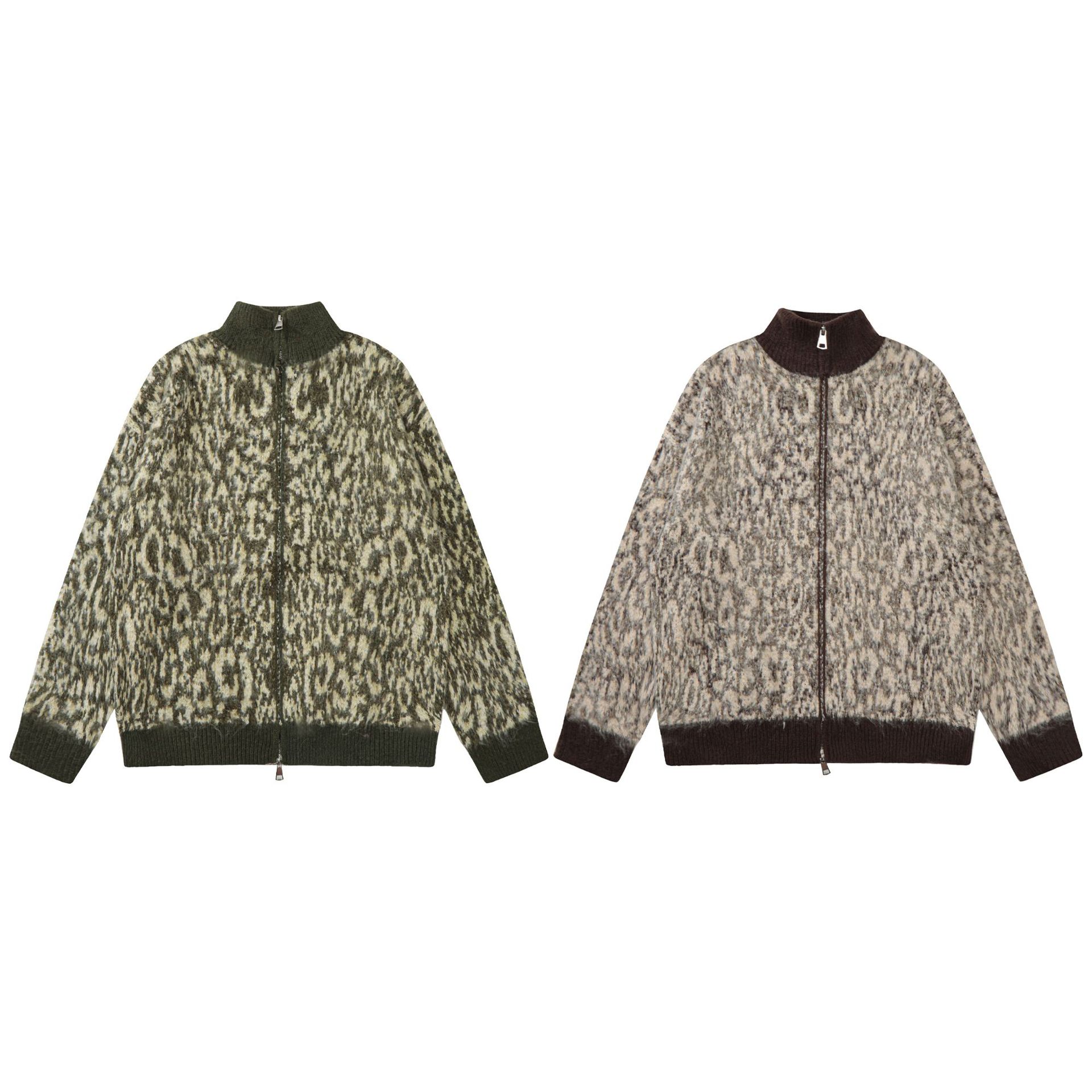 Double-Zipper Leopard Print Knit Cardigan WN11179