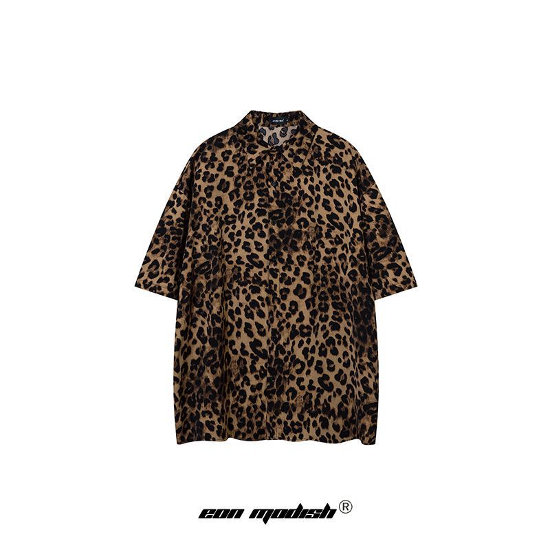 Oversize Leopard Print Short Sleeve Shirt WN13108