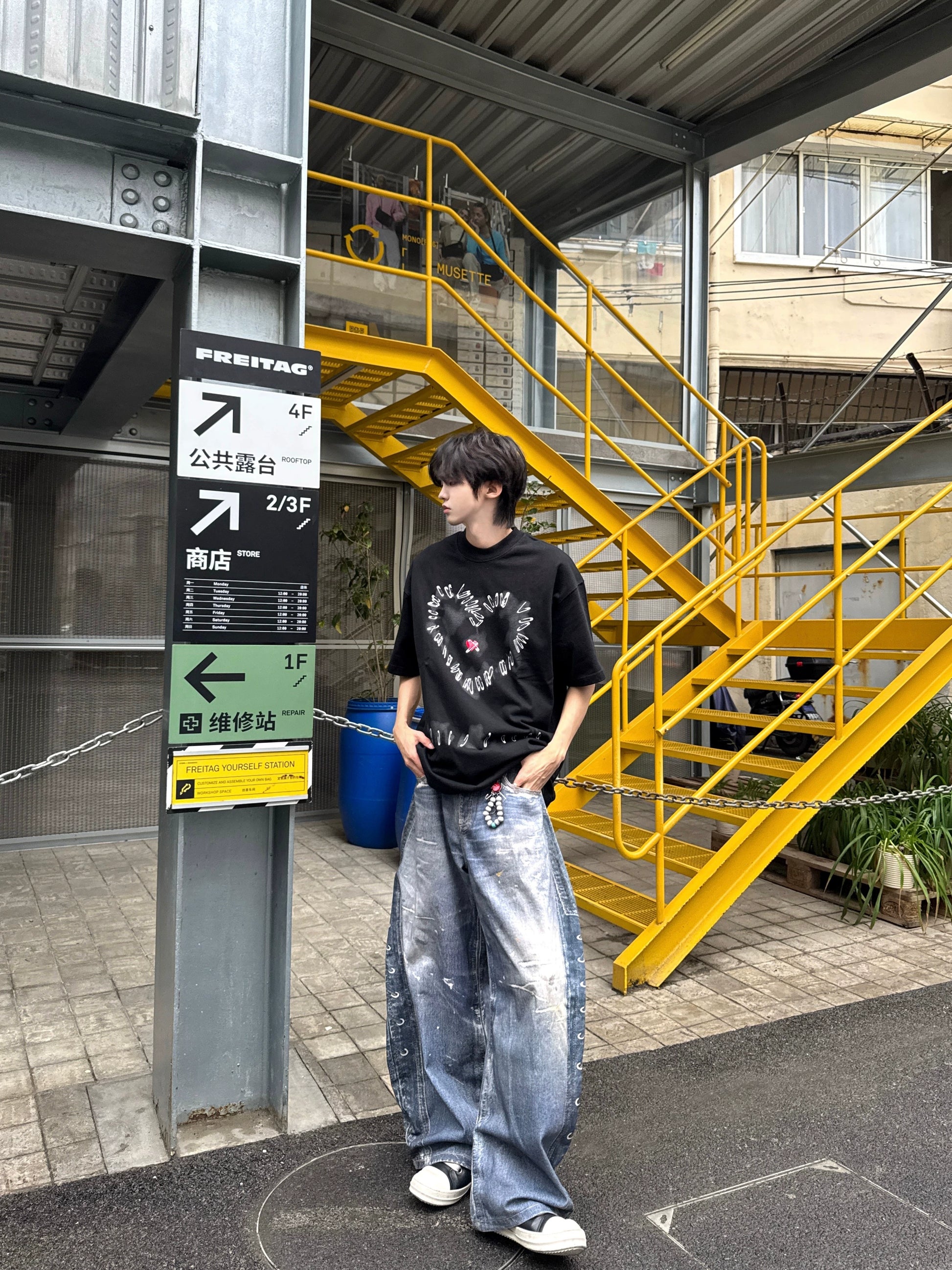 Safety Pin Heart Print Oversize Short Sleeve T-Shirt WN20753
