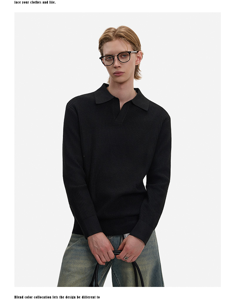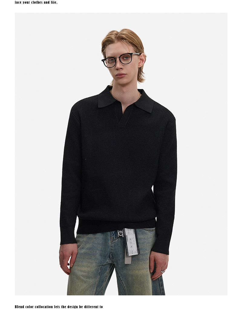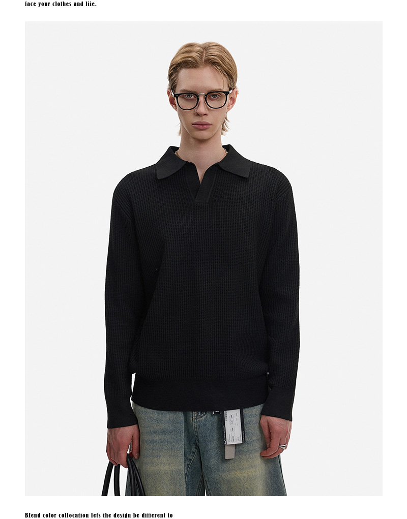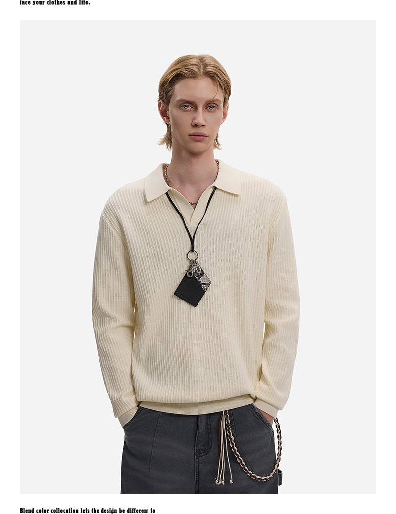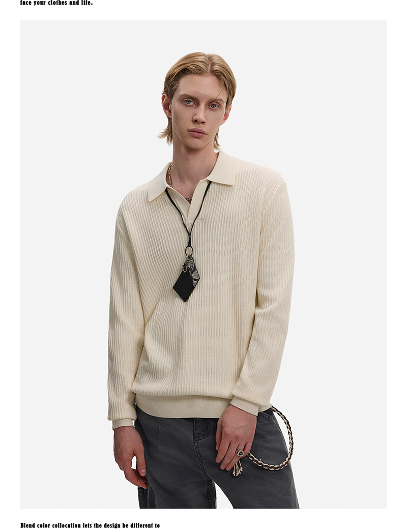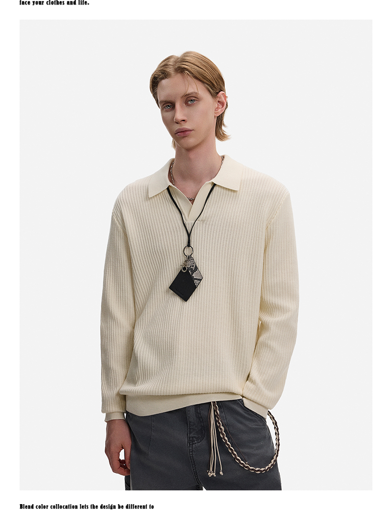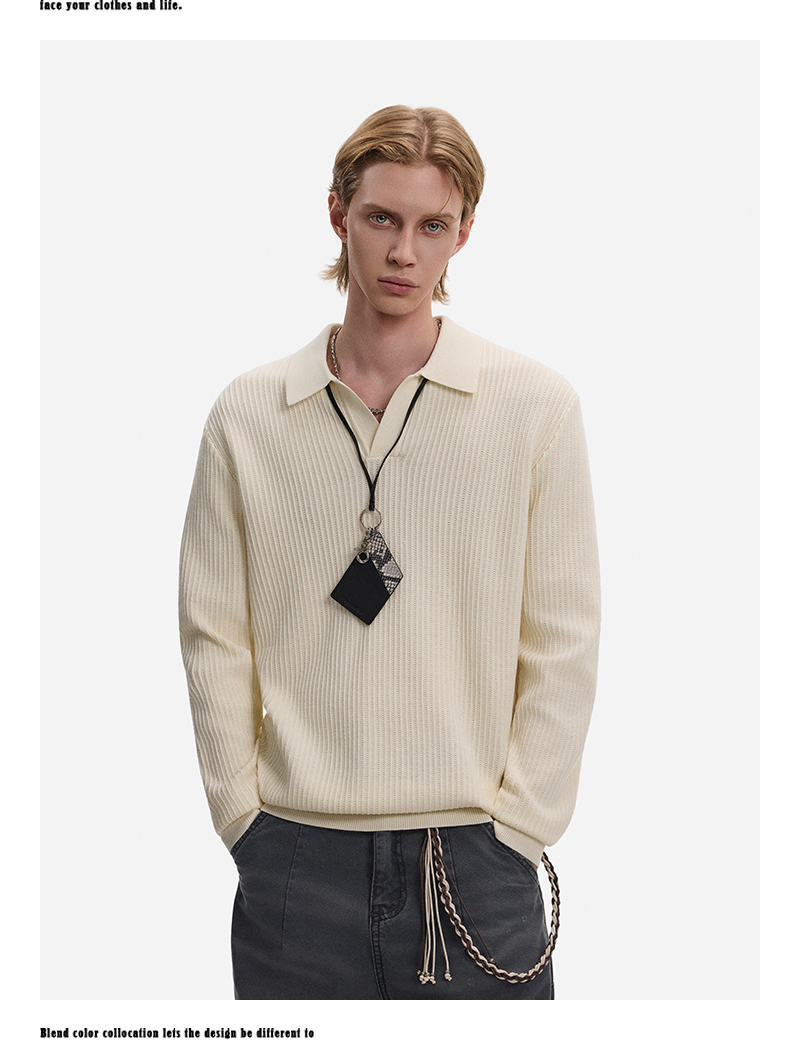 Hollow Texture Polo-Collar Knit Sweater WN21194