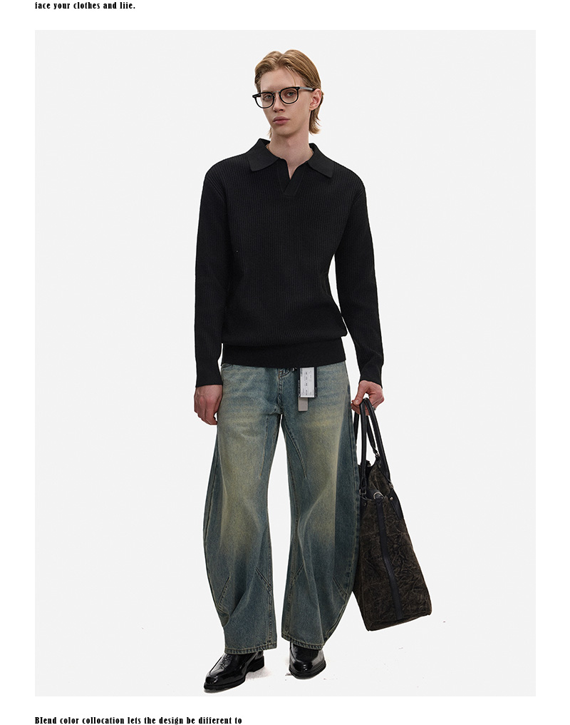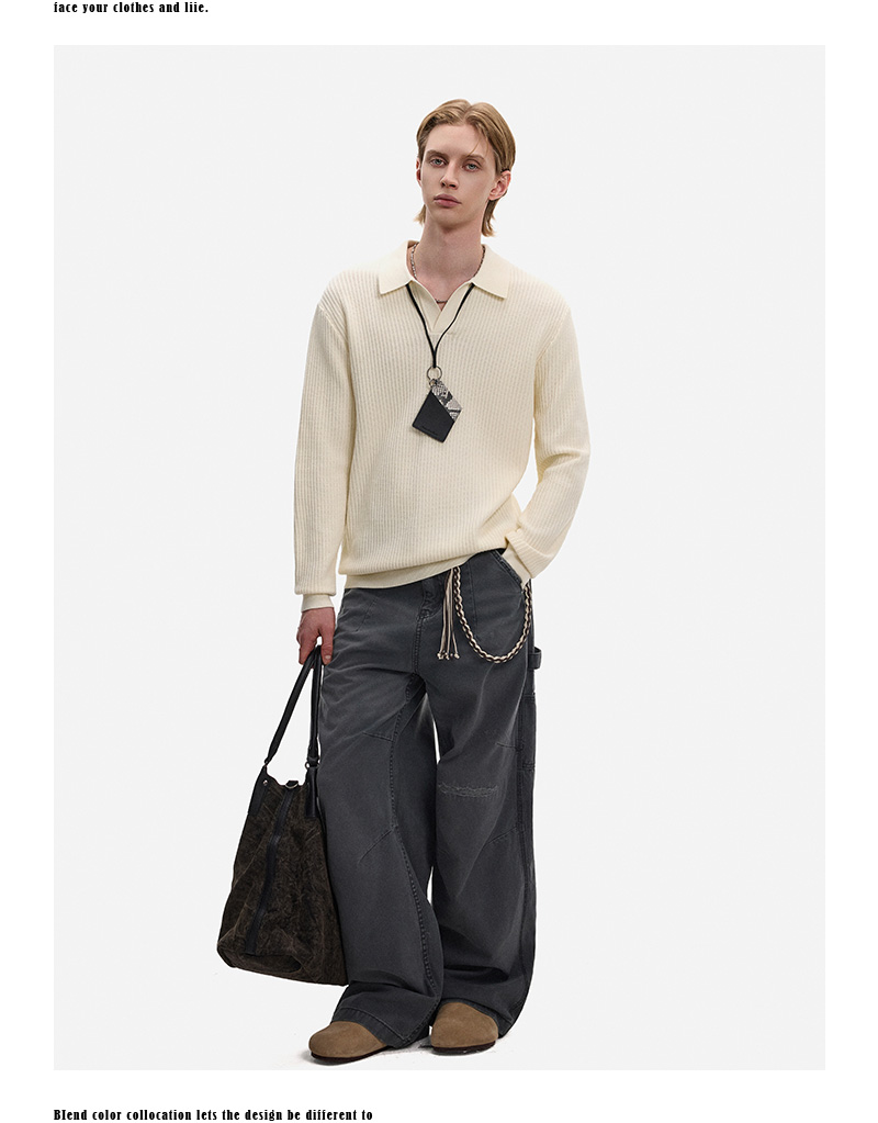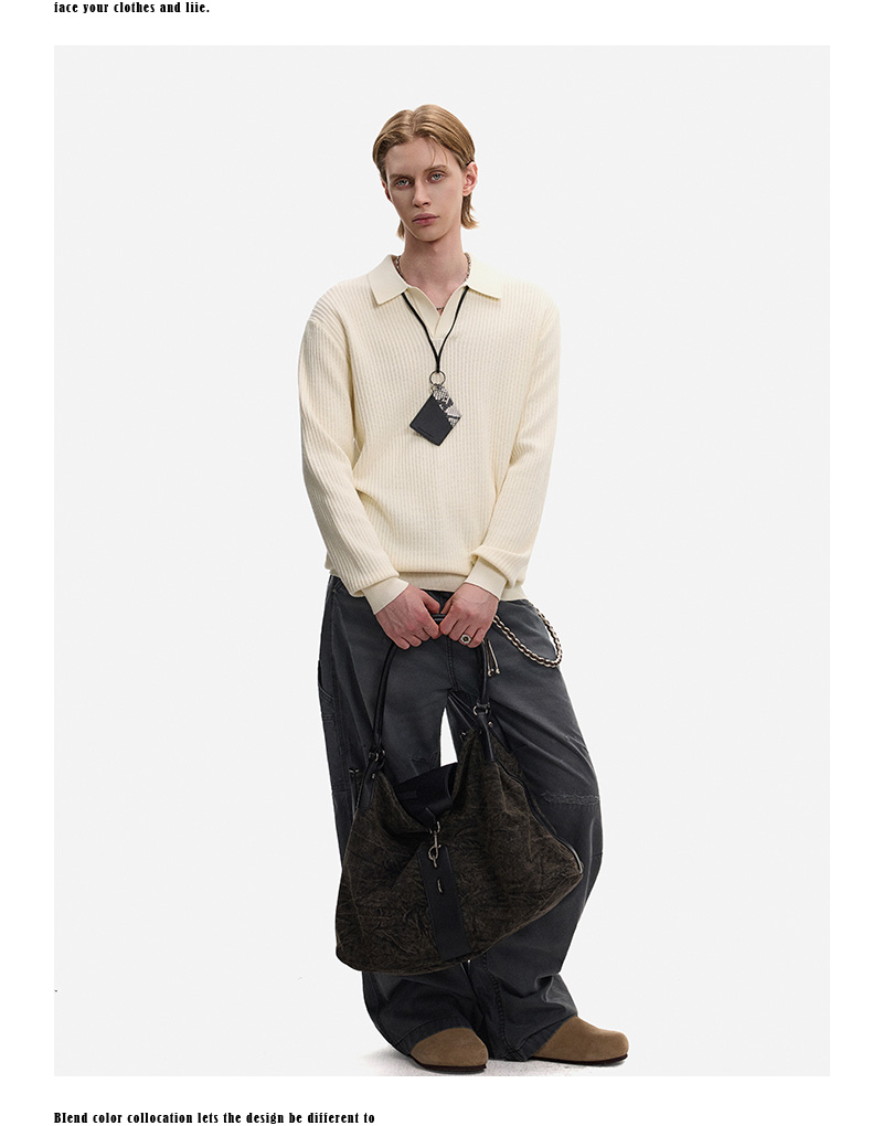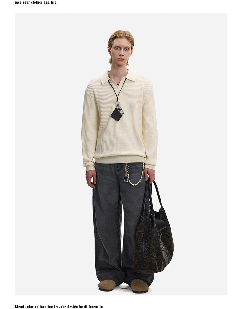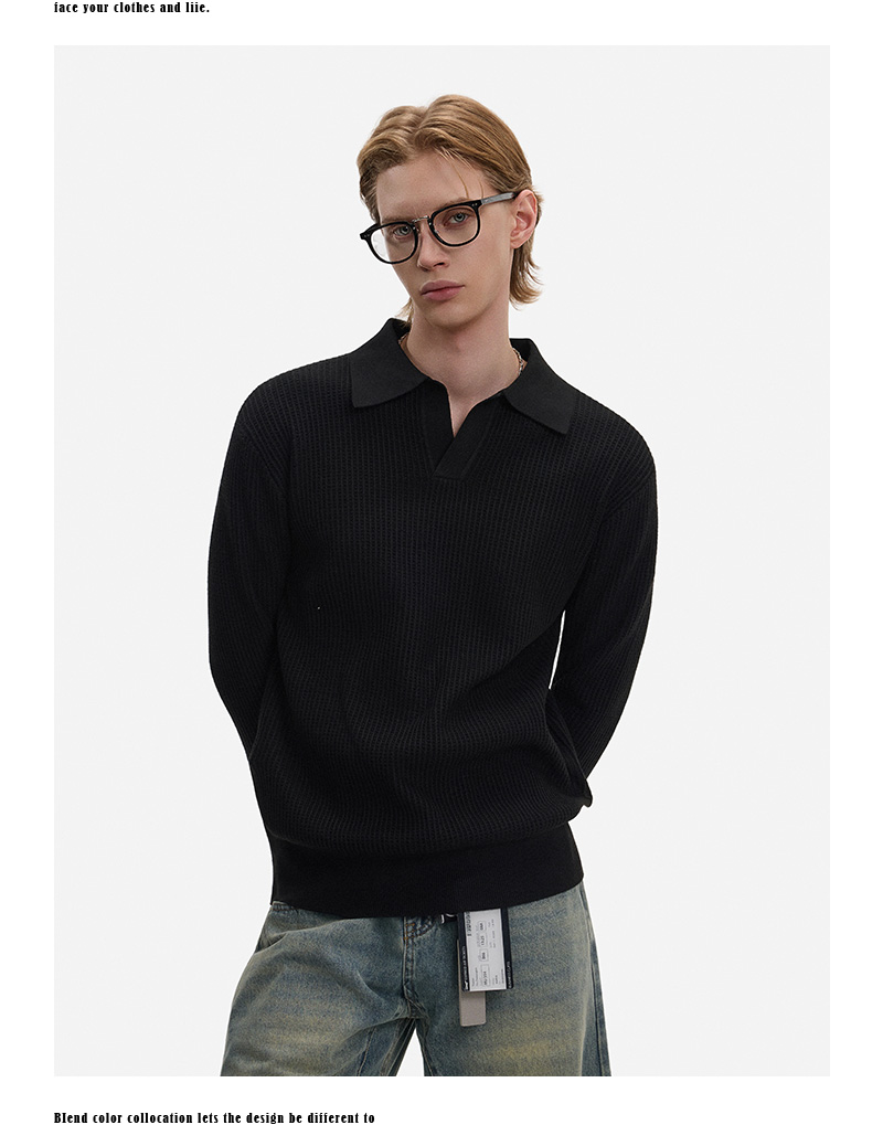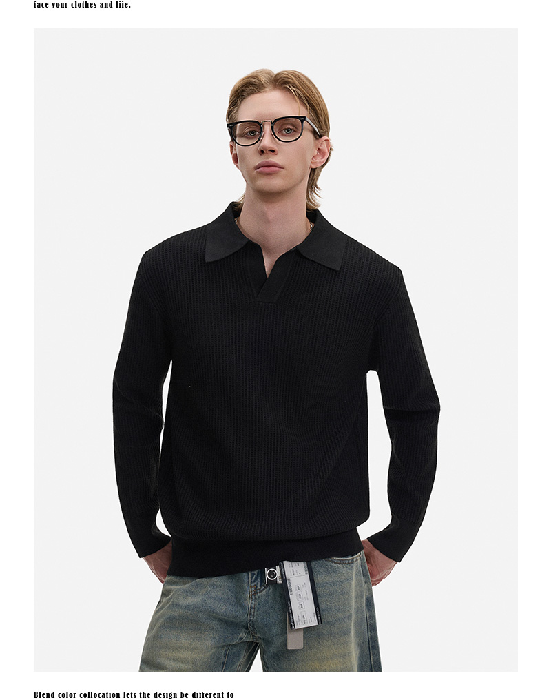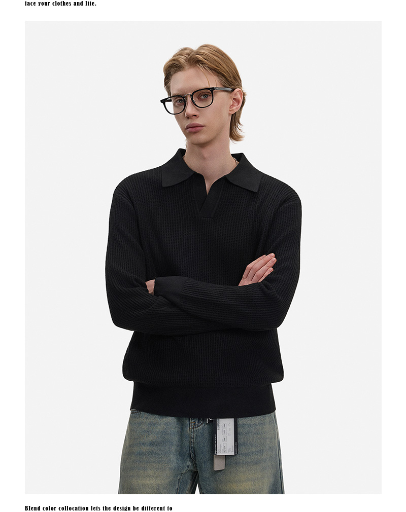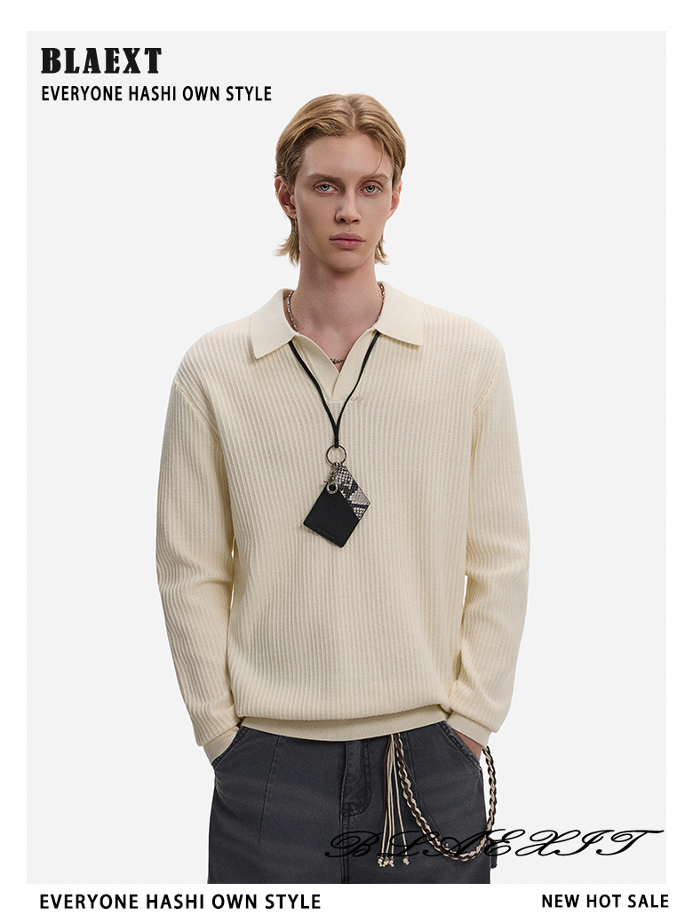 Hollow Texture Polo-Collar Knit Sweater WN21194