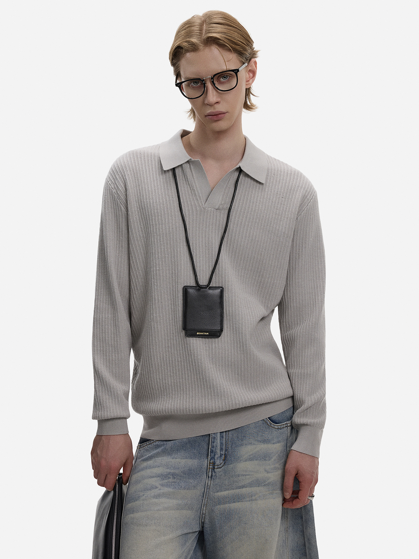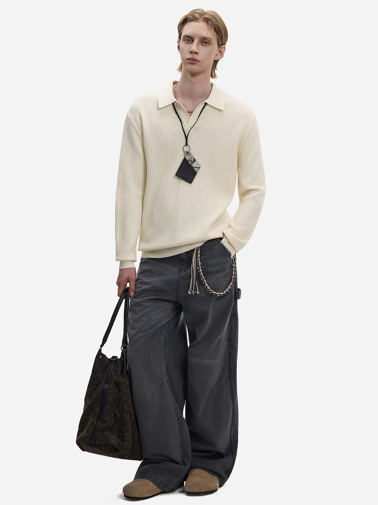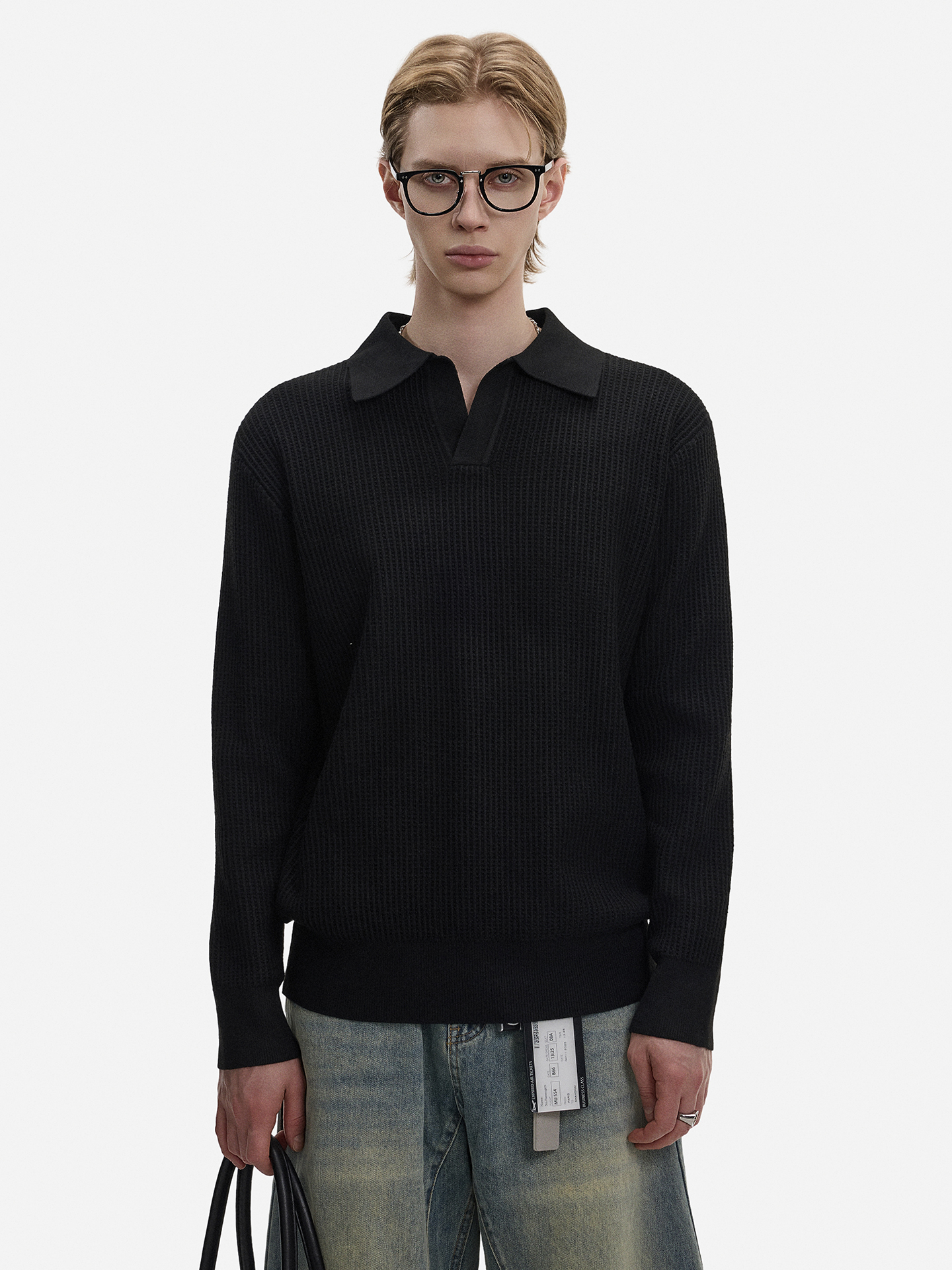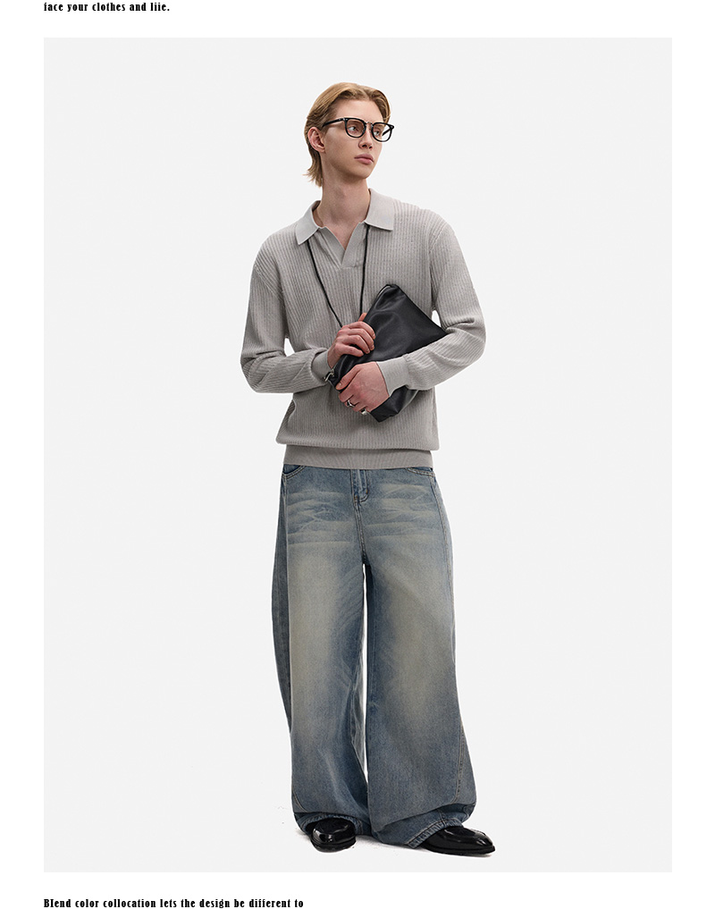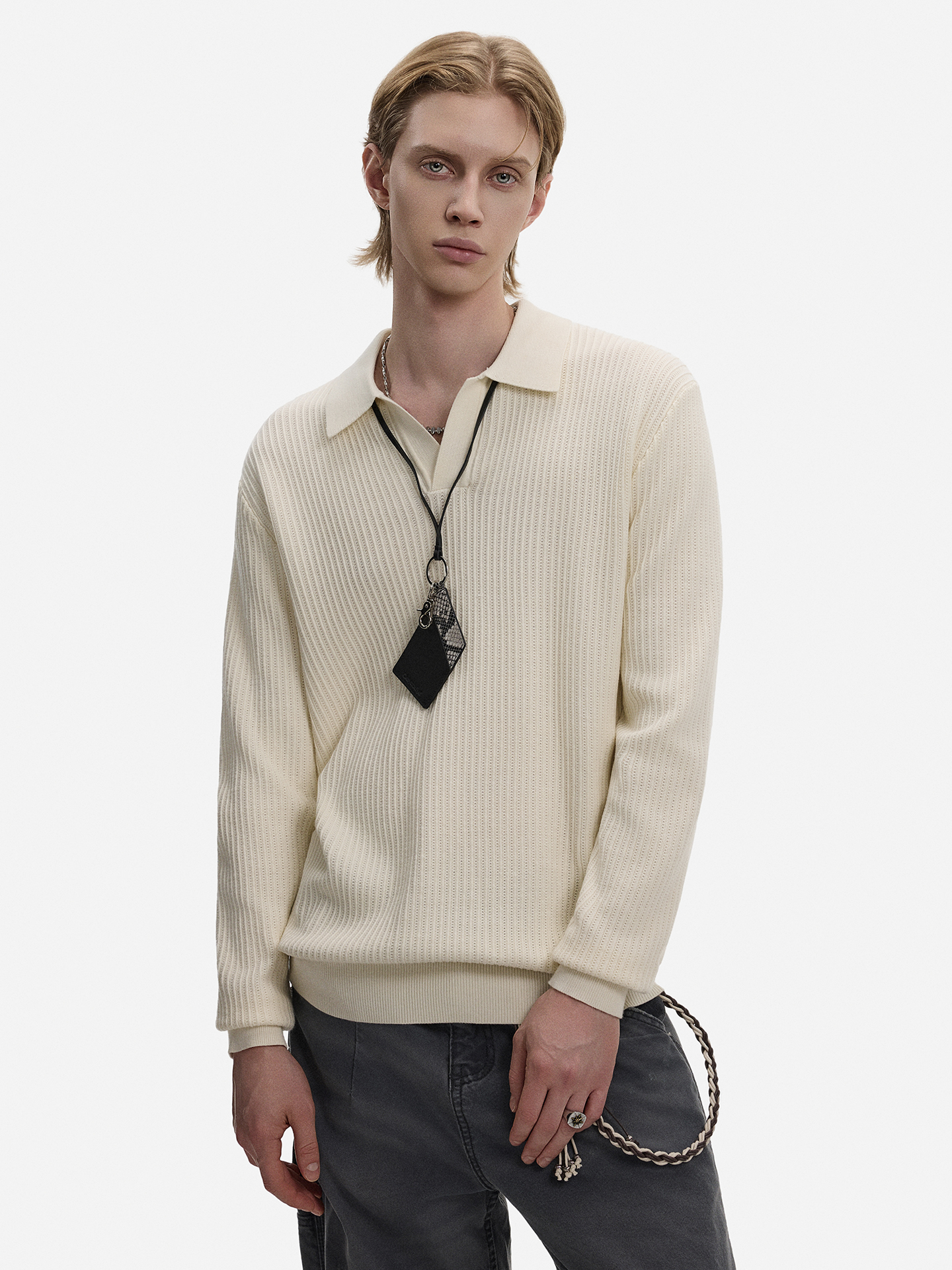 Hollow Texture Polo-Collar Knit Sweater WN21194