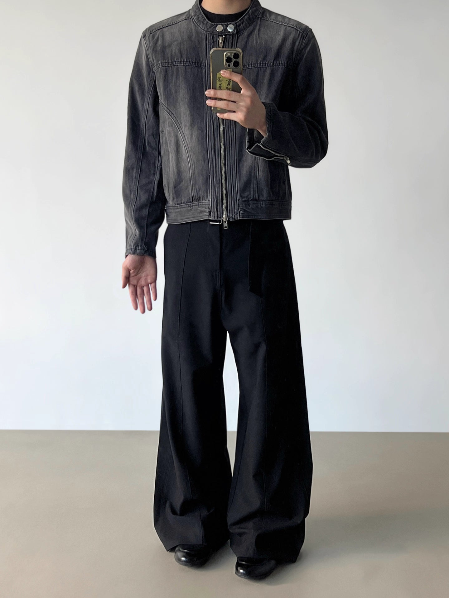 Rivet Washed Short Ziiper Denim Jacket WN21413