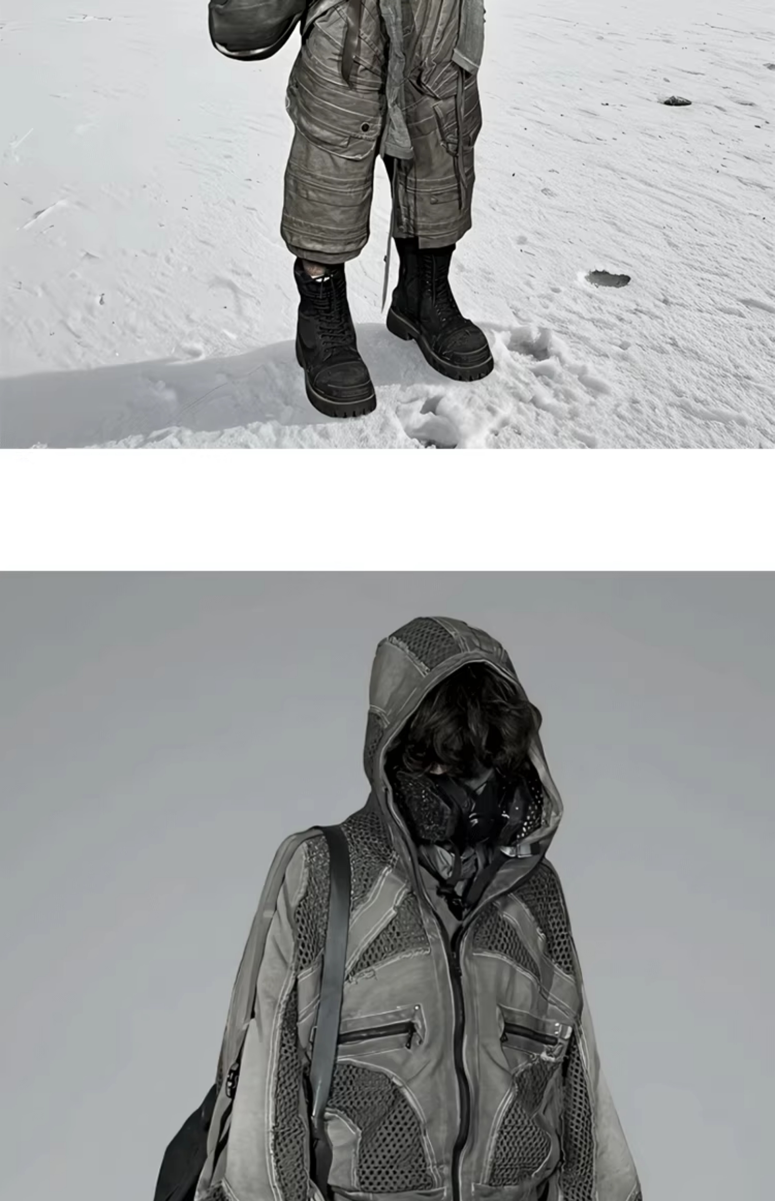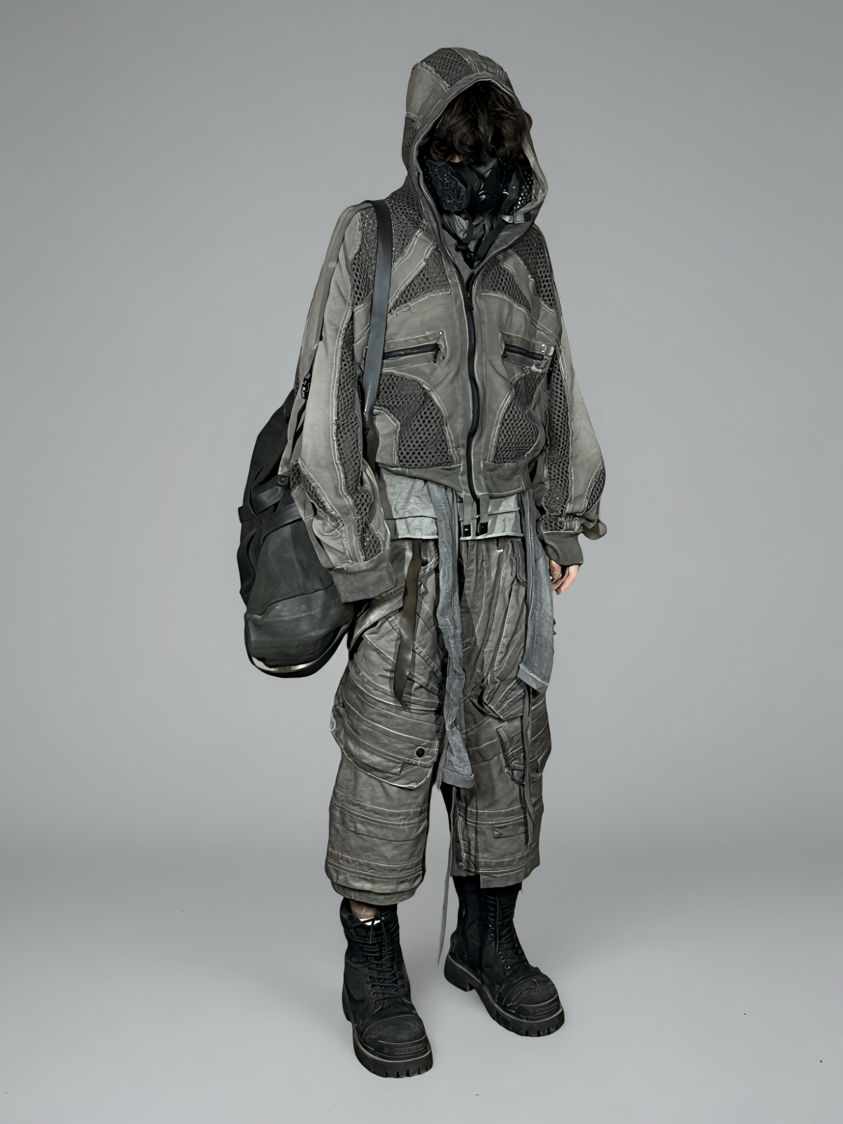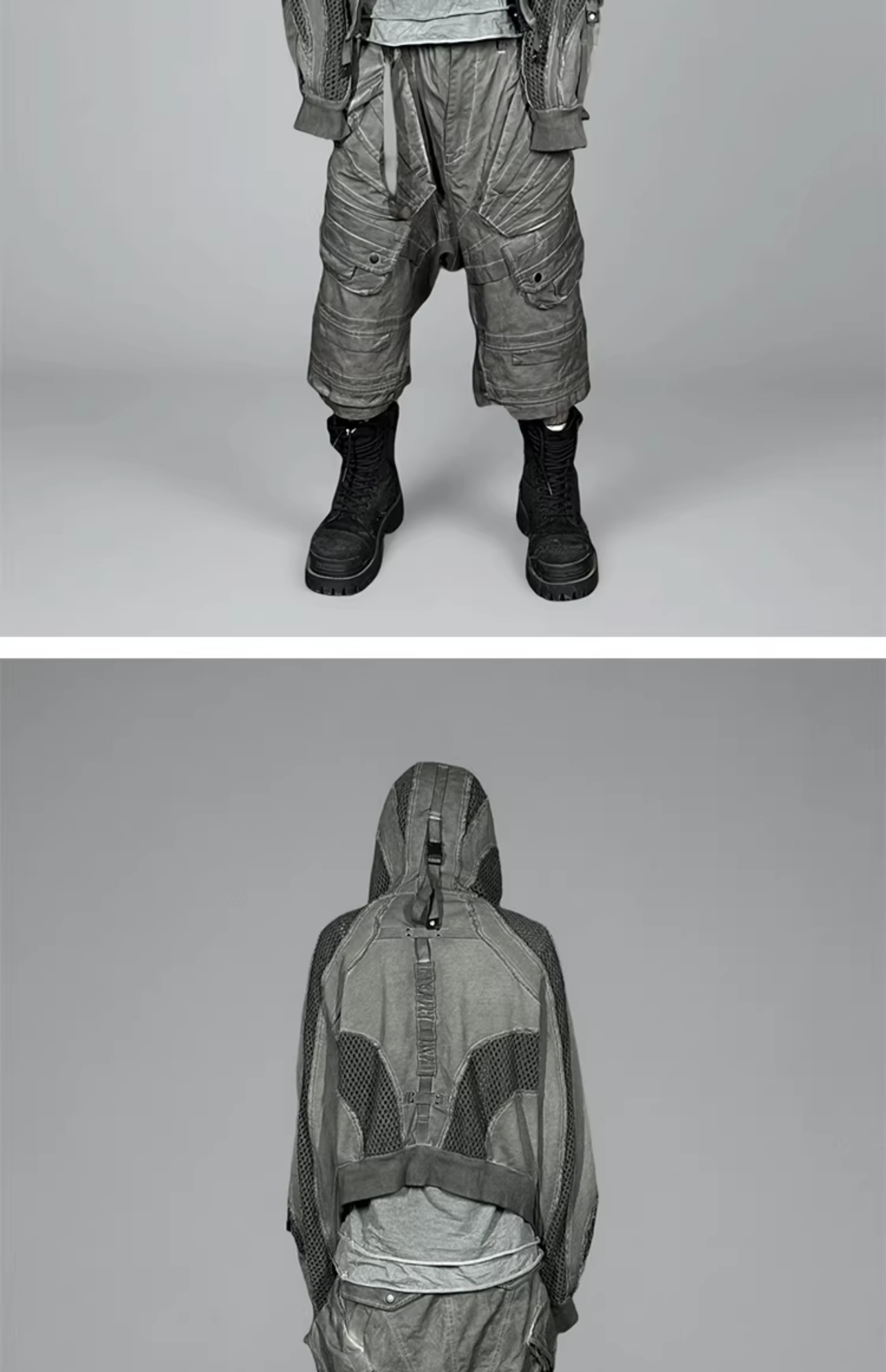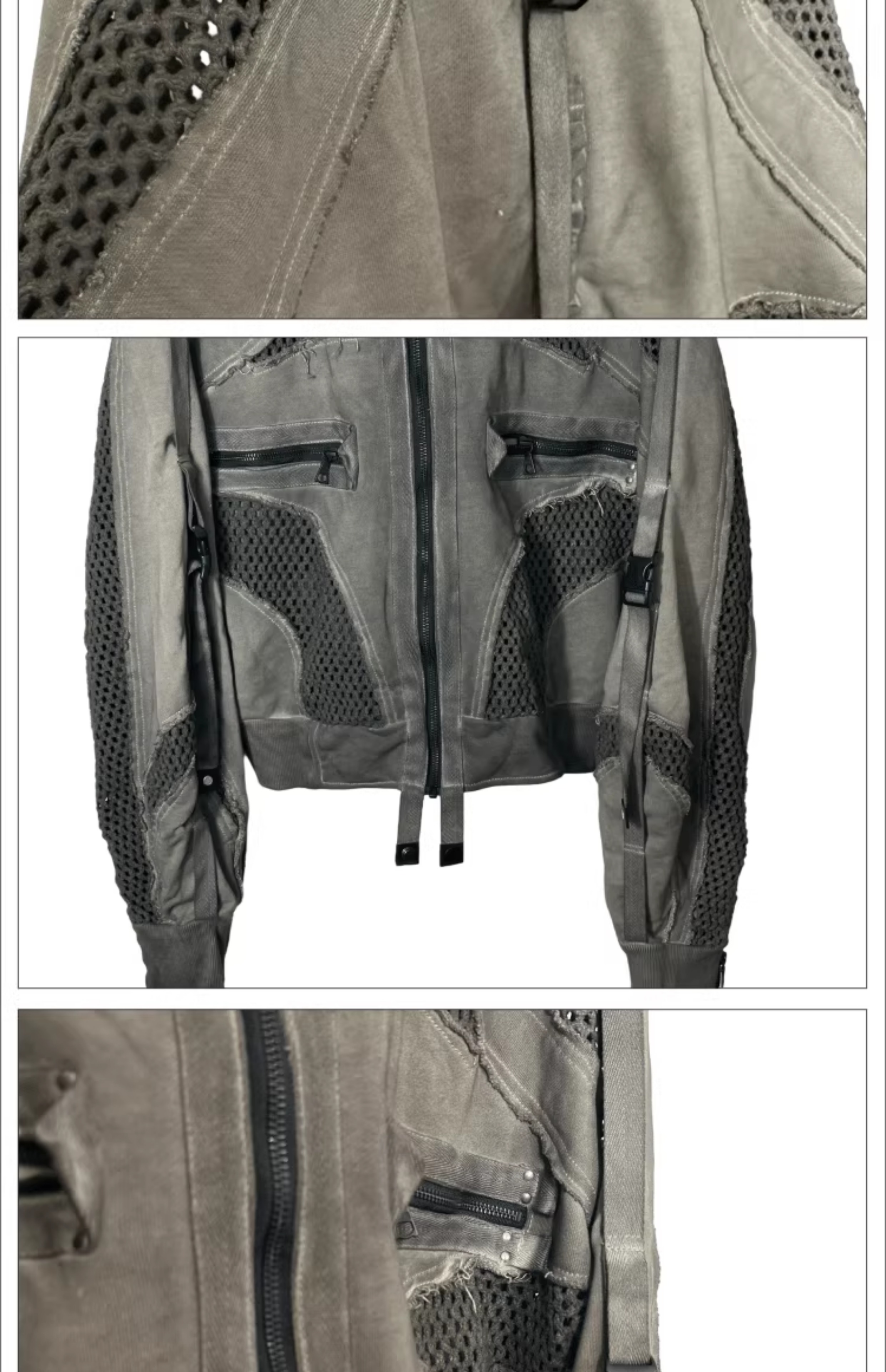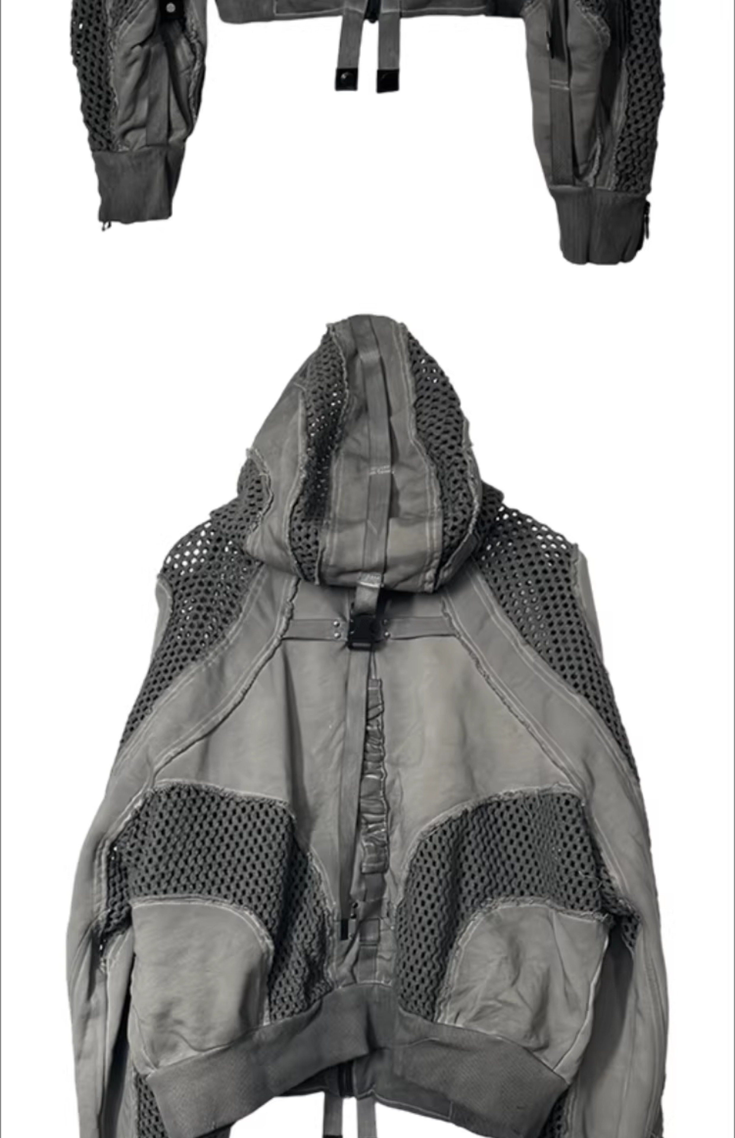 Deconstructed Mesh Patch Washed Zipper Hoodie WN21987