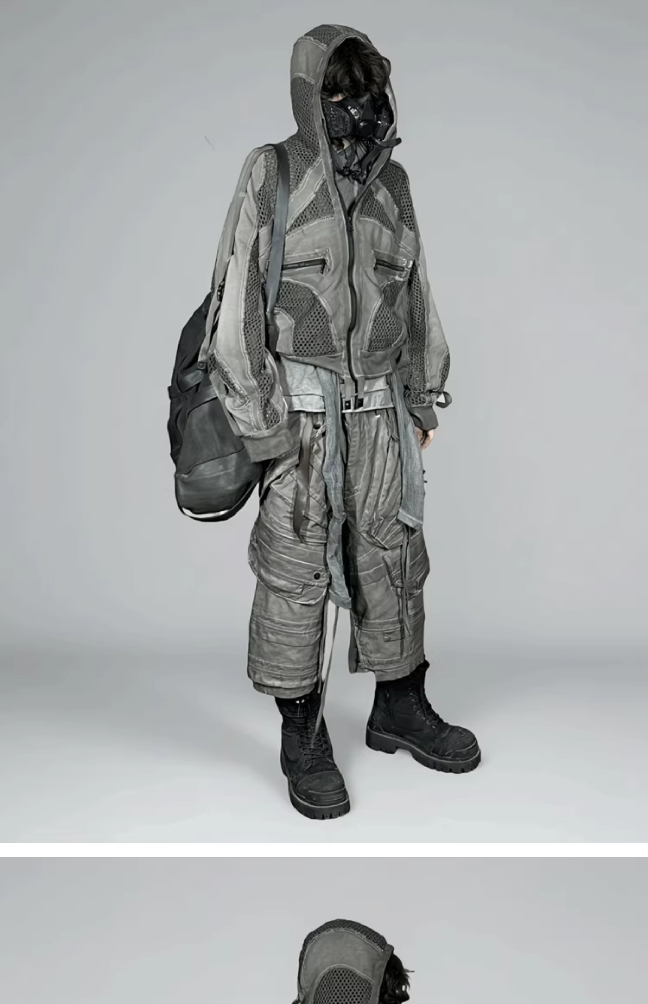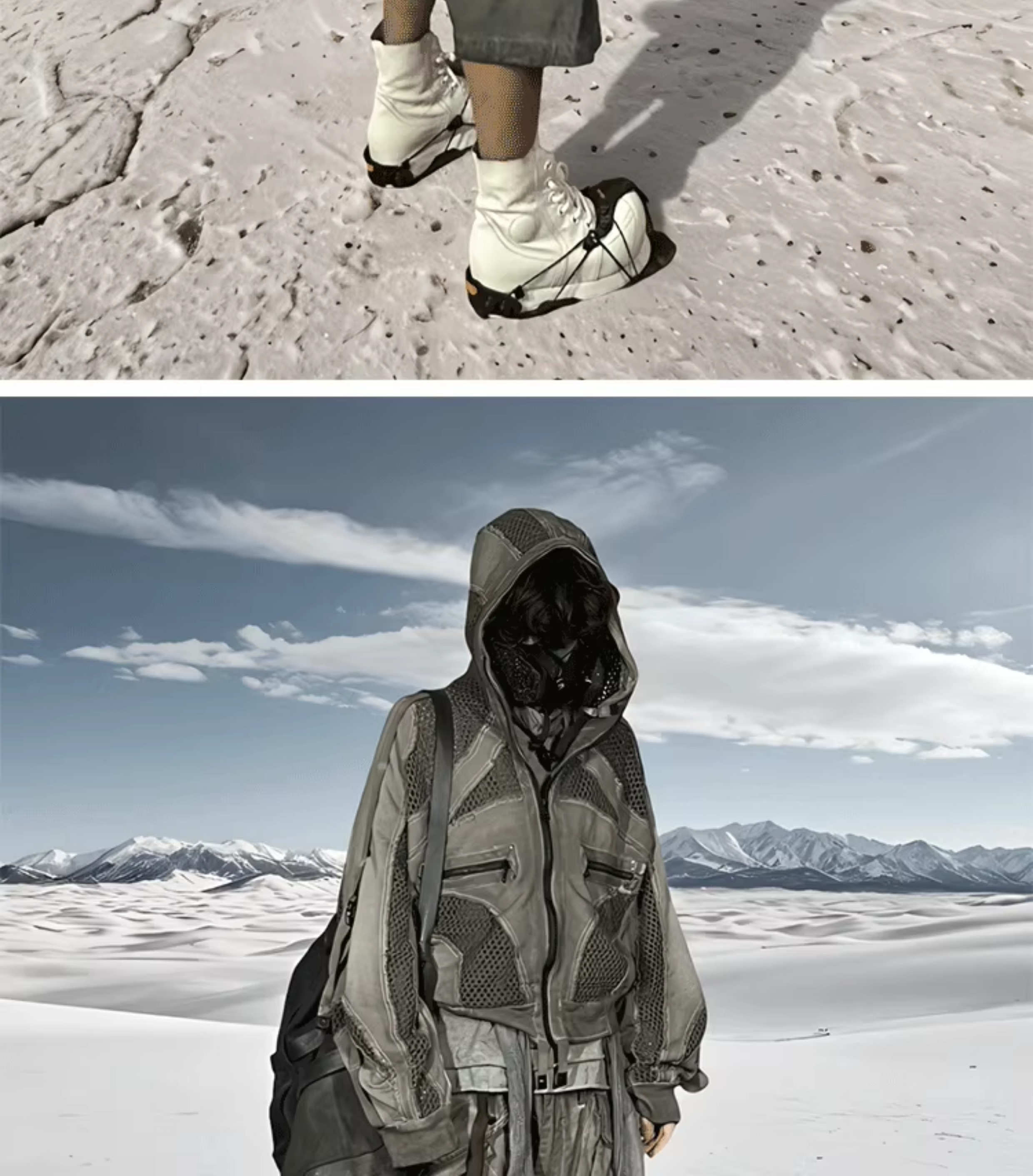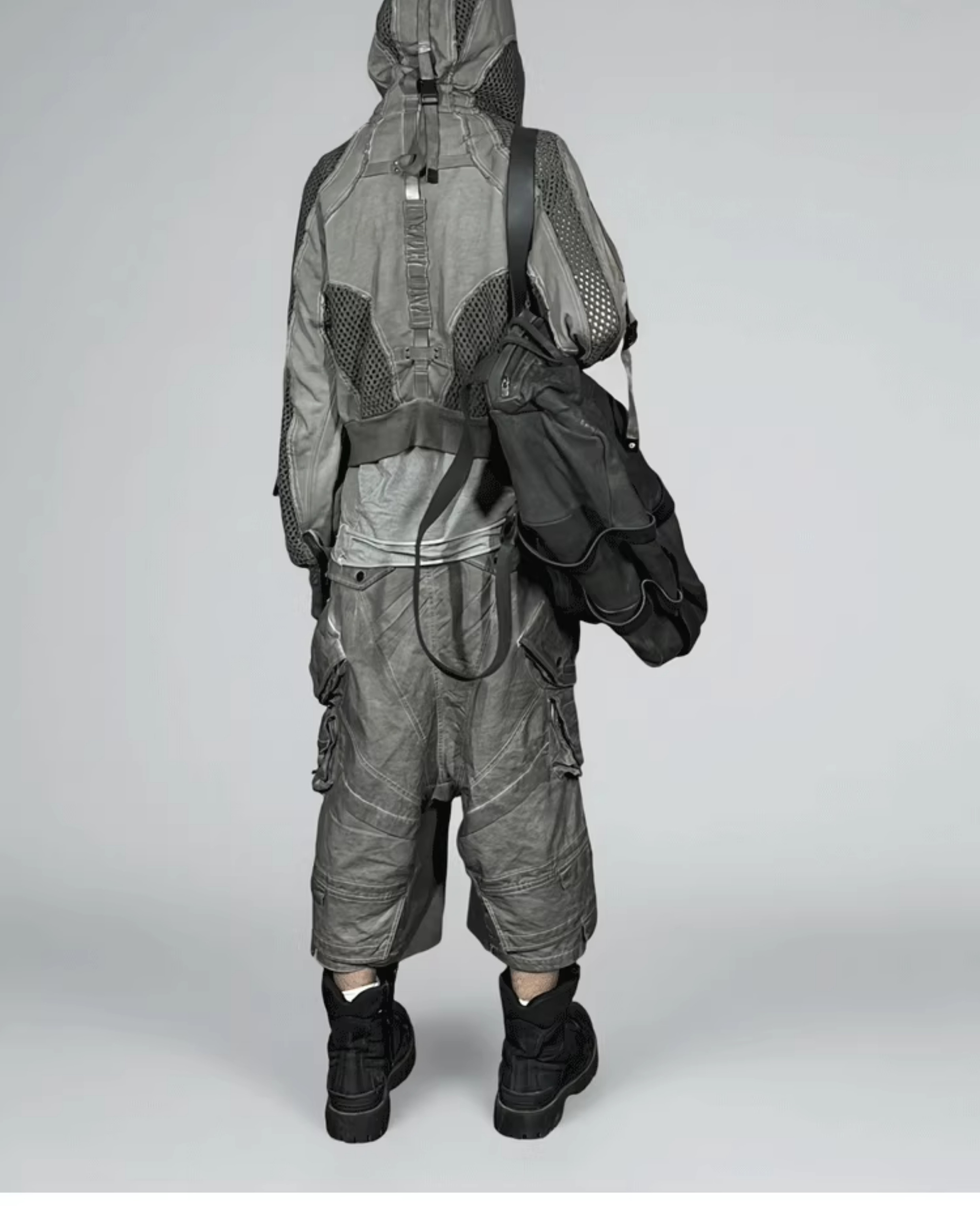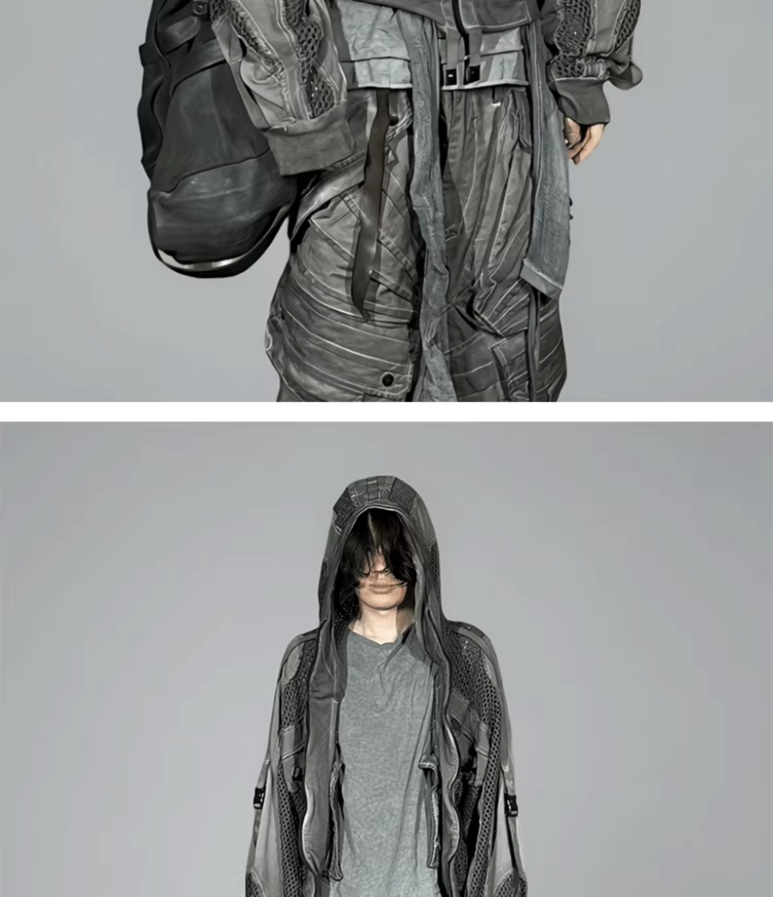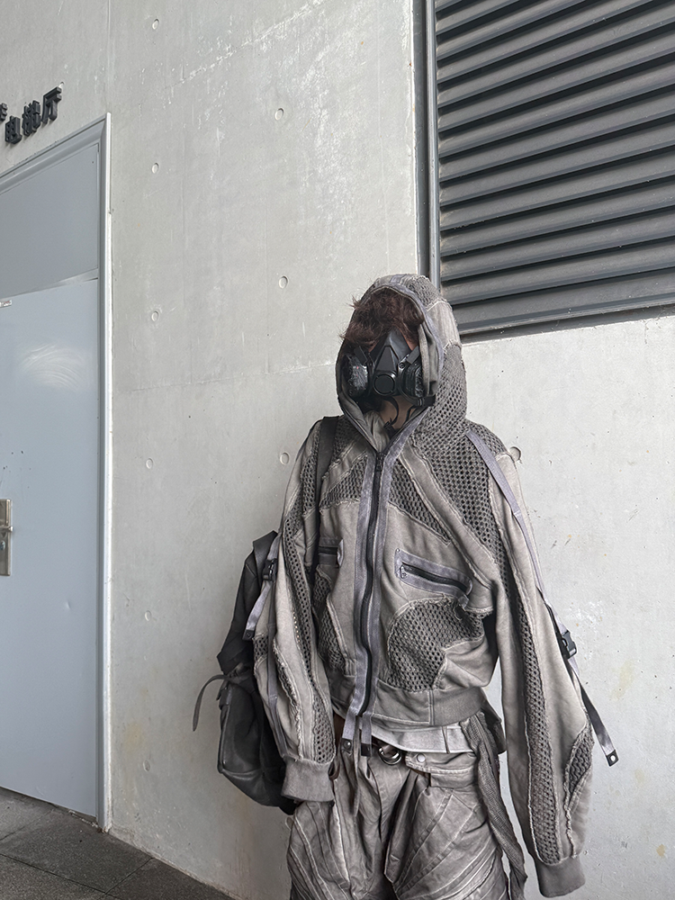 Deconstructed Mesh Patch Washed Zipper Hoodie WN21987
