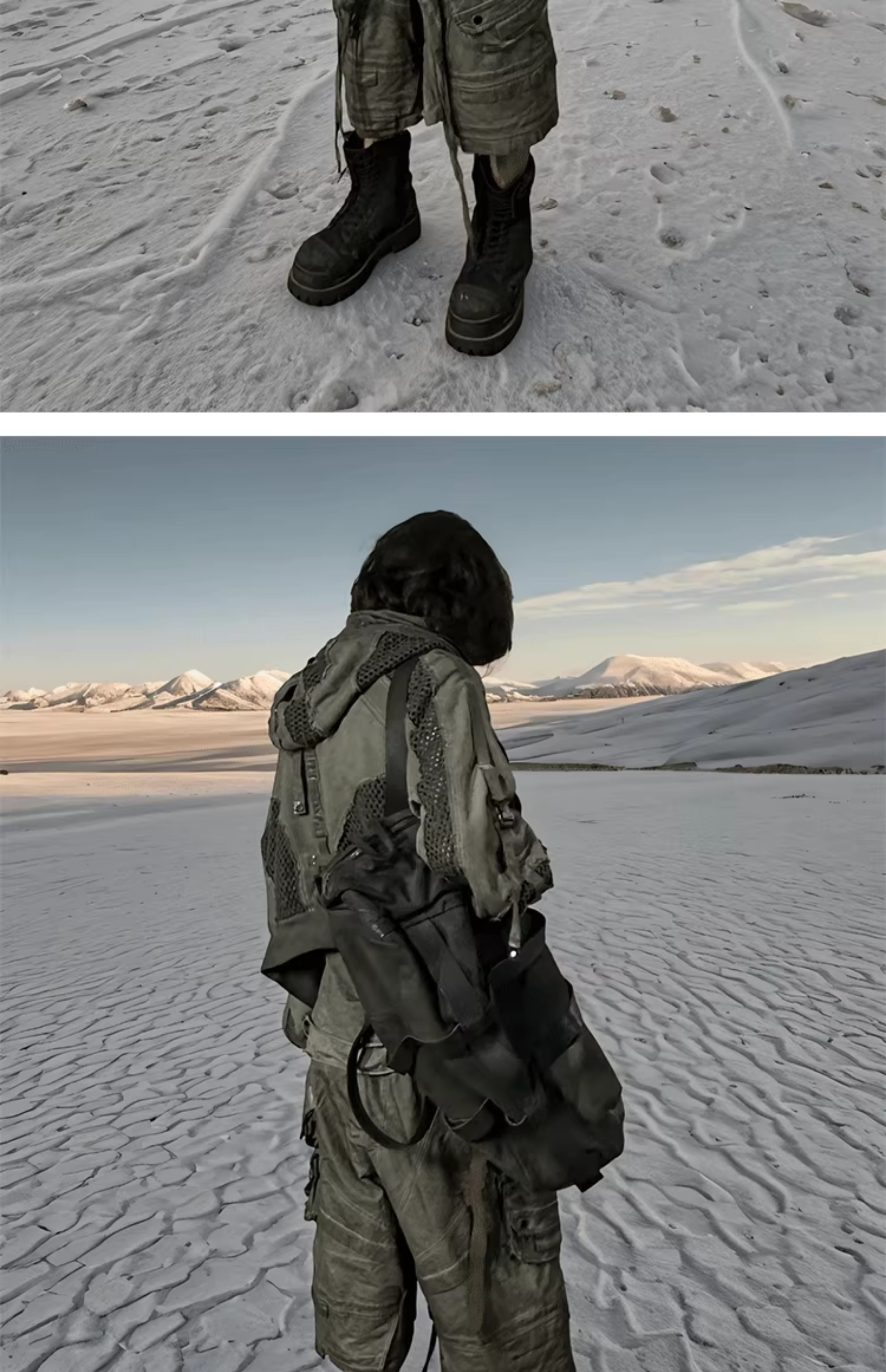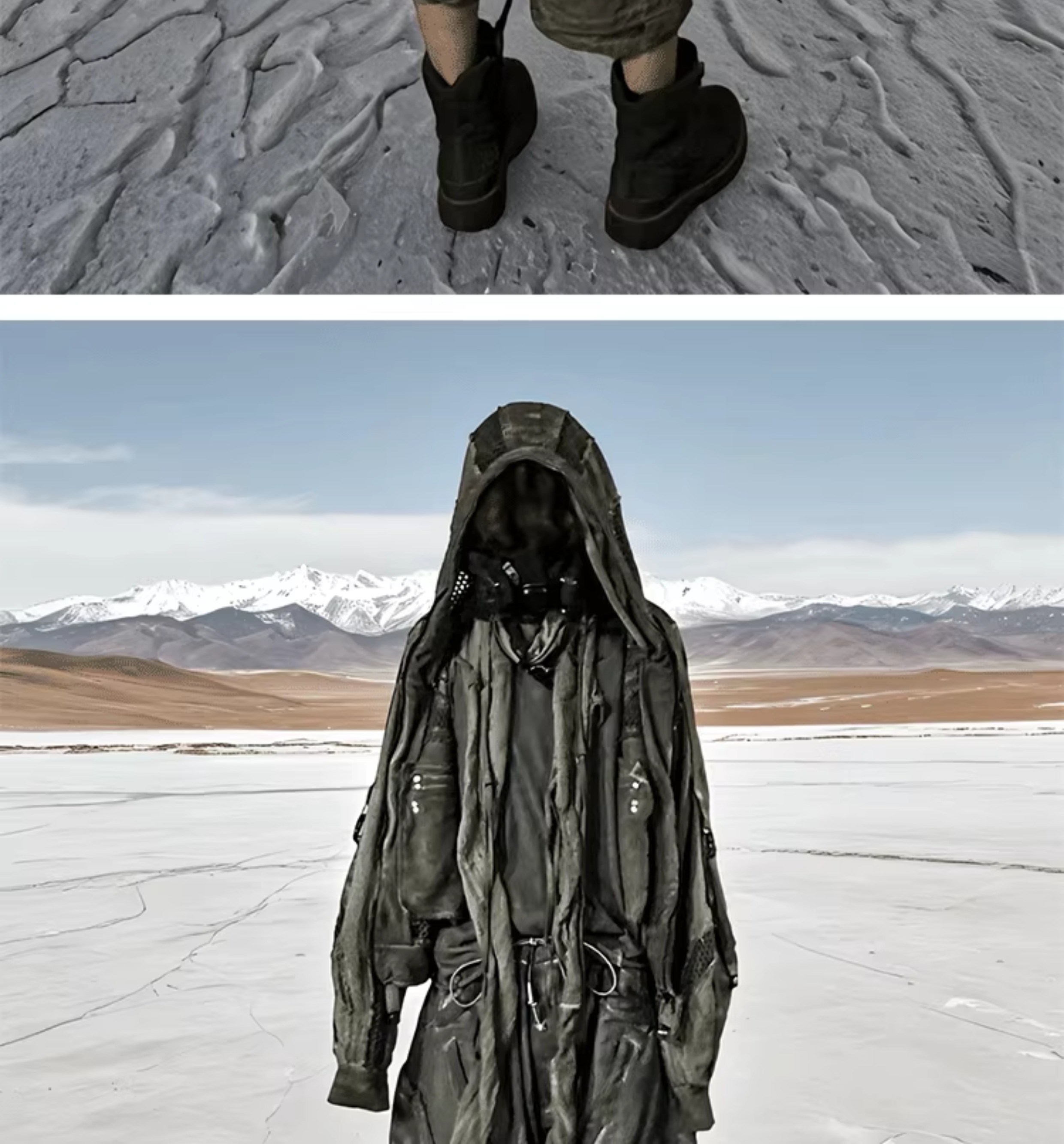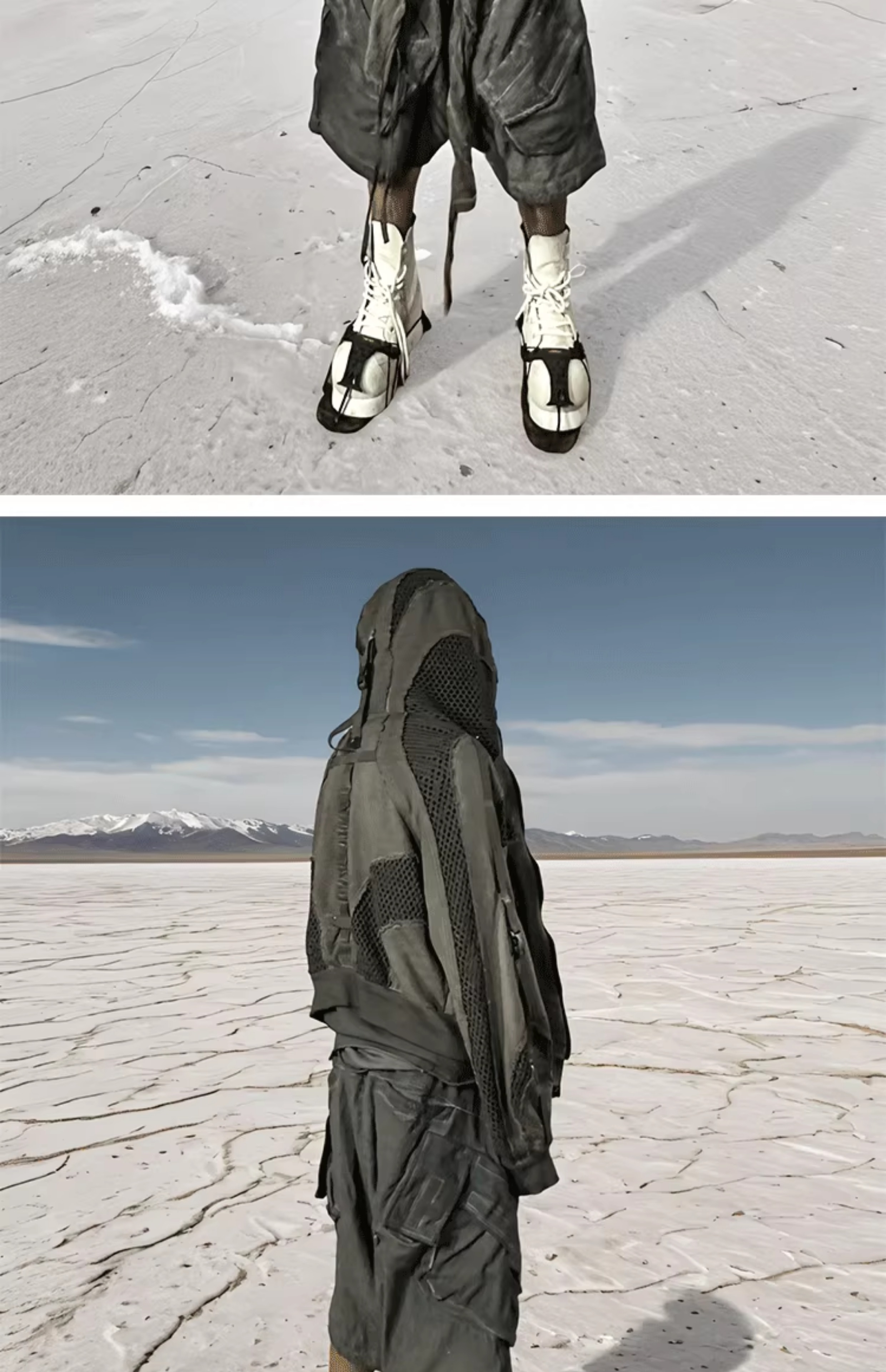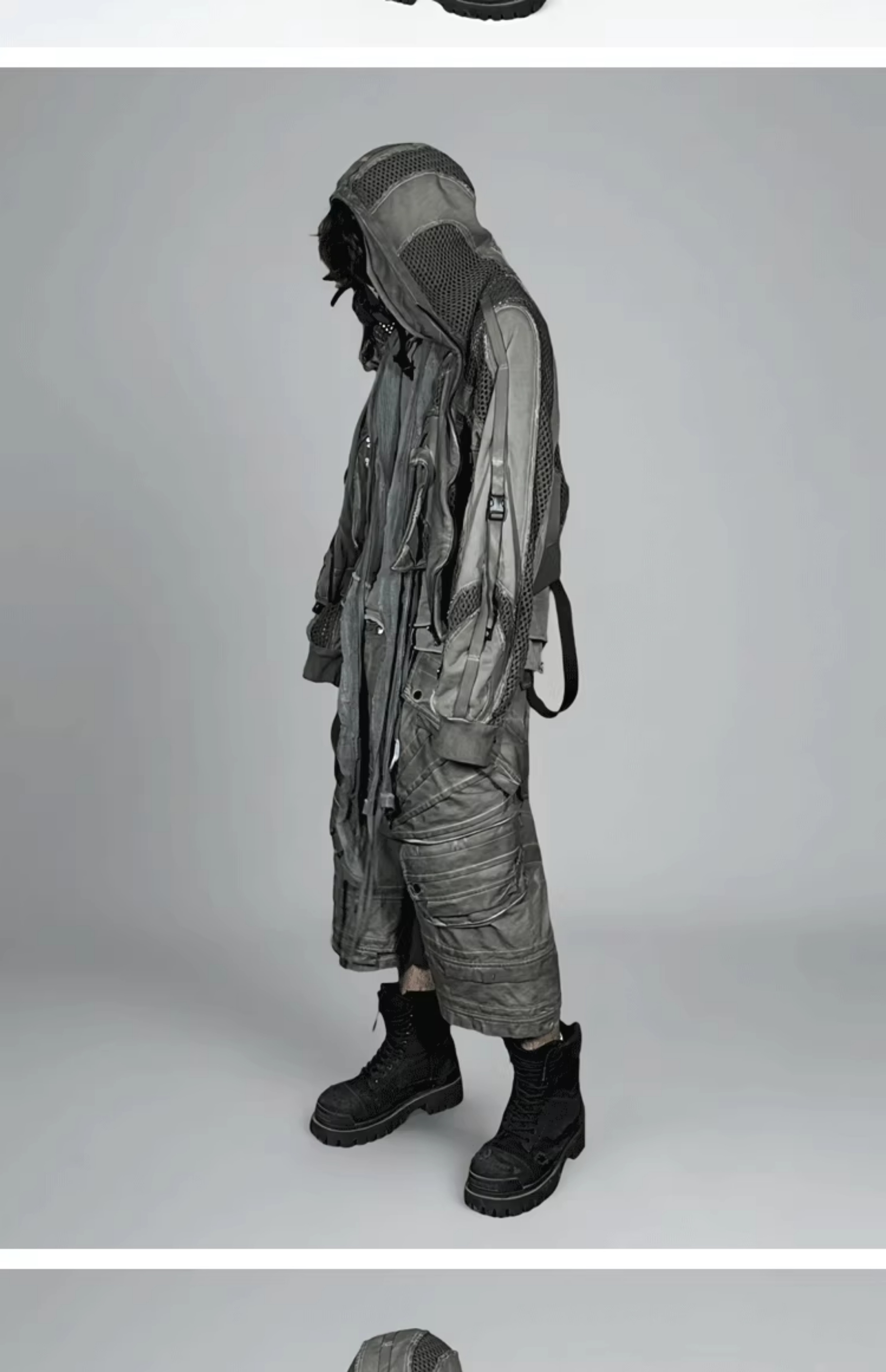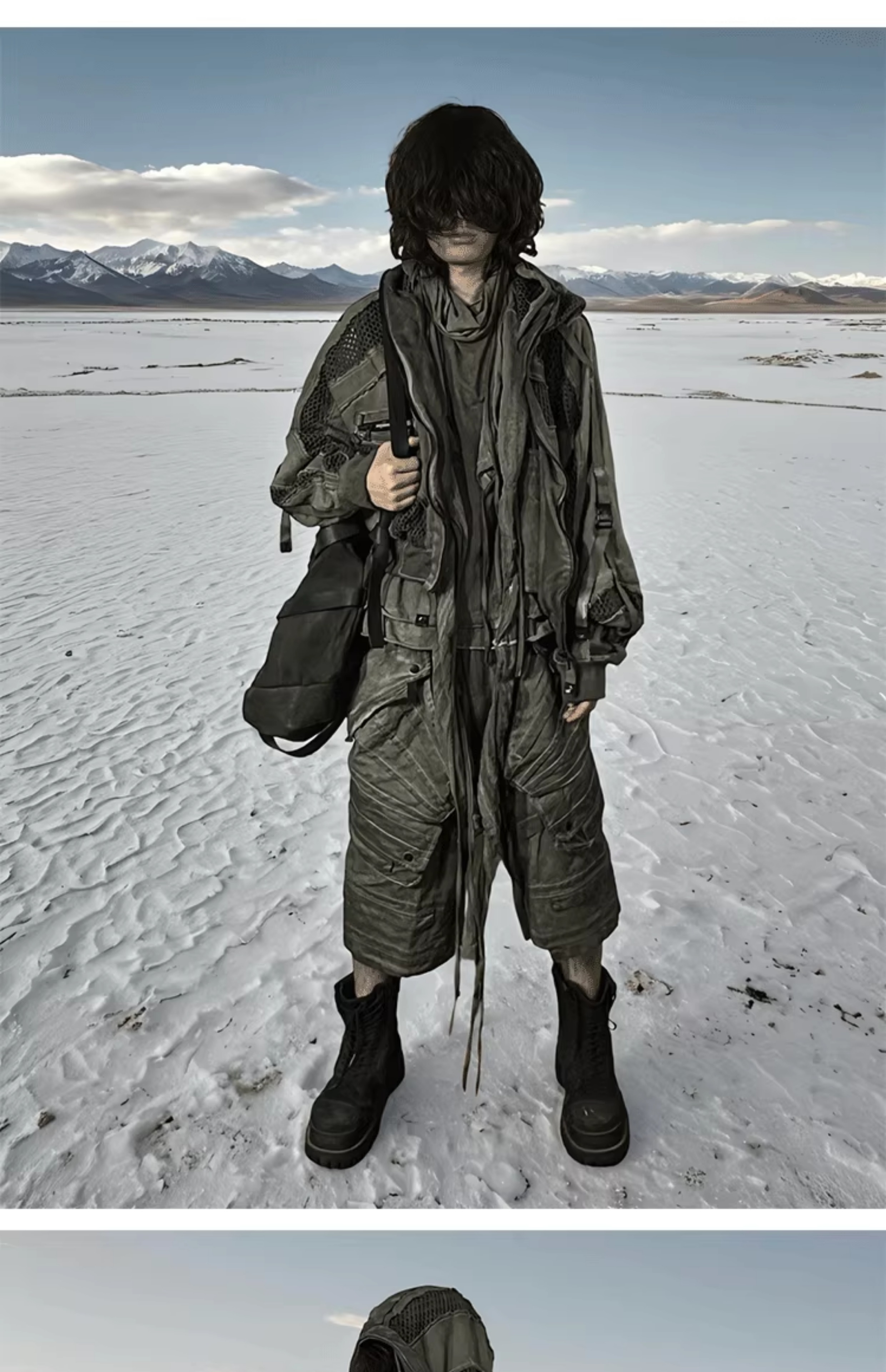 Deconstructed Mesh Patch Washed Zipper Hoodie WN21987