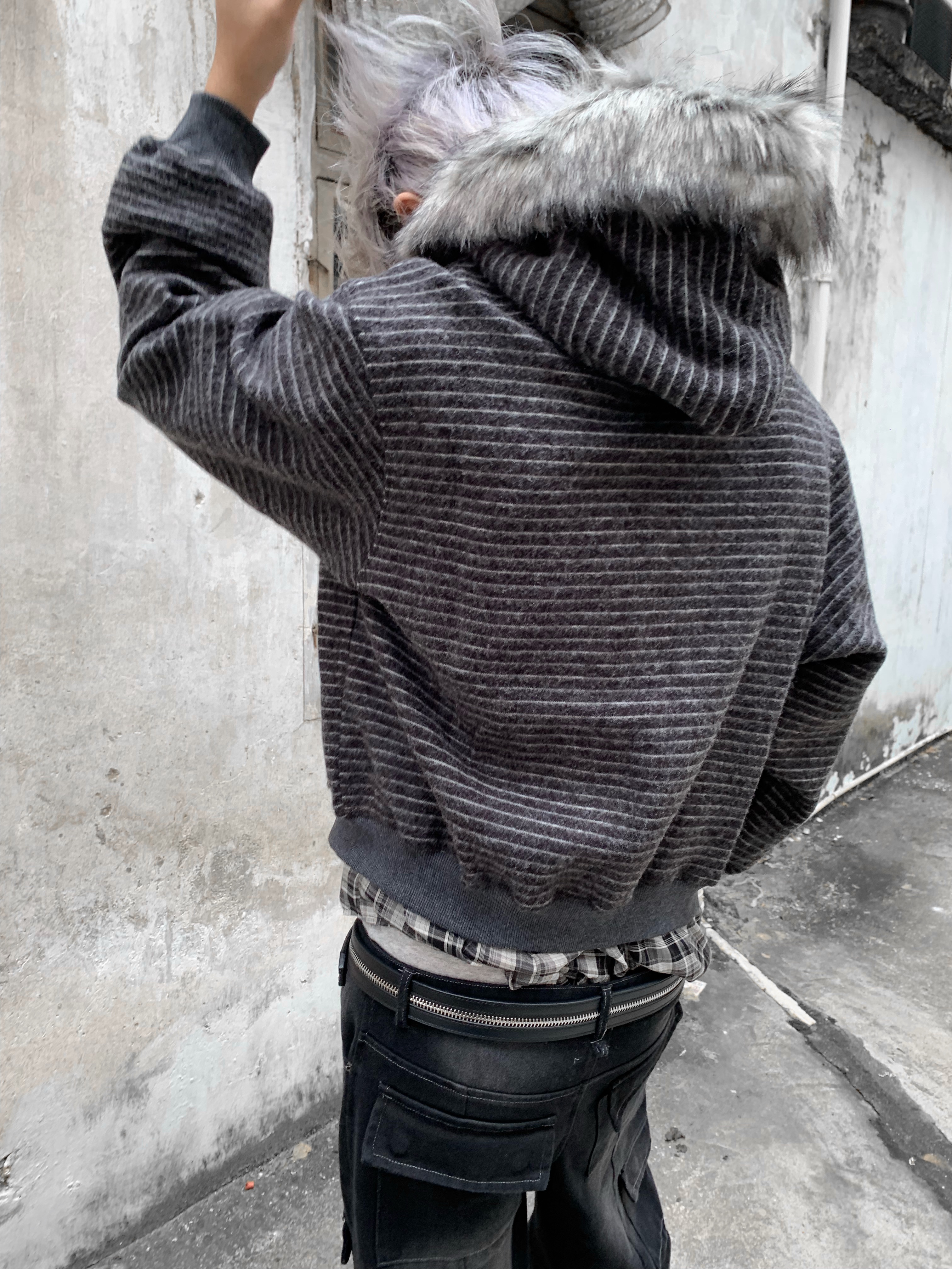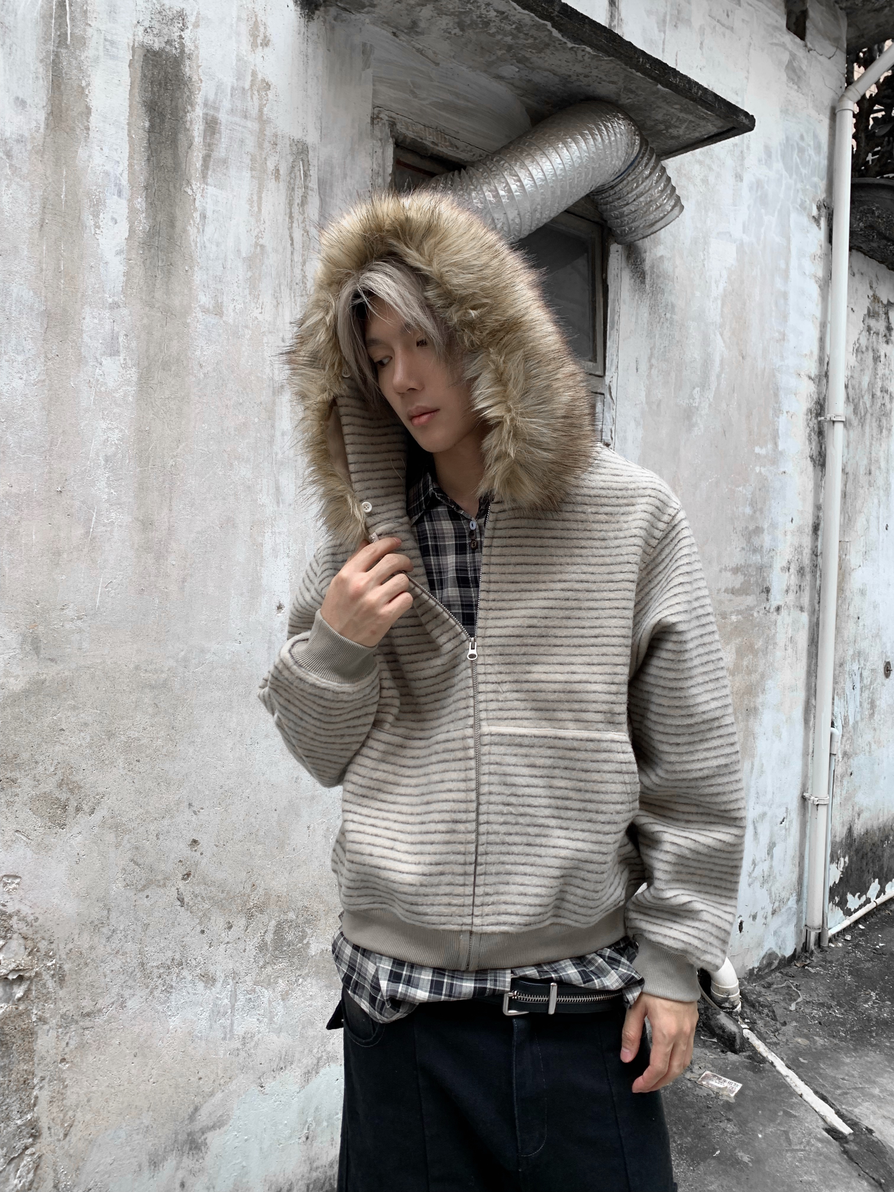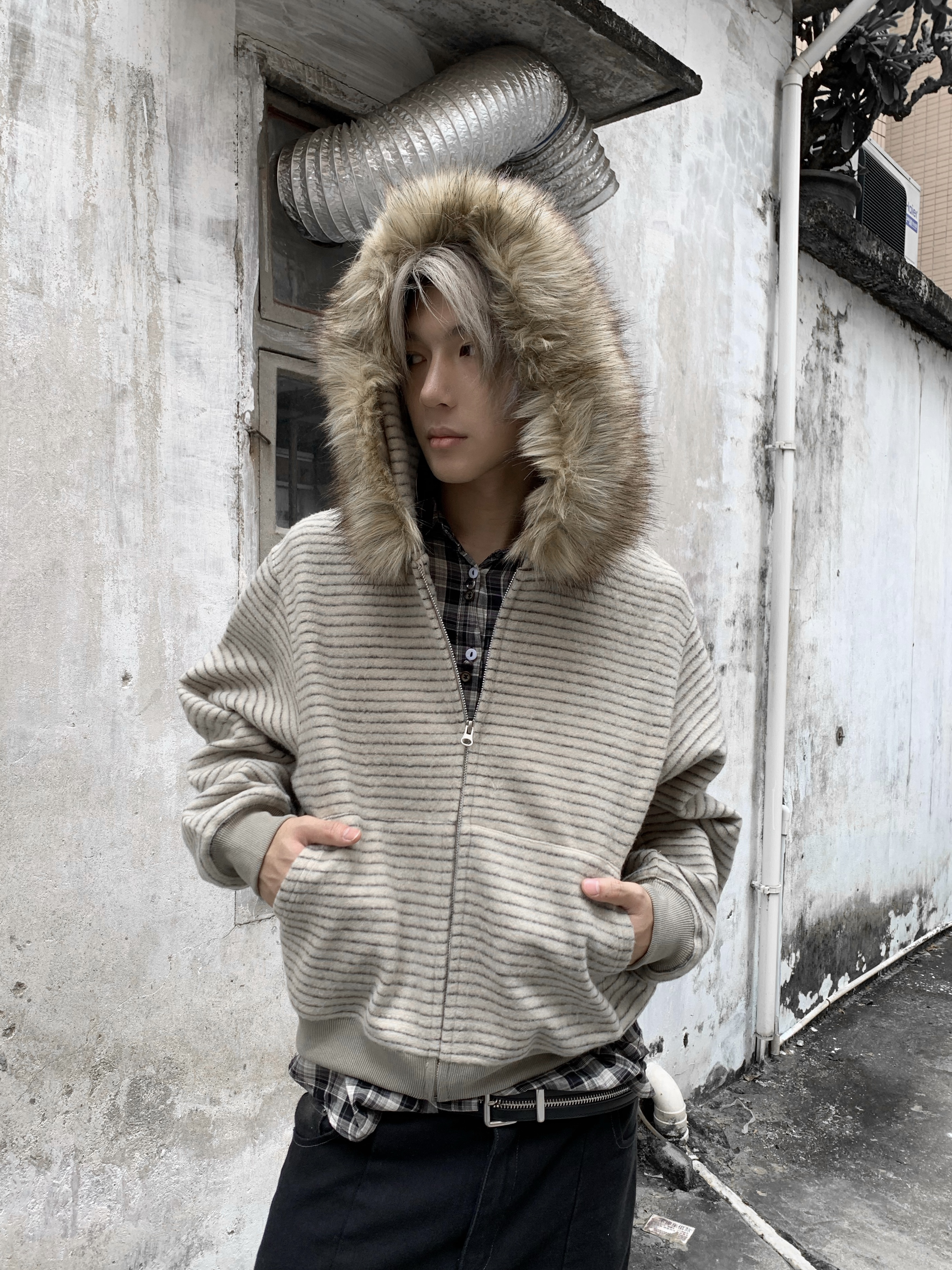 Stripe Detachable Hooded Zipper Jacket WN22224
