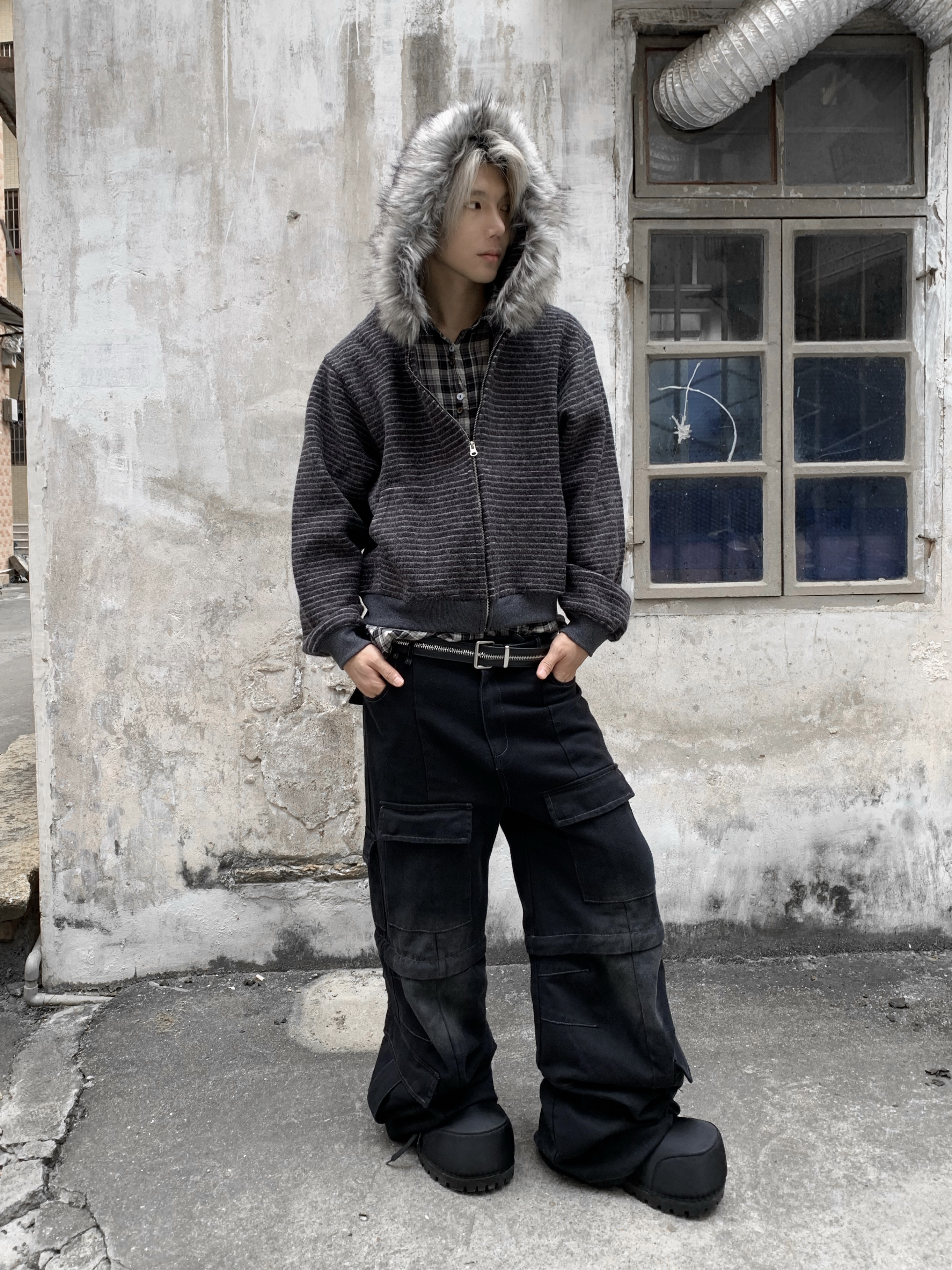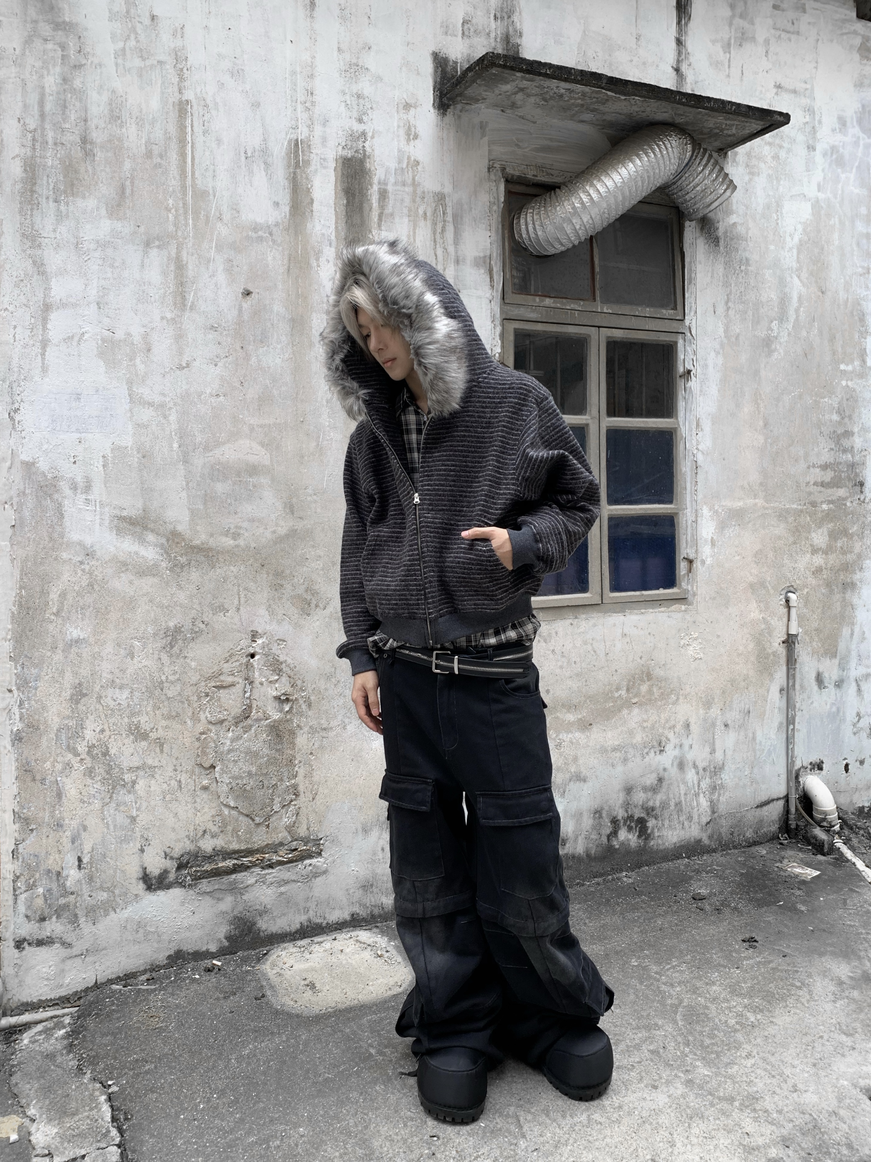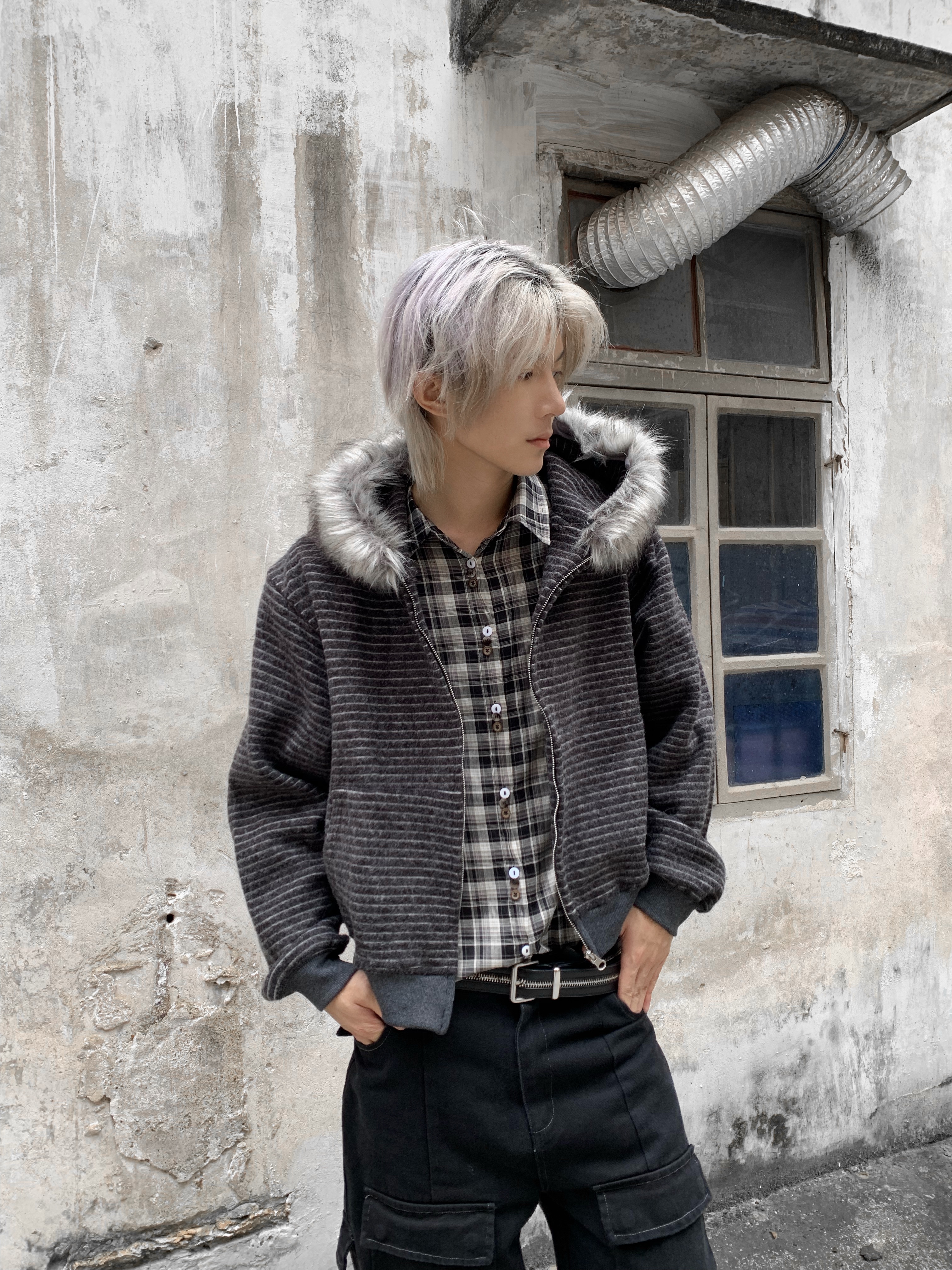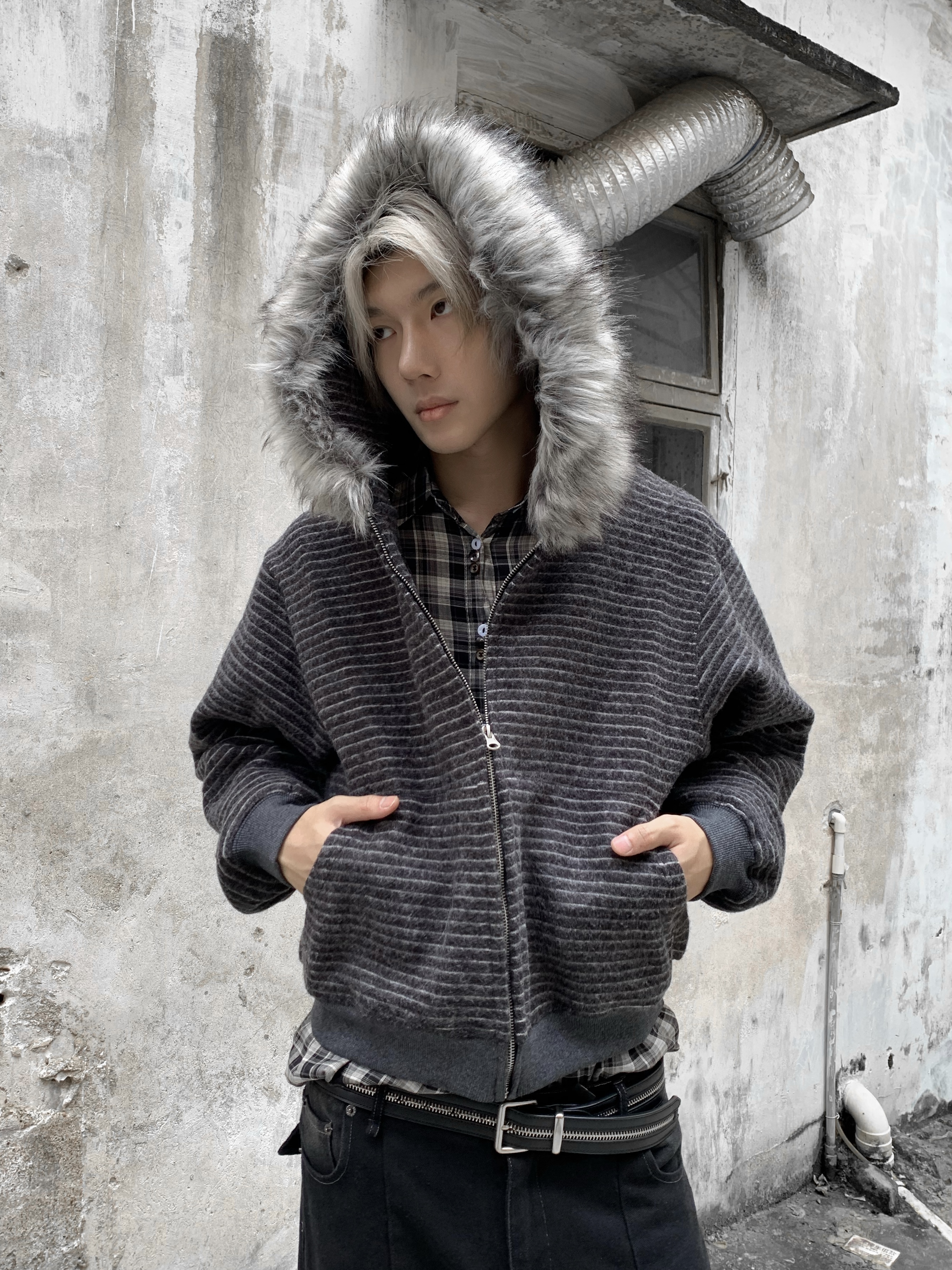 Stripe Detachable Hooded Zipper Jacket WN22224