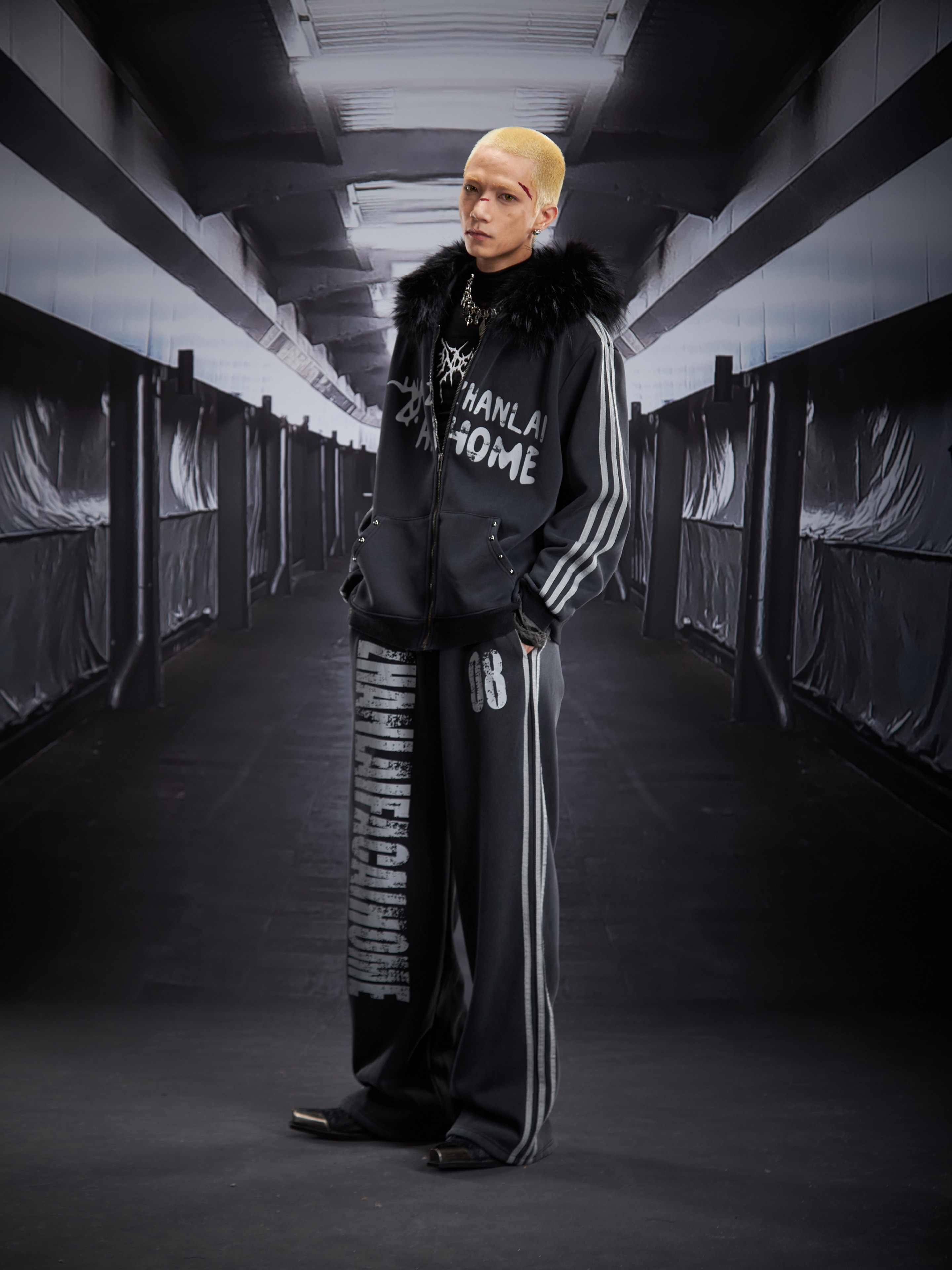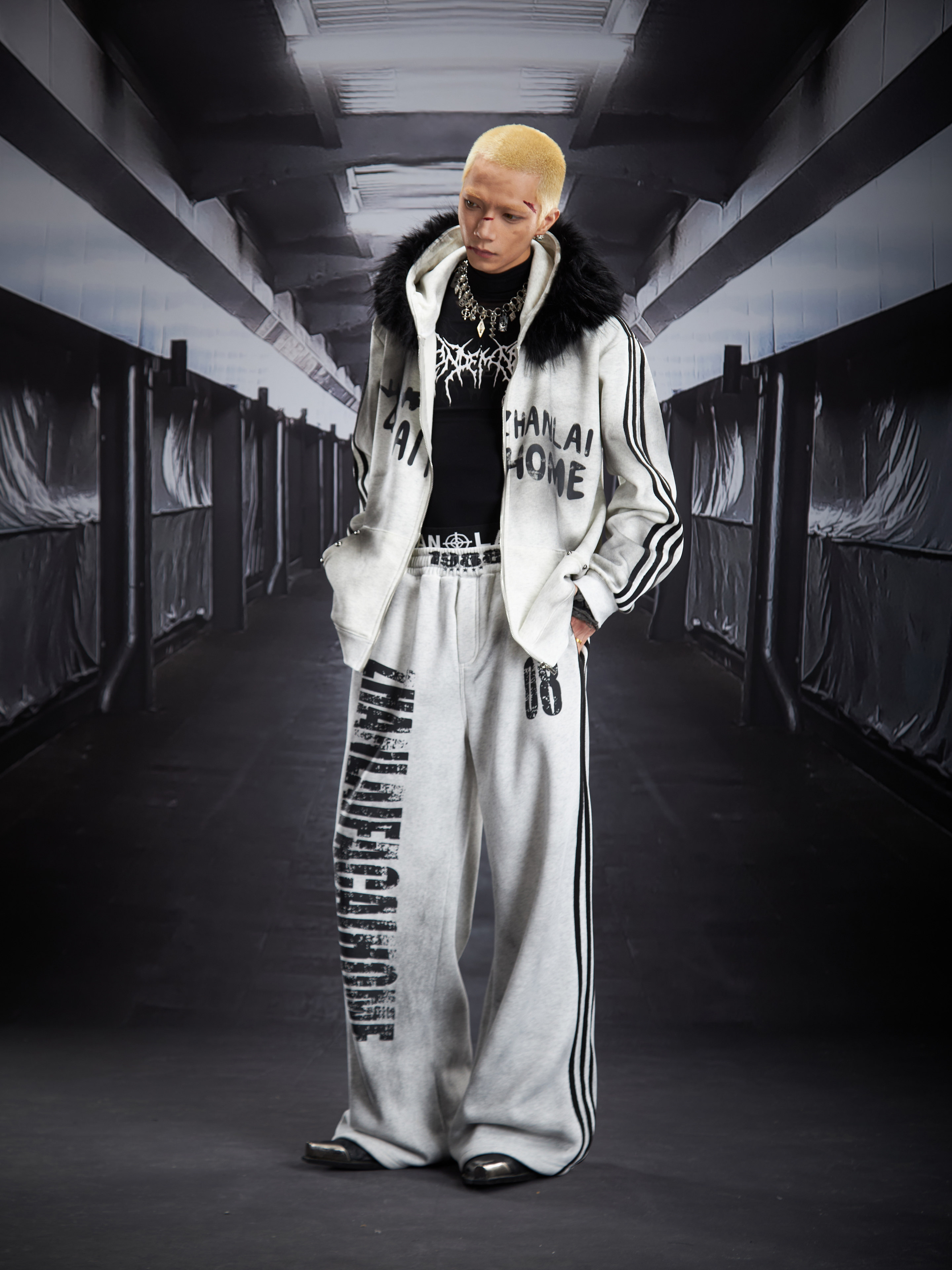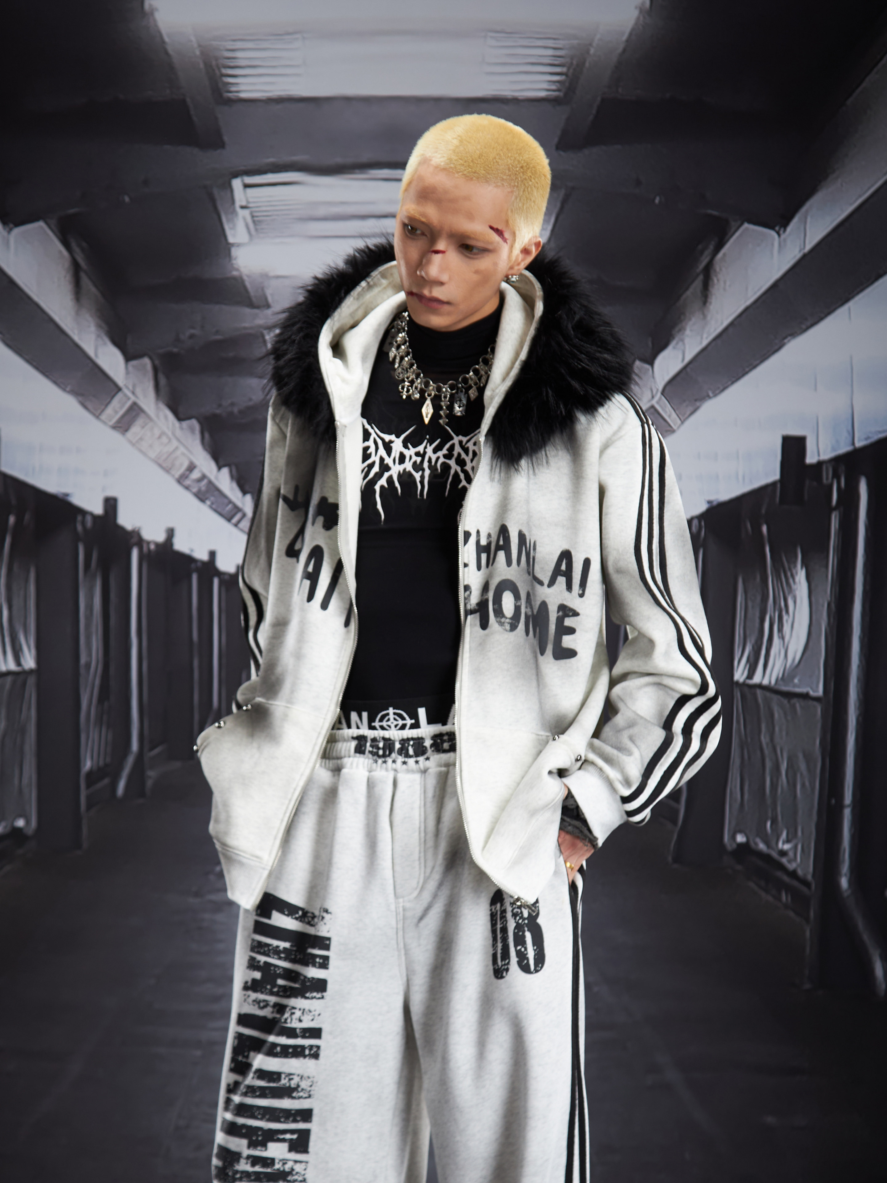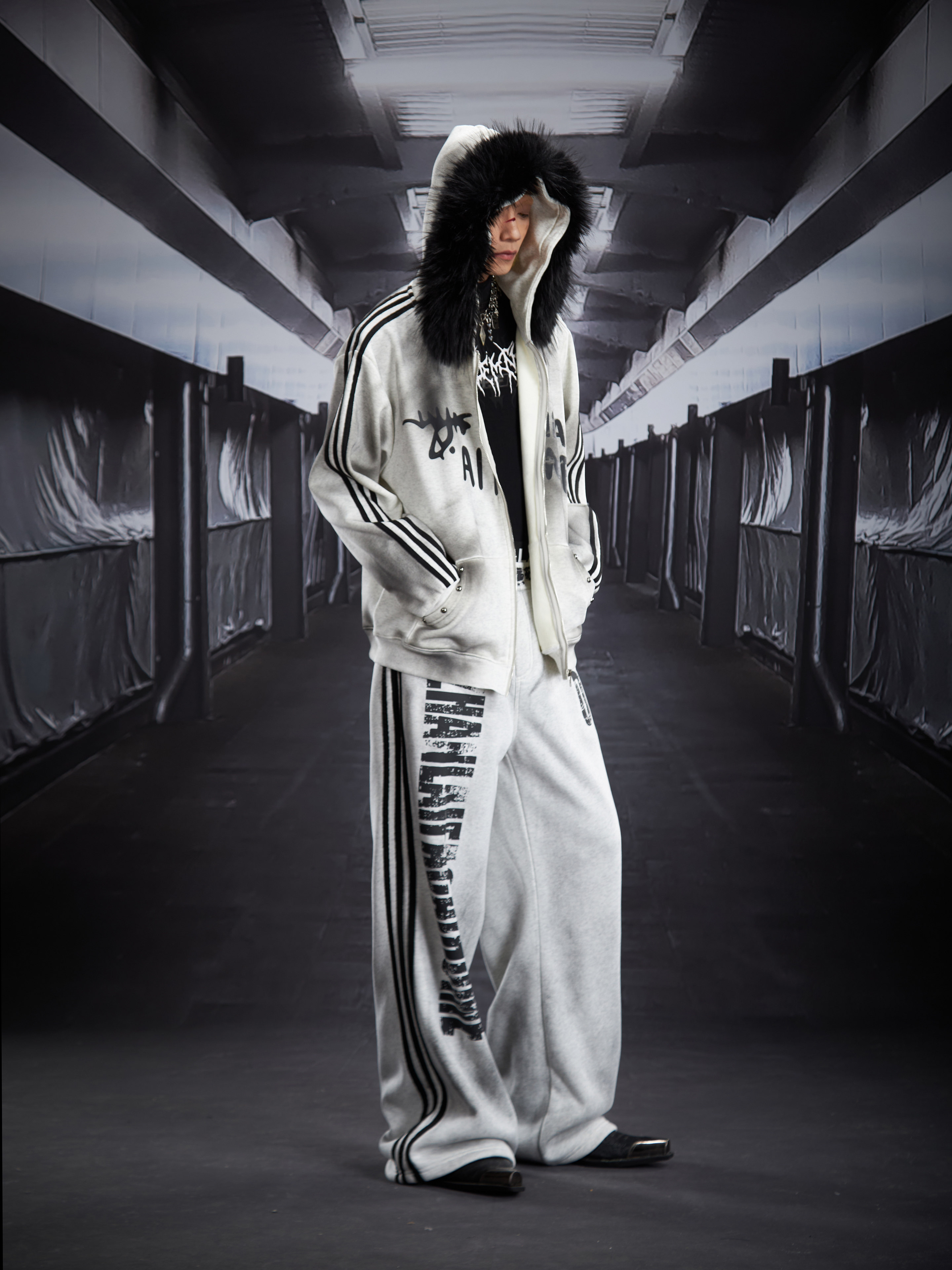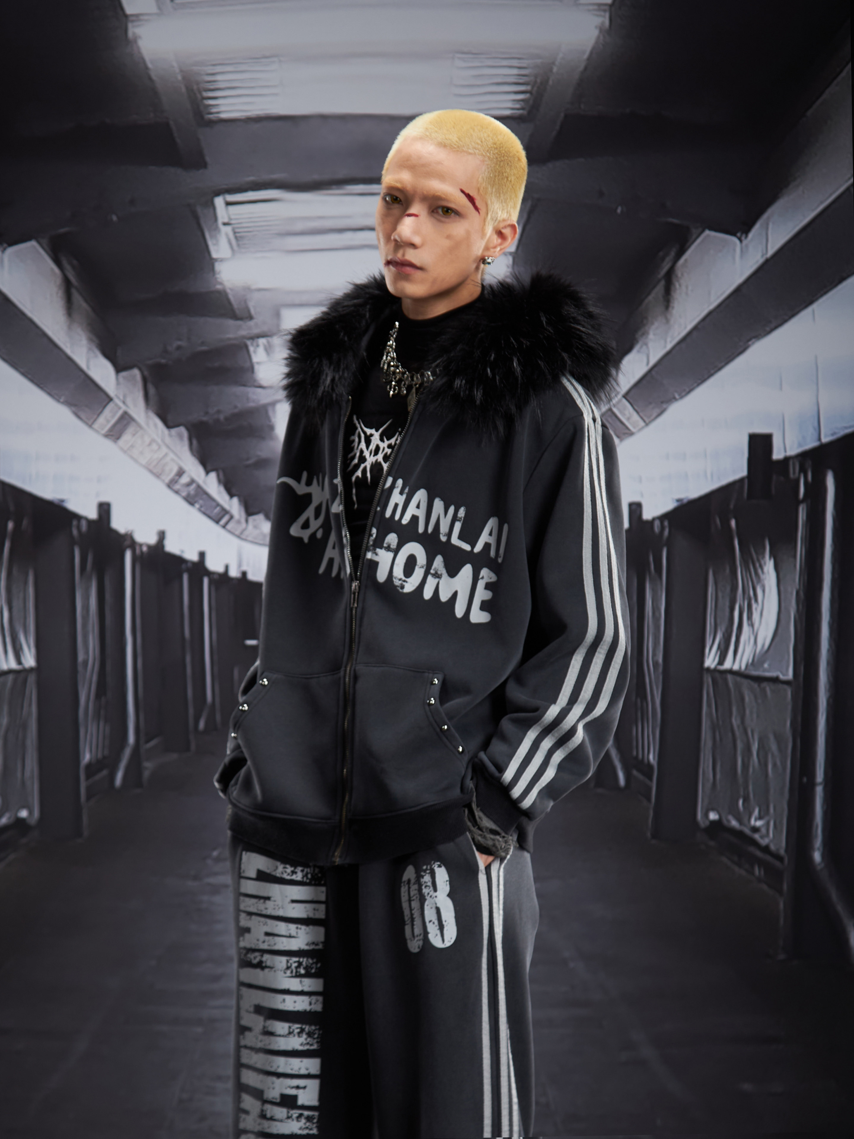 Print Fake Fur Zipper Hoodie & Print Wide Leg Sweatpants Setup WN22792
