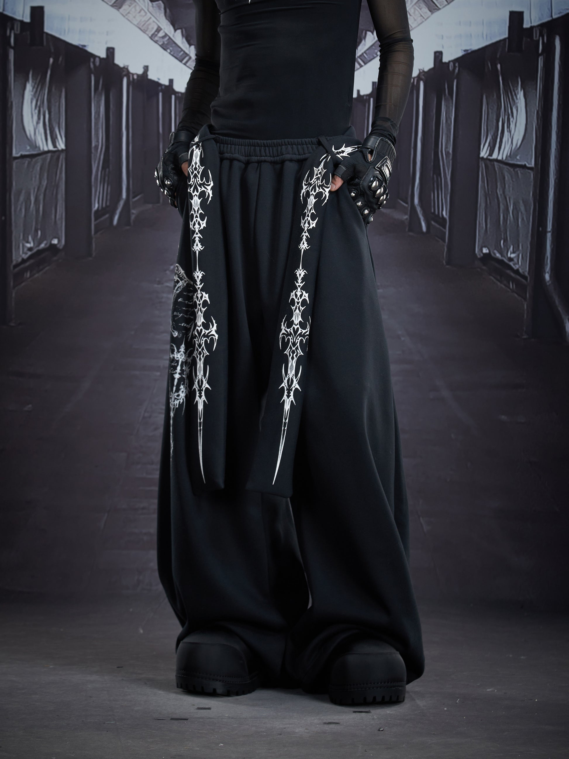 Graphic Print Detachable Strap Wide Leg Sweatpants WN22856