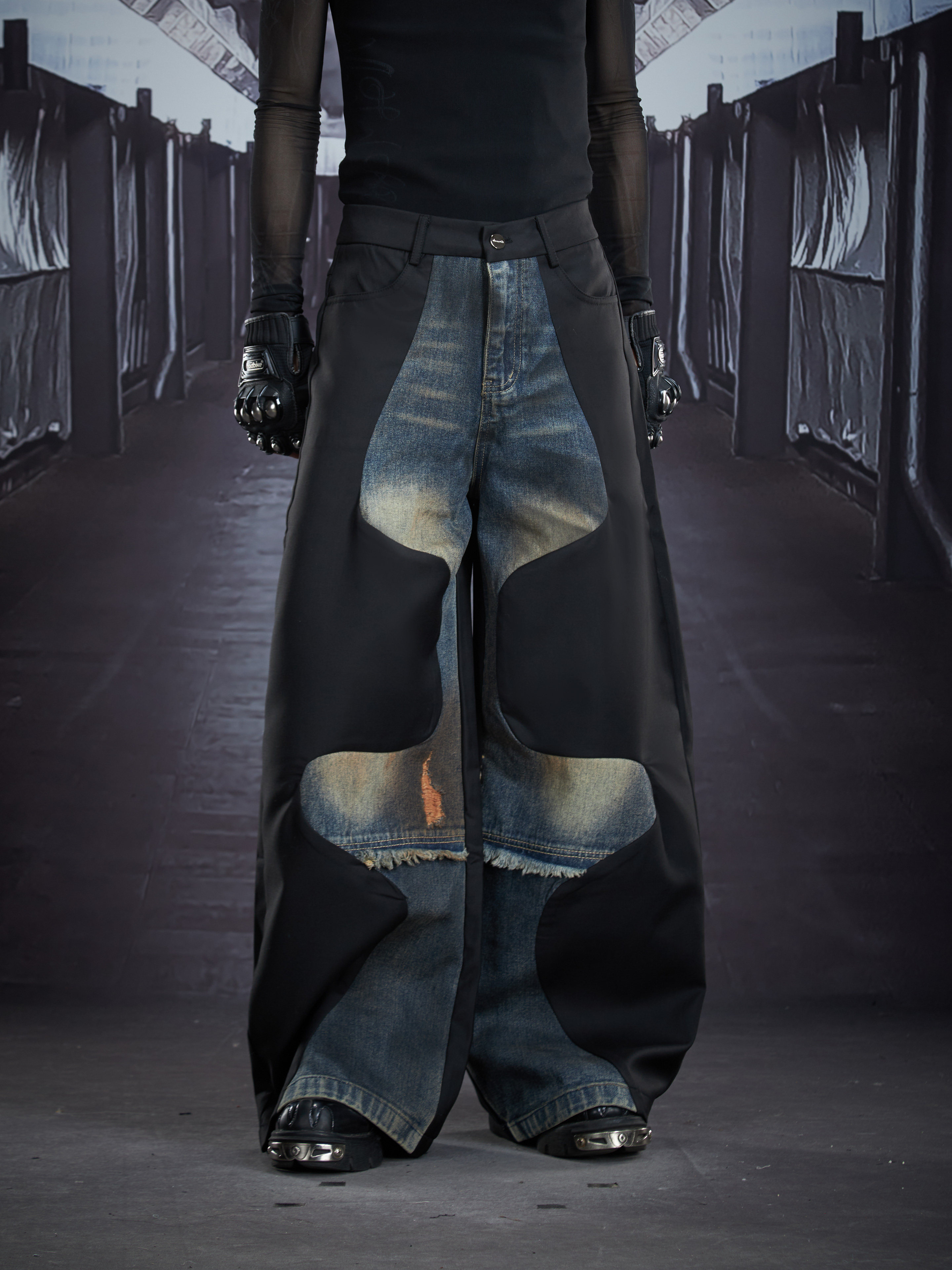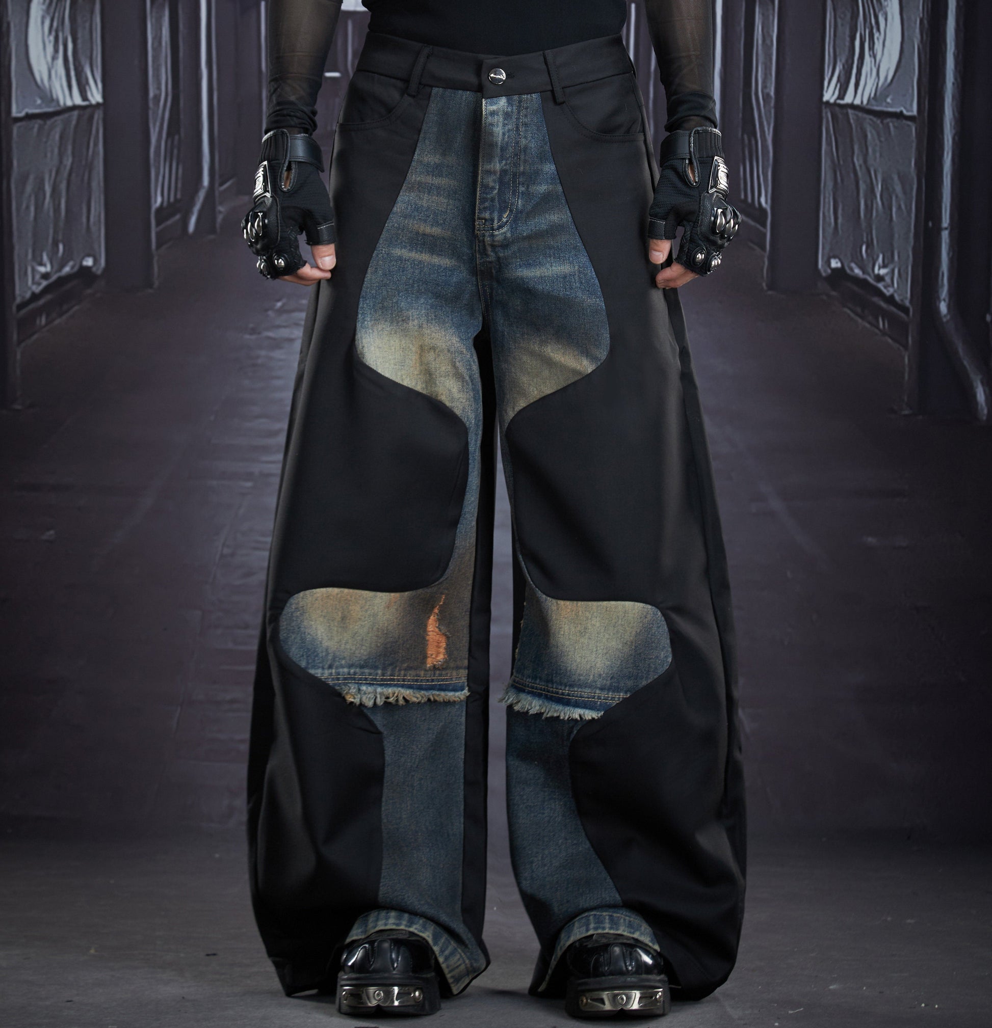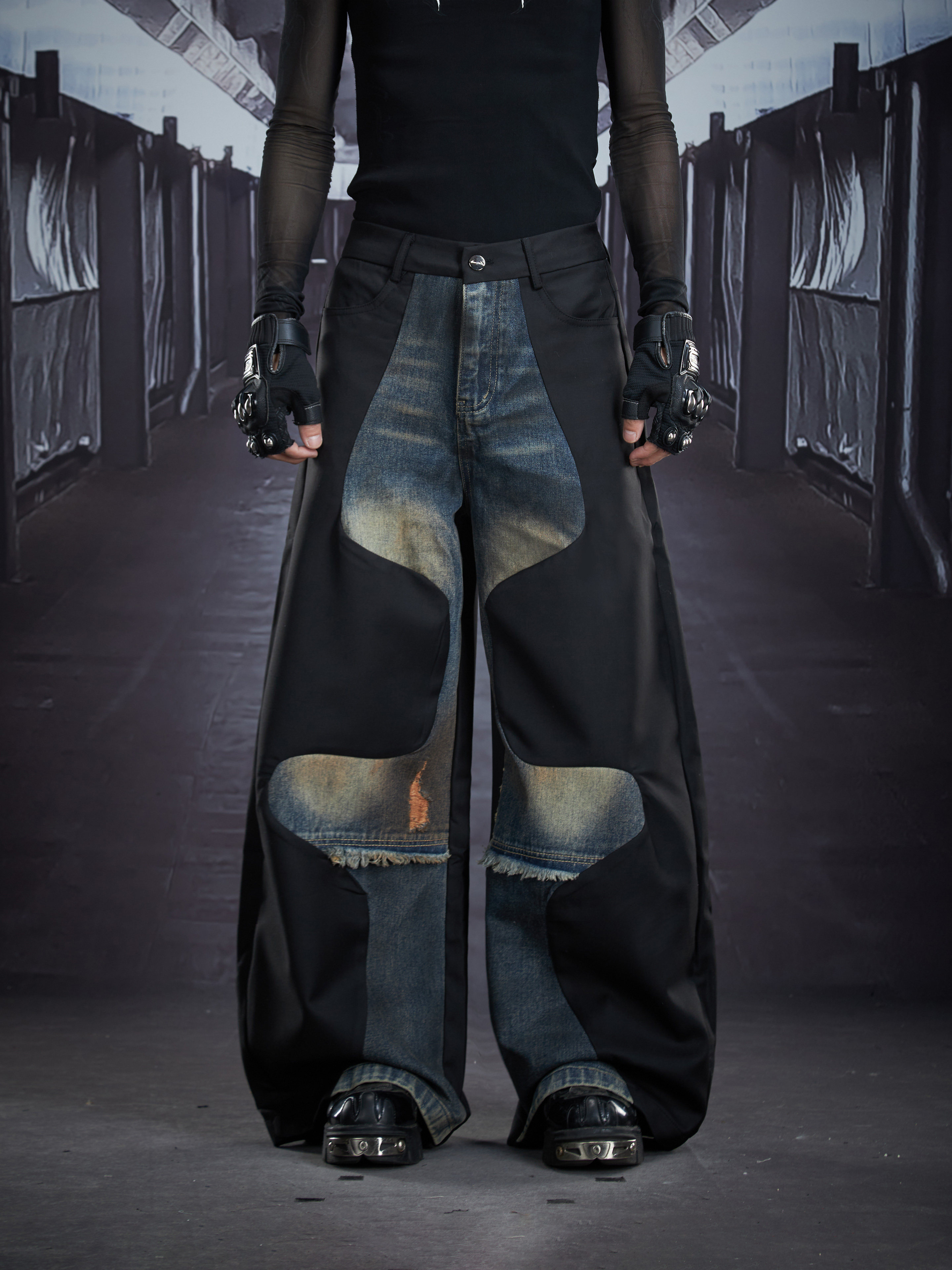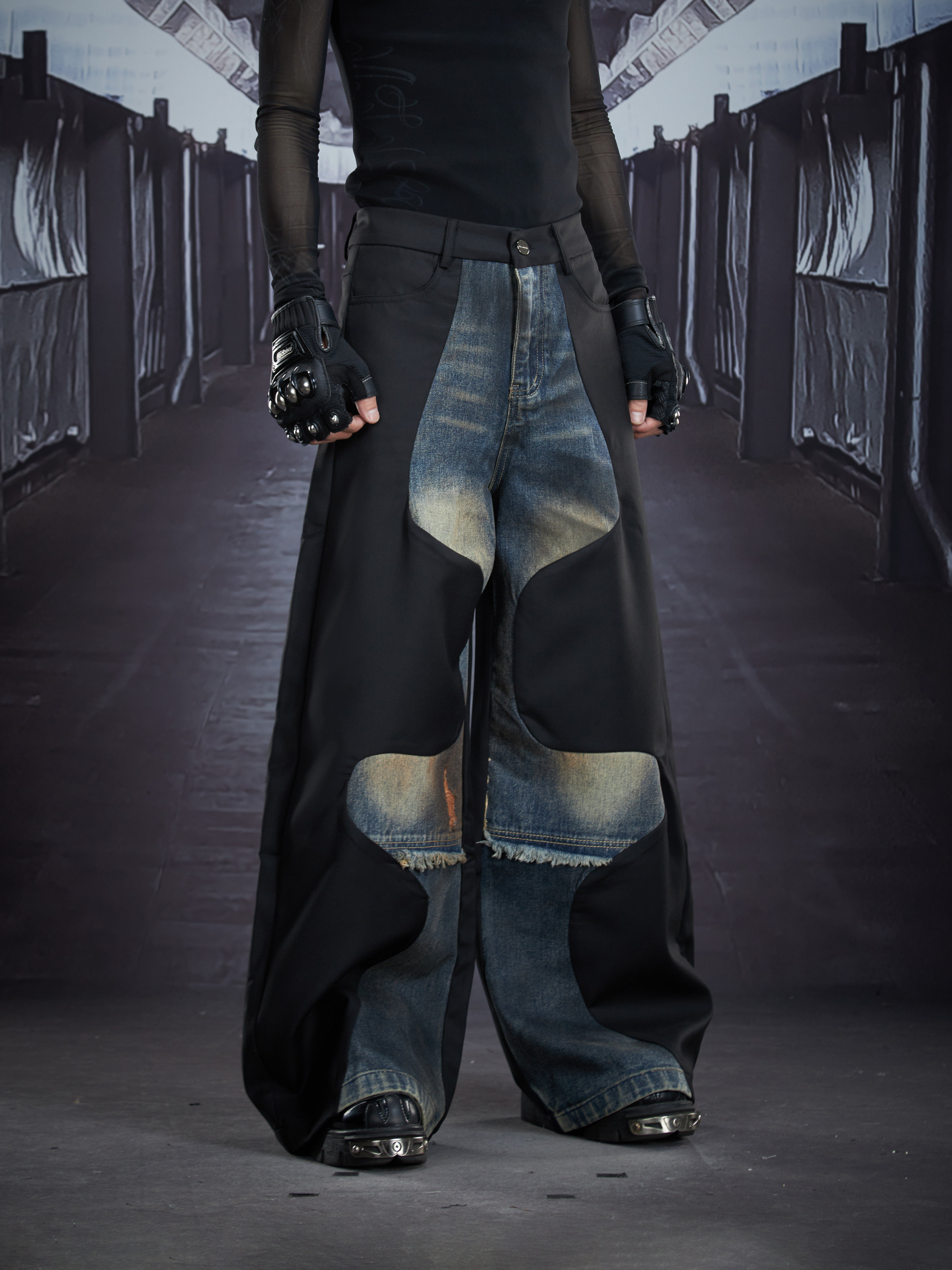 Deconstruct Patchwork Wash Straight Denim Jeans WN22884