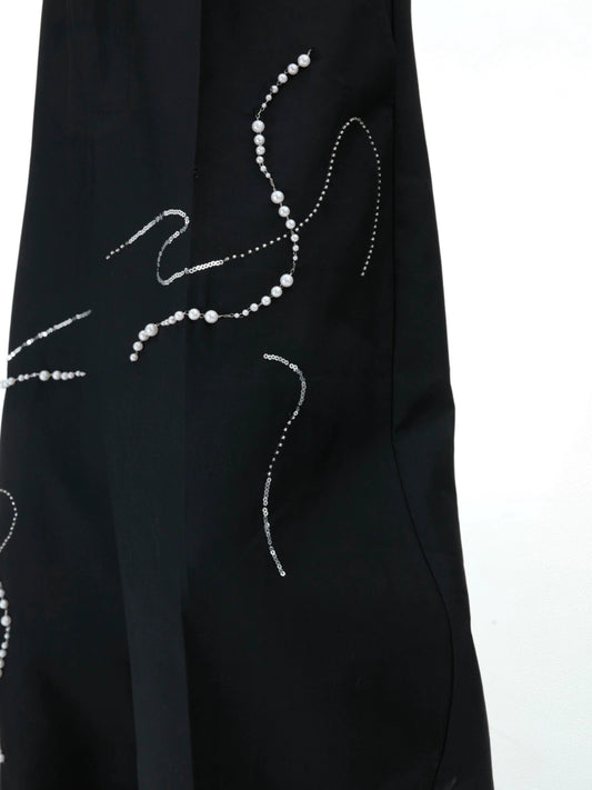 Pearl-Embellished Snake-Year Wide-Leg Trousers WN12903