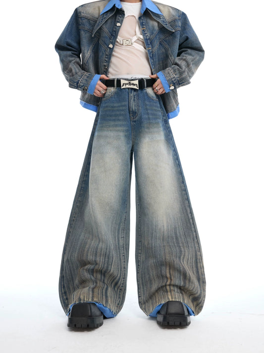 Washed Denim Jacket & Wide-Leg Denim Jeans Setup WN14928