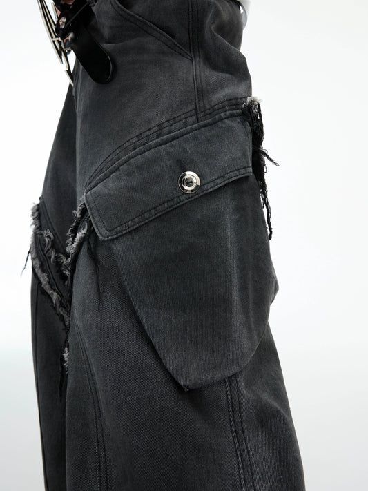 Frayed Curved Wide Leg Denim Jeans WN12895