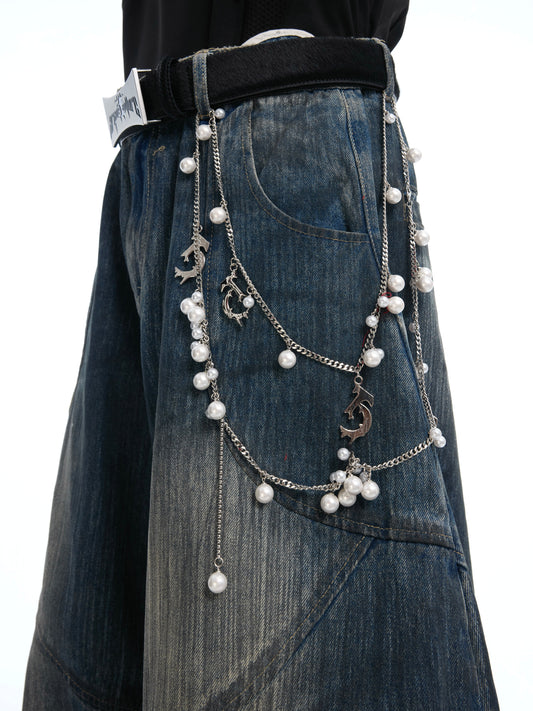 Washed Pearl Decor Wide-leg Denim Jeans WN14930