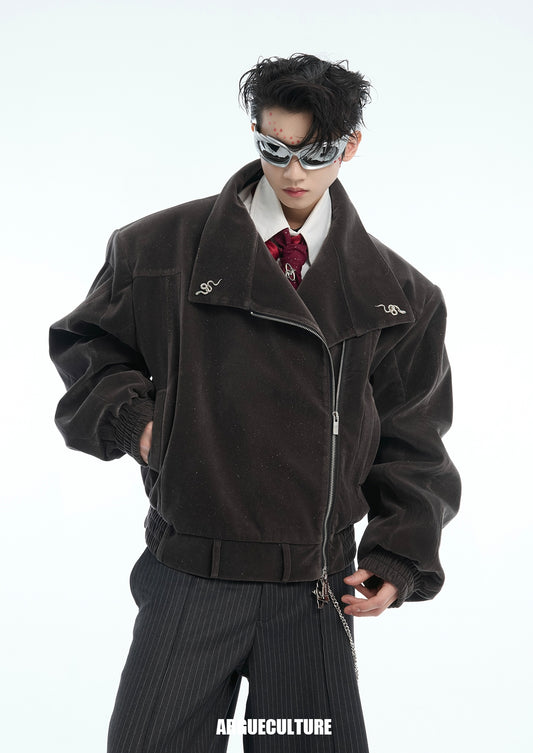 Sequin Oversize Asymmetrical Zipper Snake Design Jacket WN14934