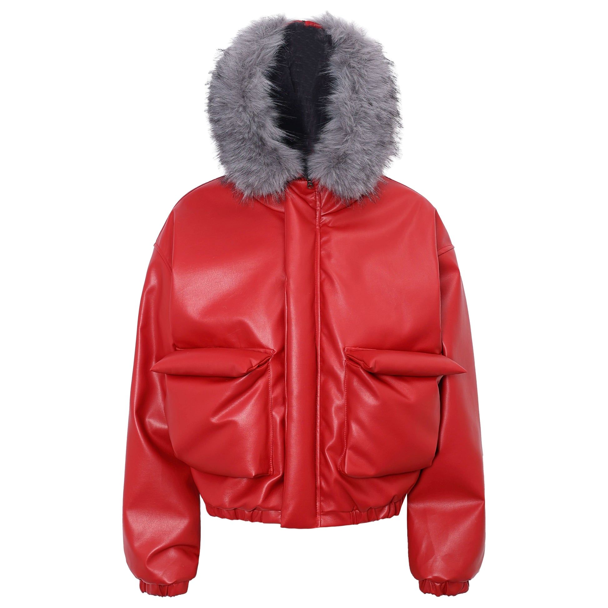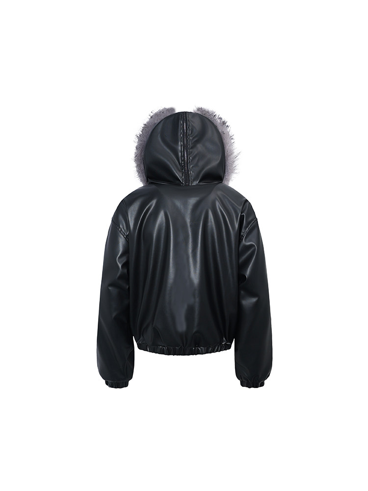 Fake Fur Plush Thick PU Leather Padded Jacket WN22239