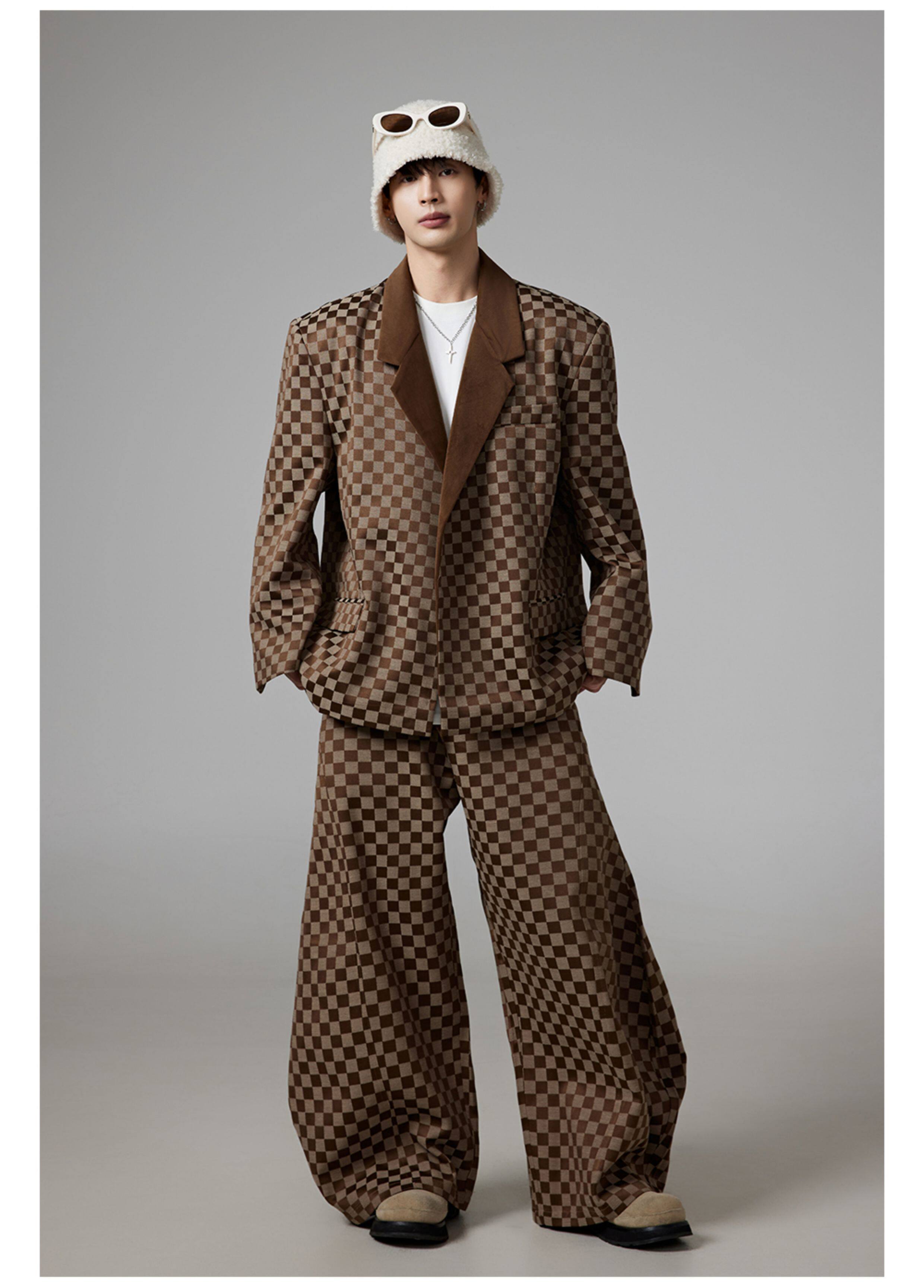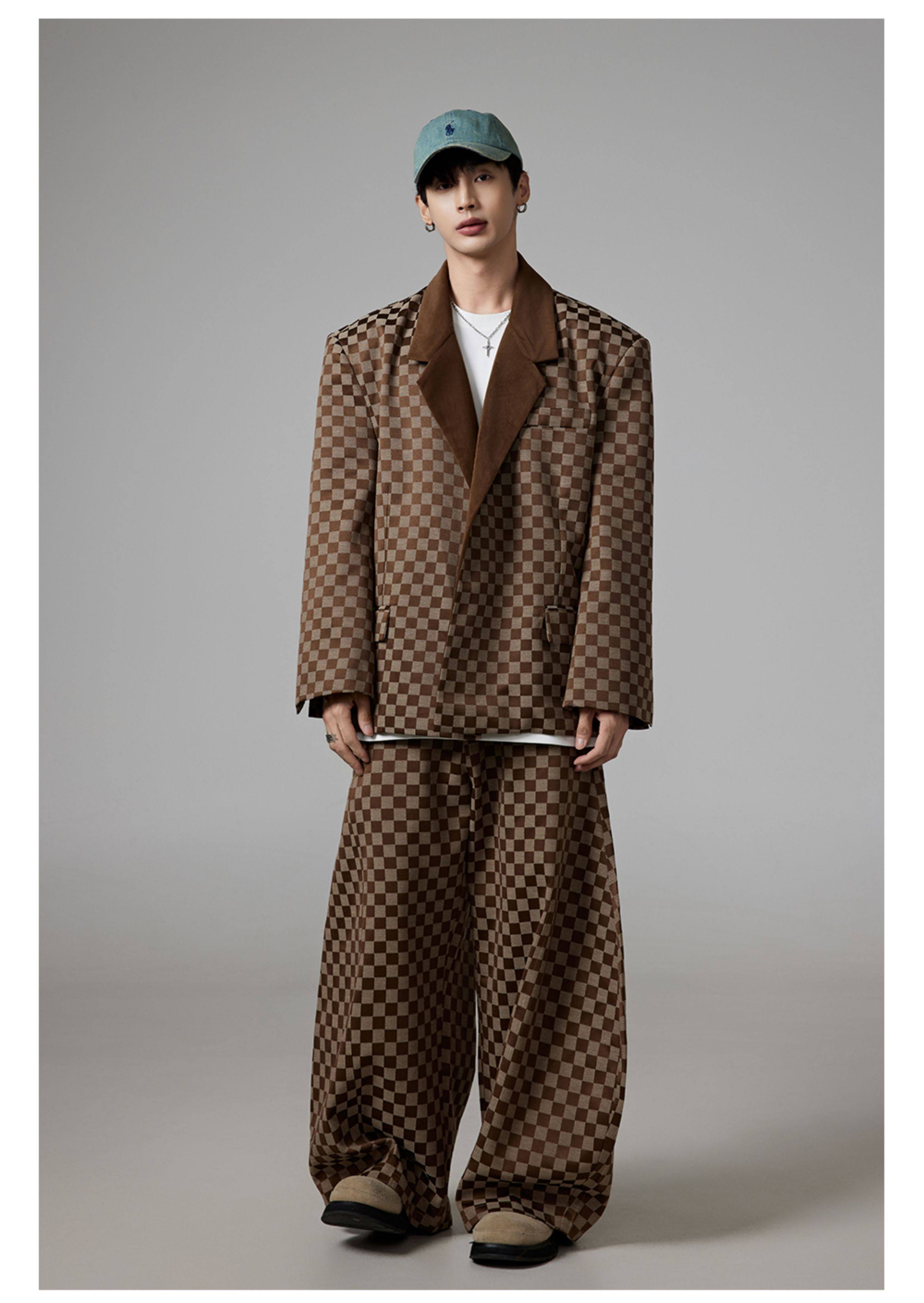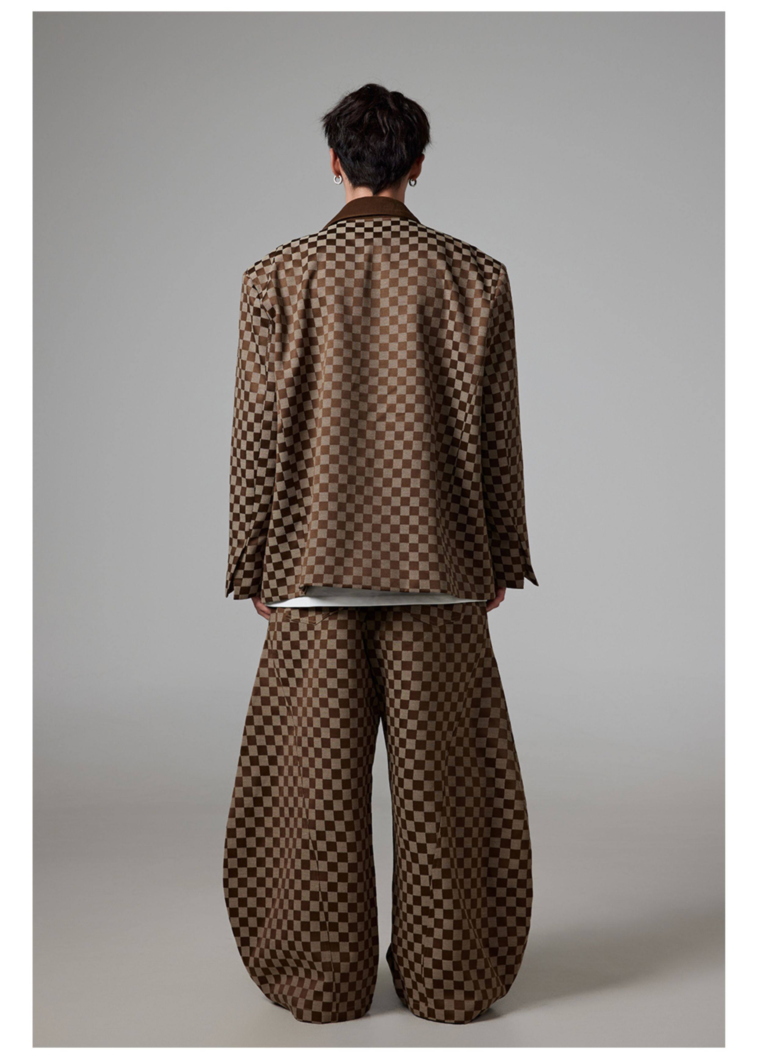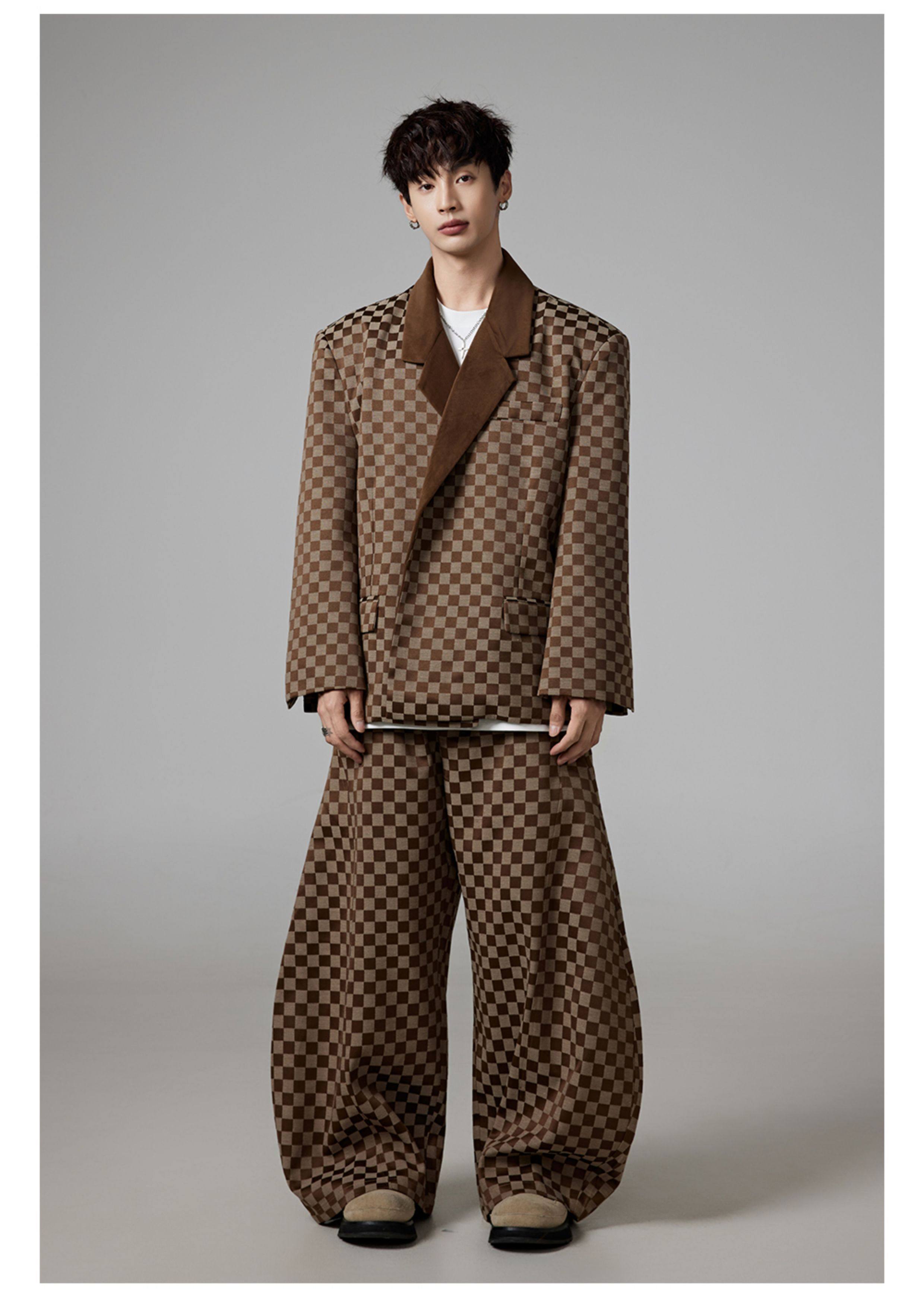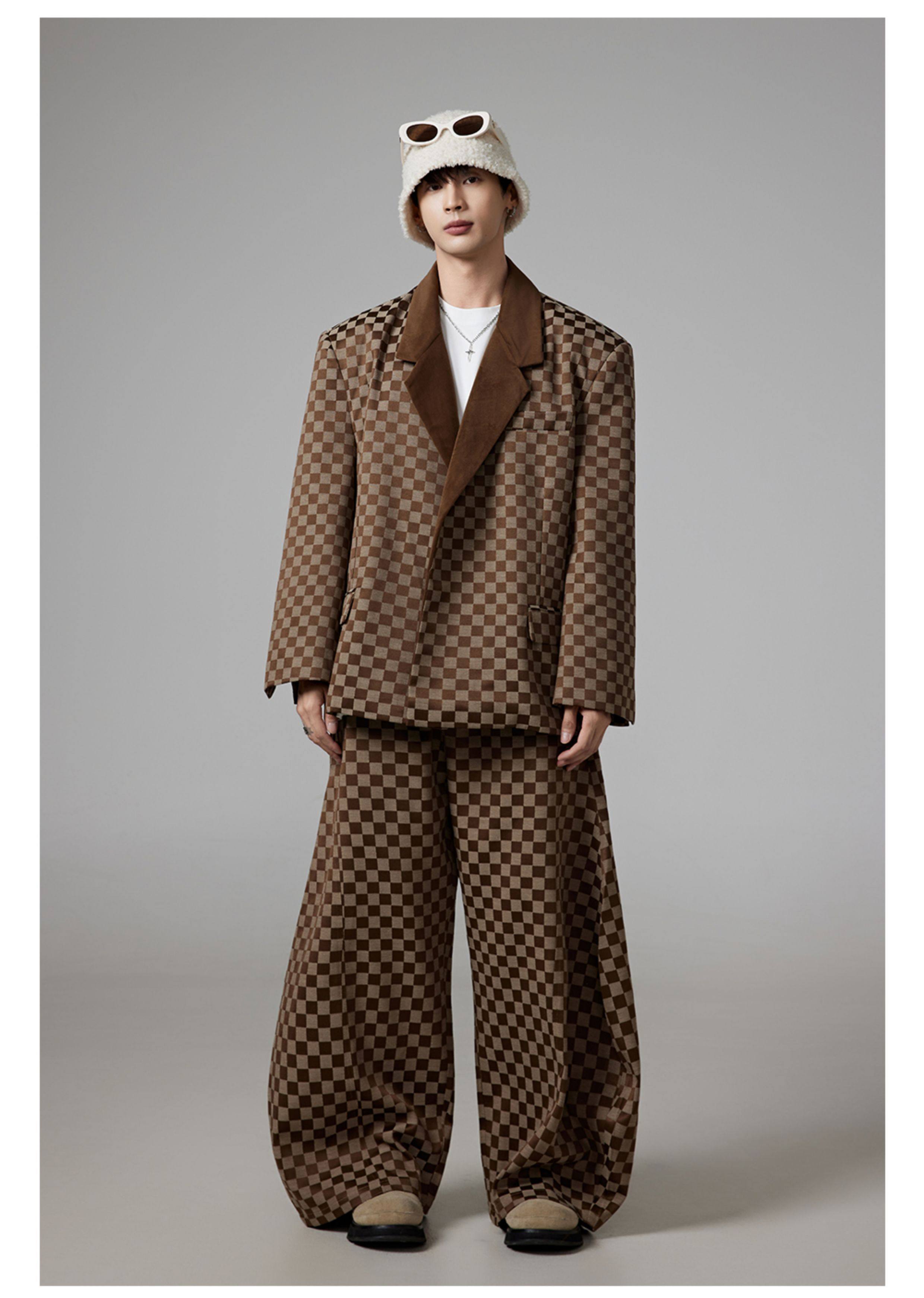 Plaid Tailored Jacket & Plaid Wide Leg Trousers Setup WN22295