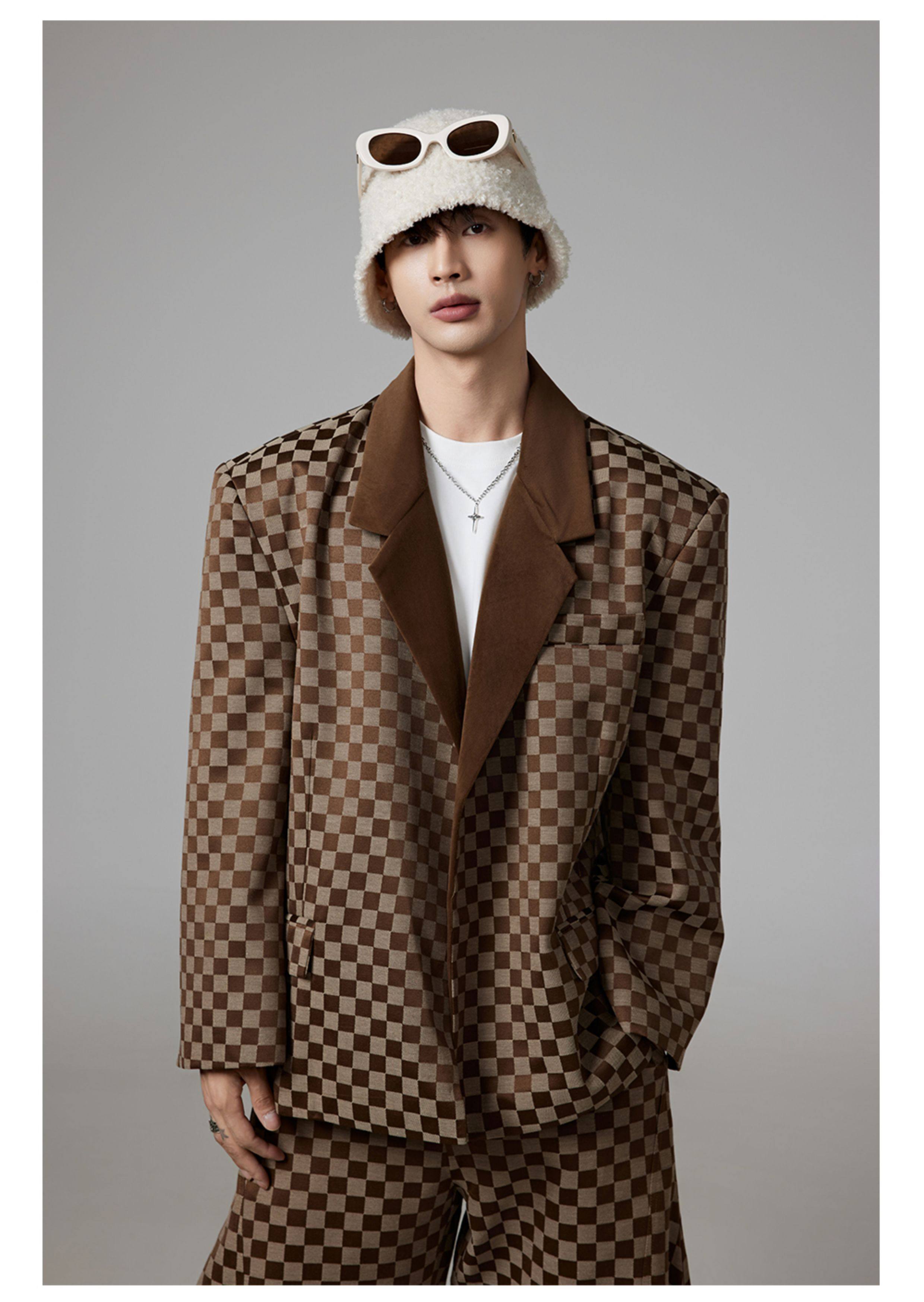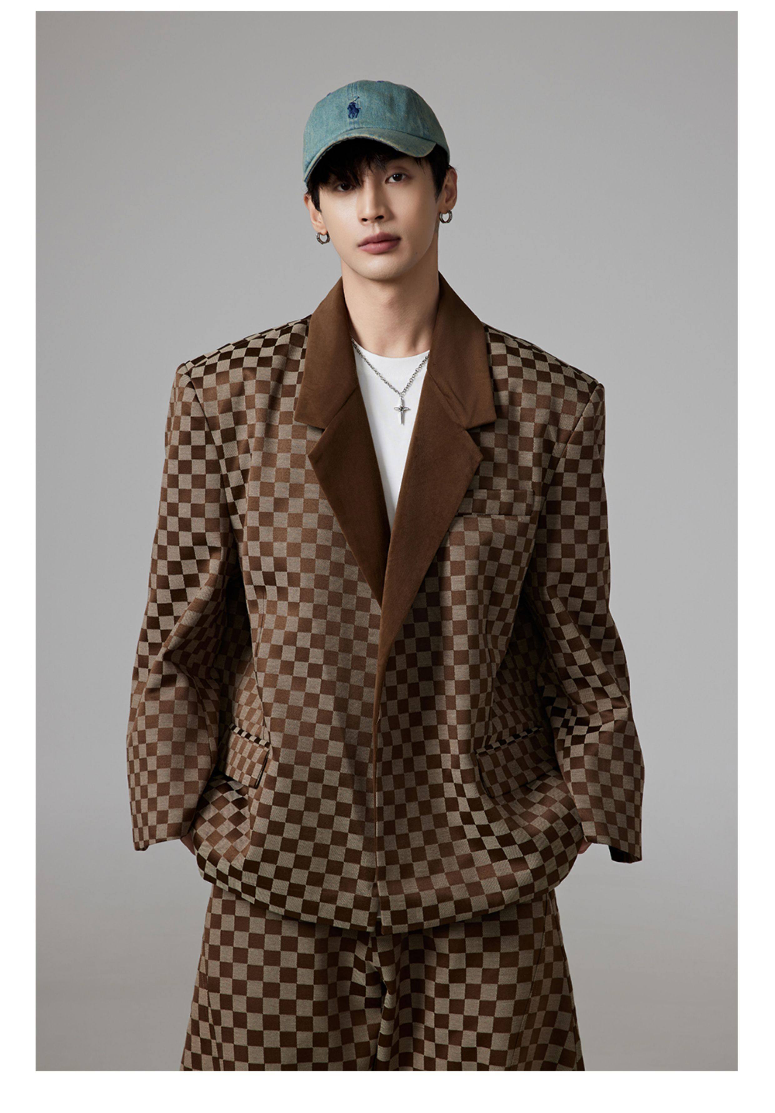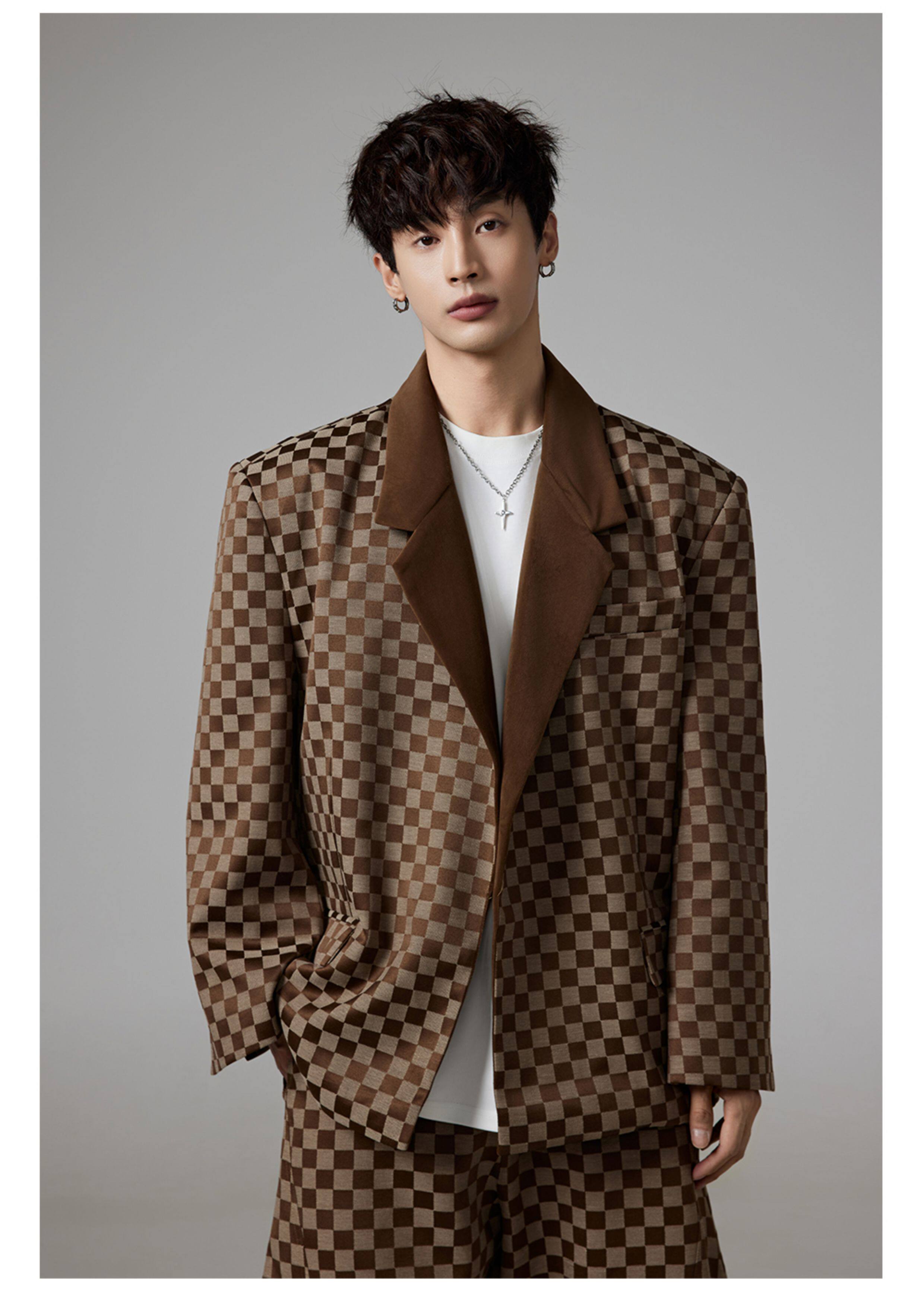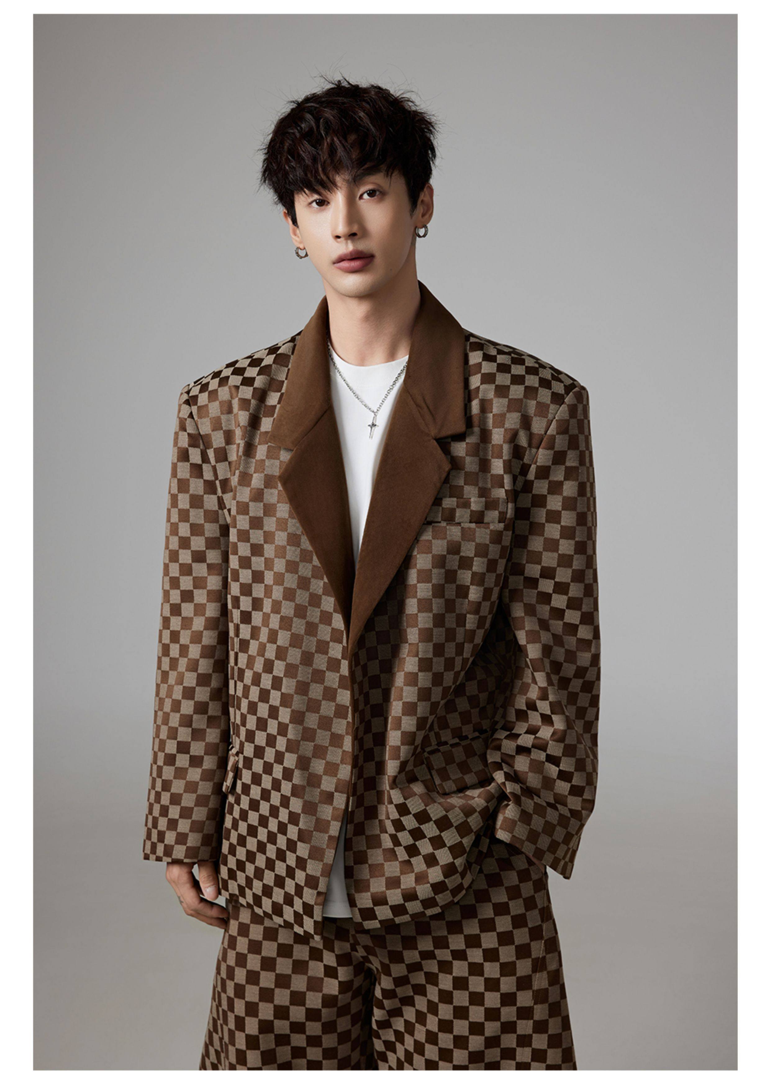 Plaid Tailored Jacket & Plaid Wide Leg Trousers Setup WN22295