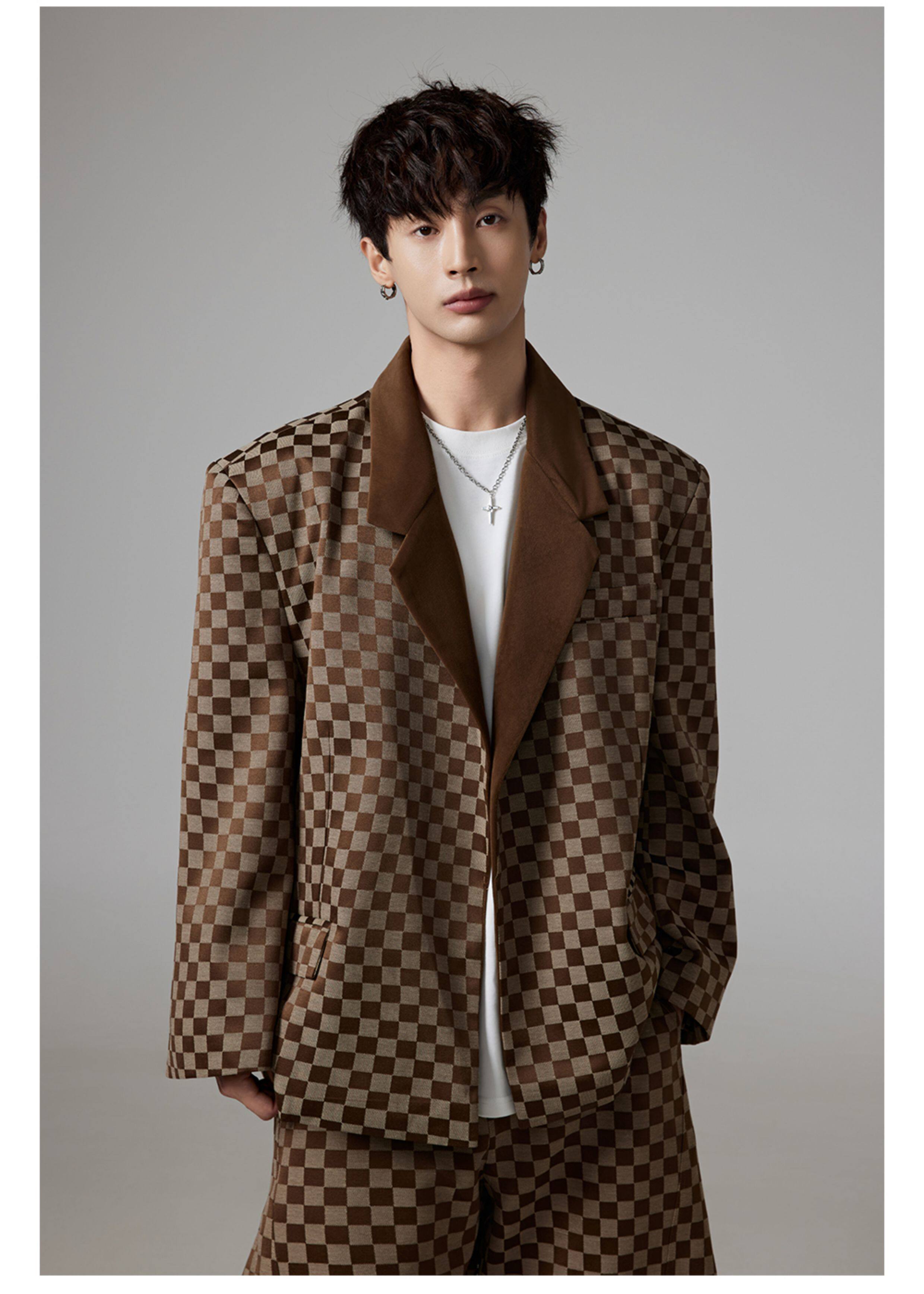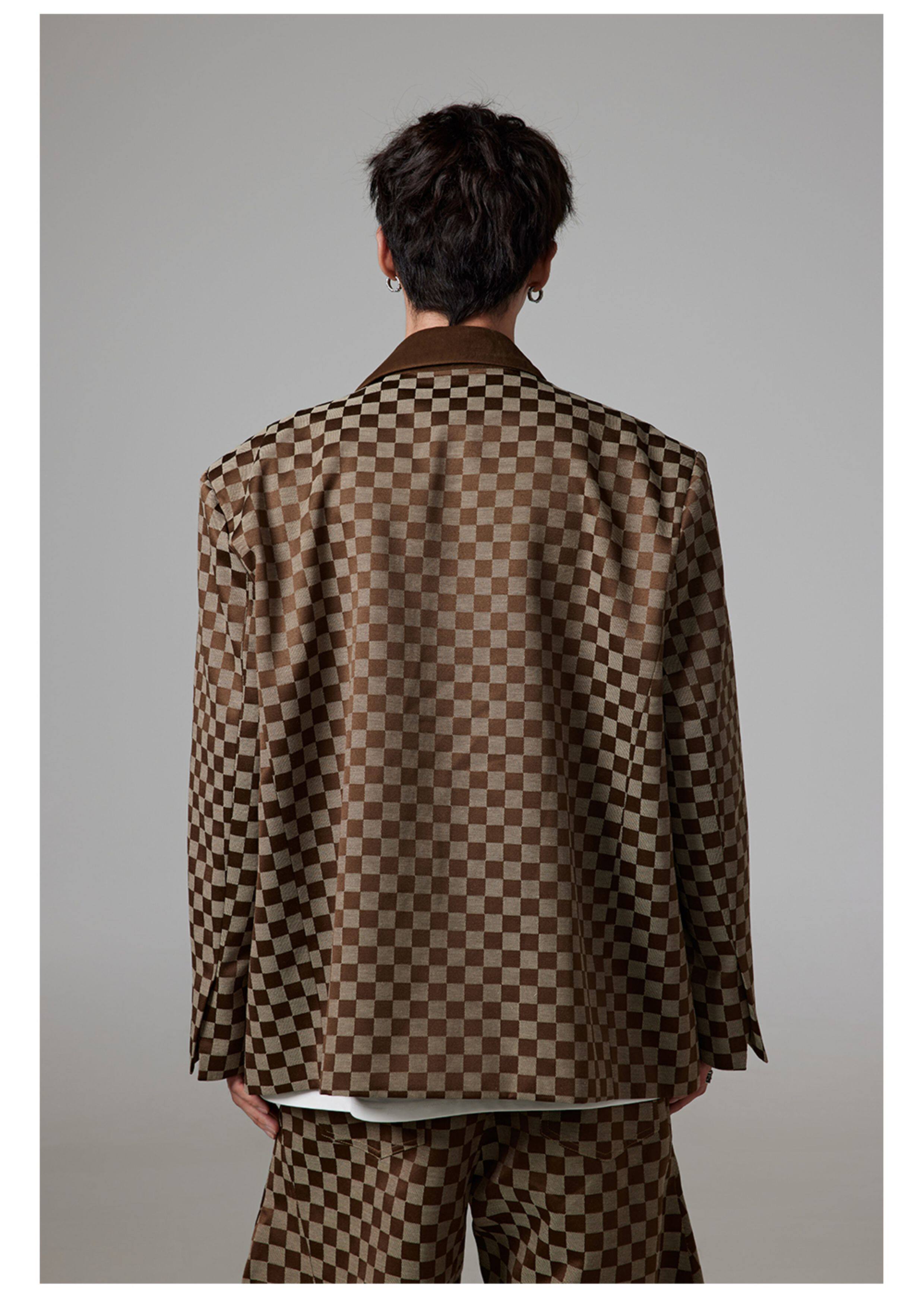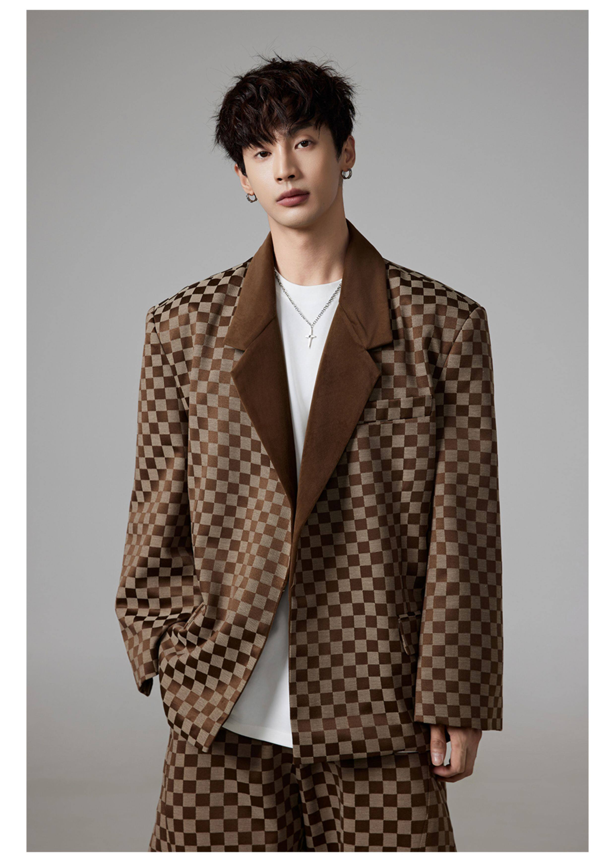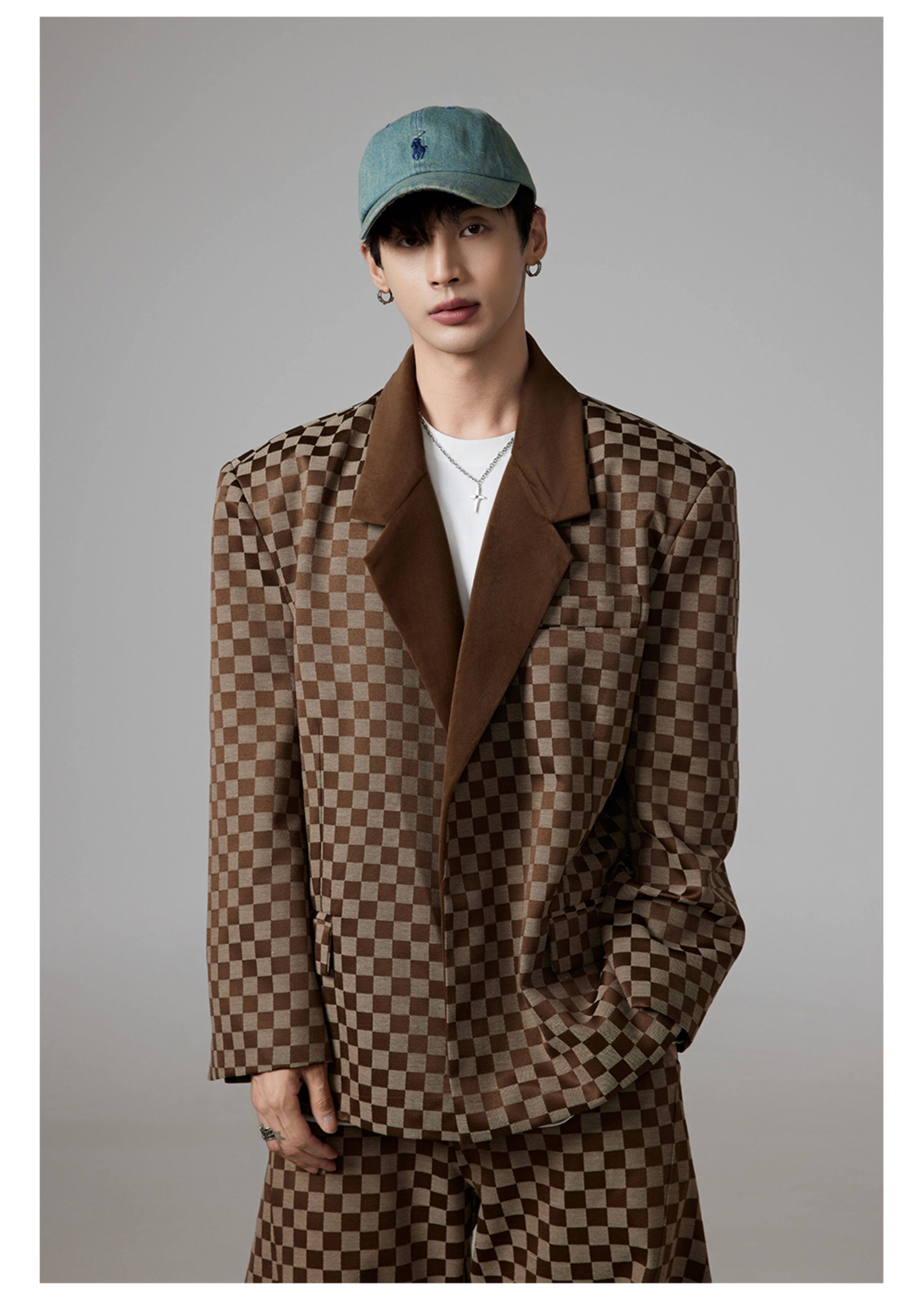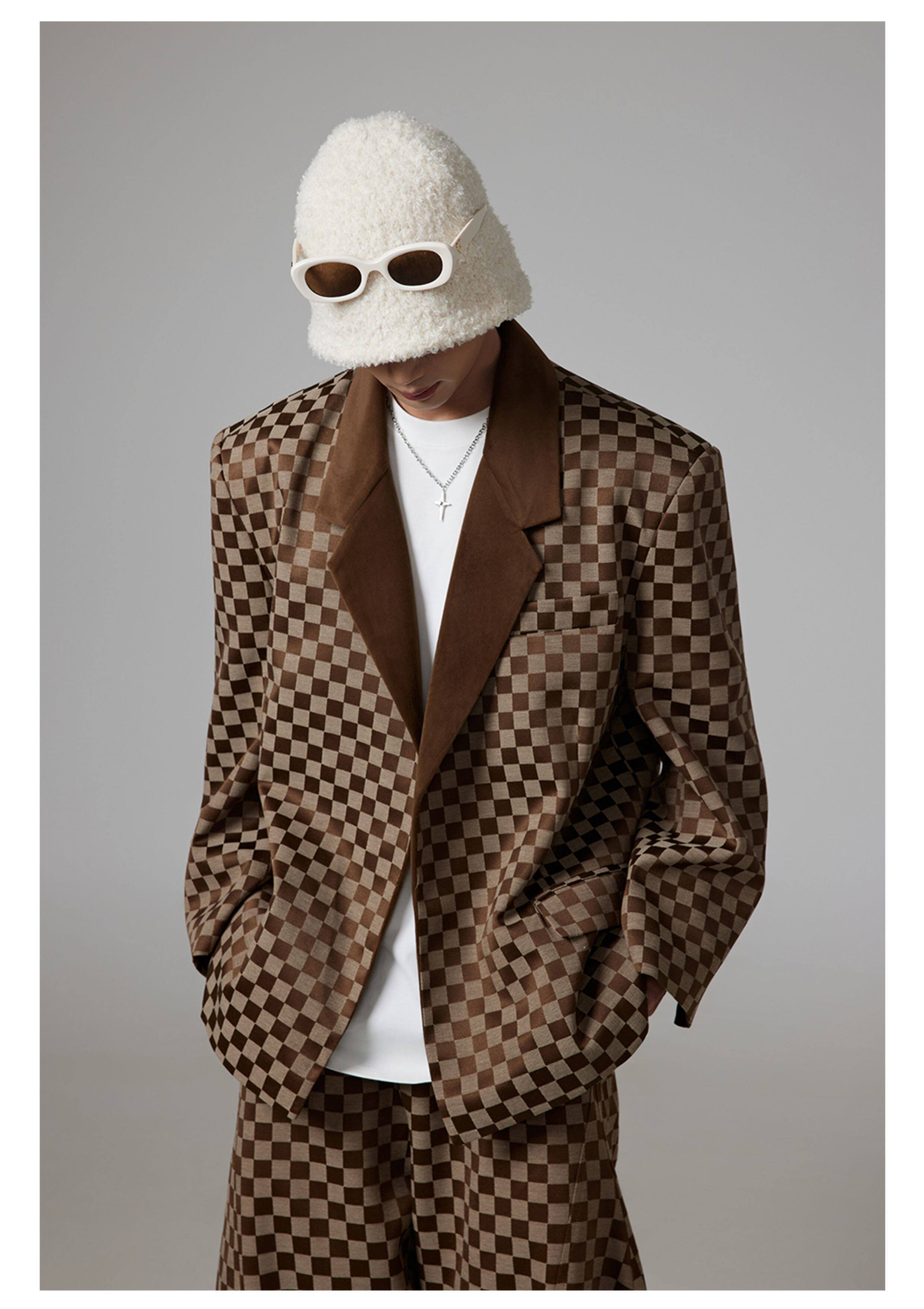 Plaid Tailored Jacket & Plaid Wide Leg Trousers Setup WN22295