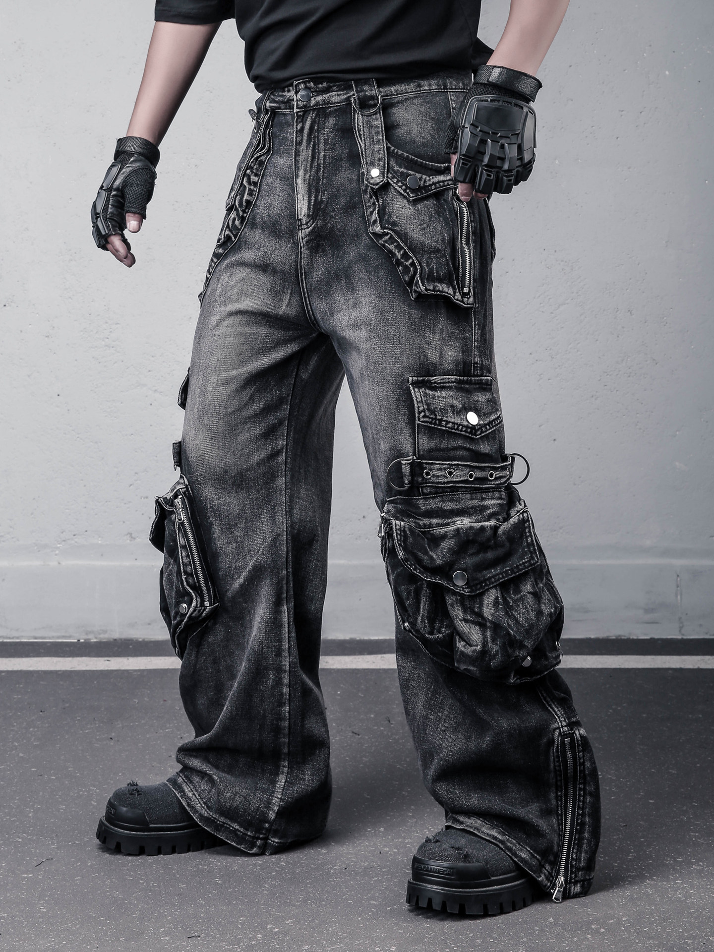 Wash Multi Pocket Flare Denim Jeans WN22306