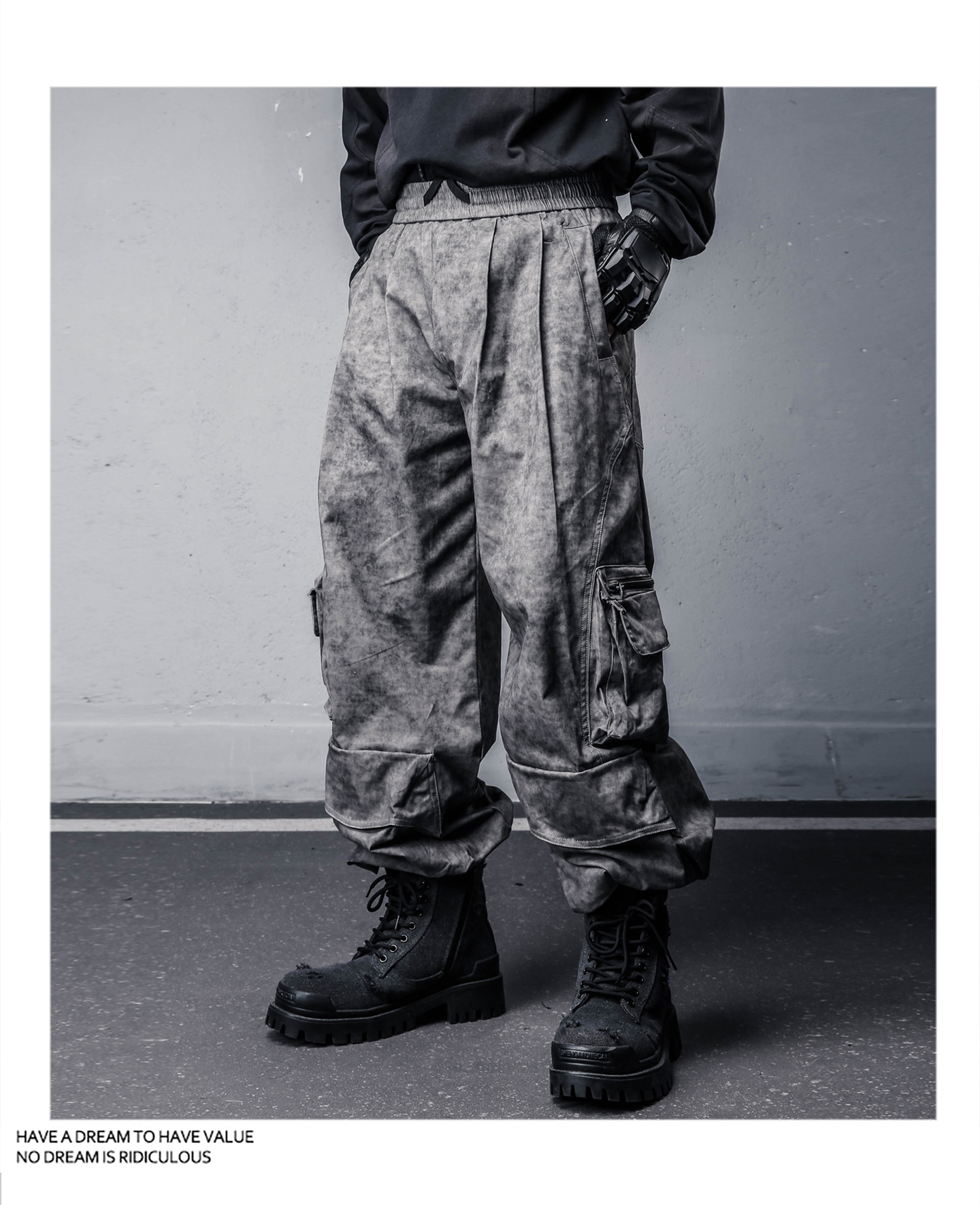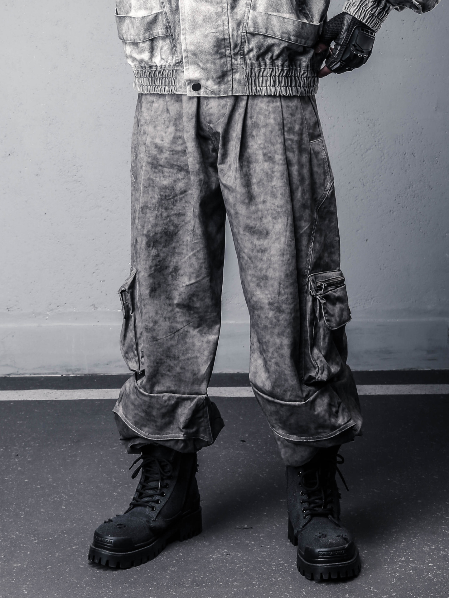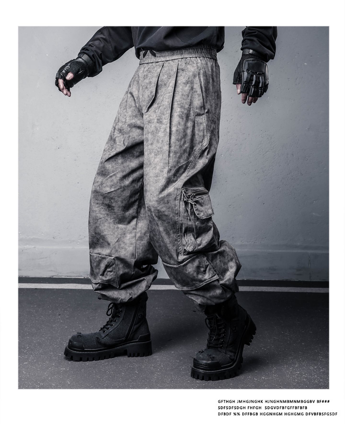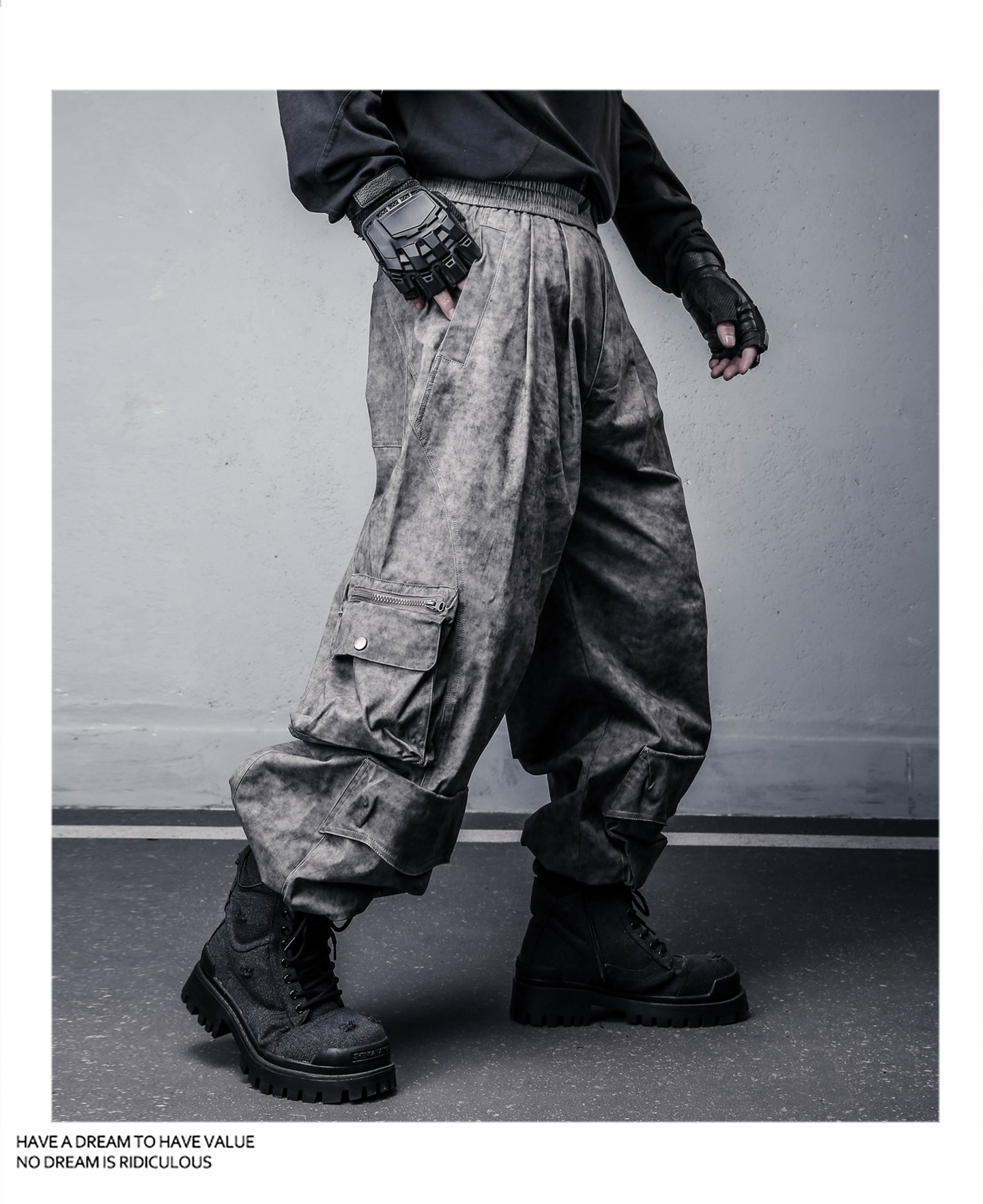 Tie-Dye Wash Large Pocket Wide Leg Pants WN22321