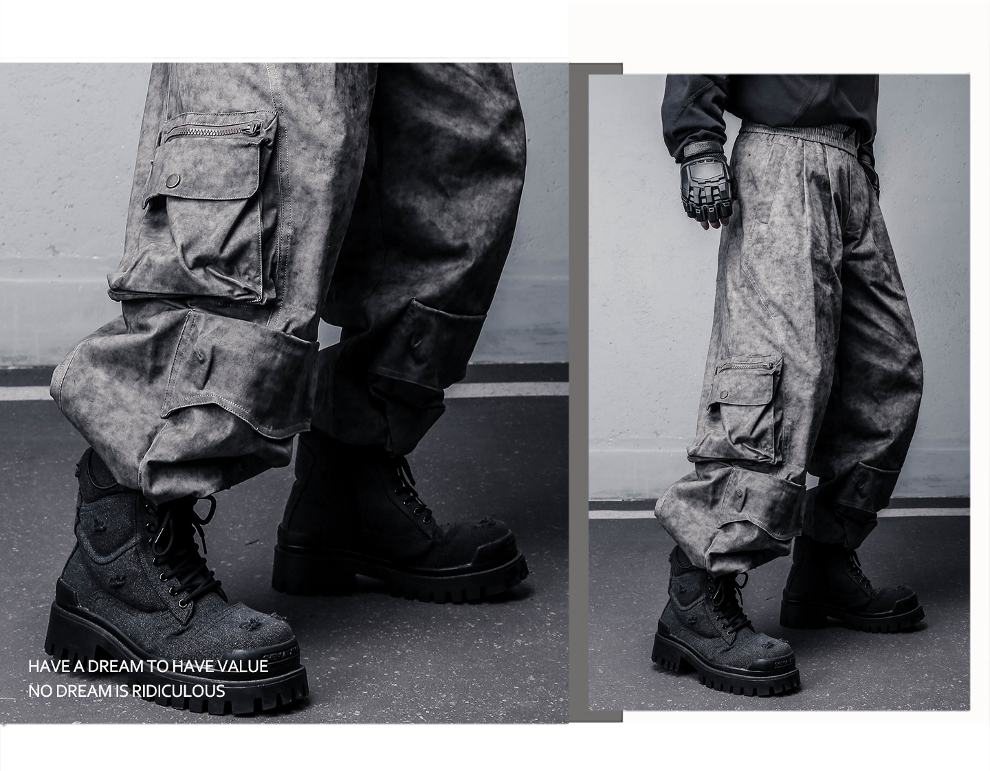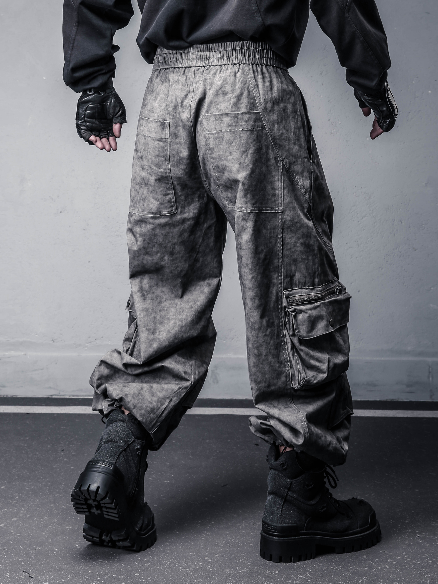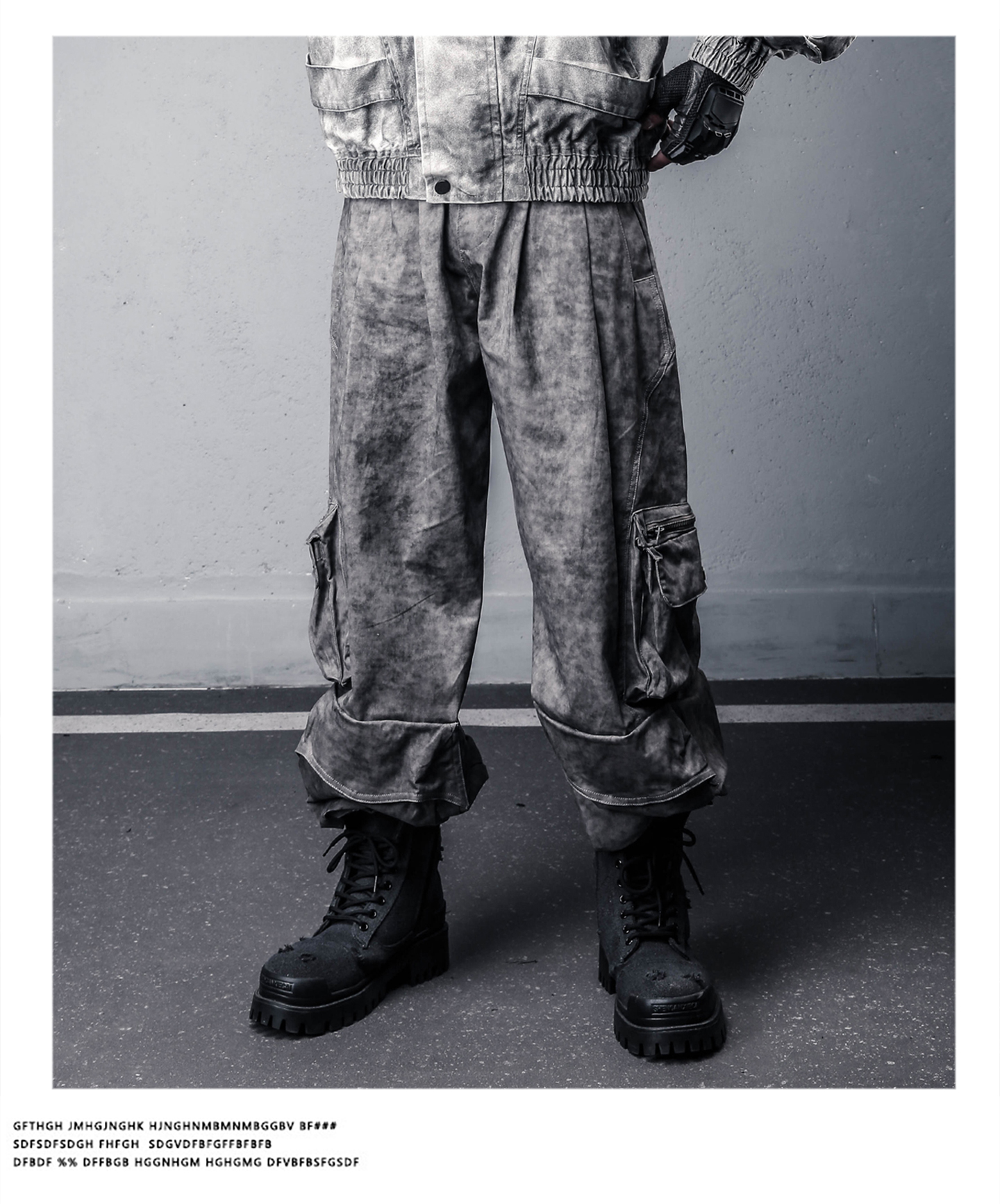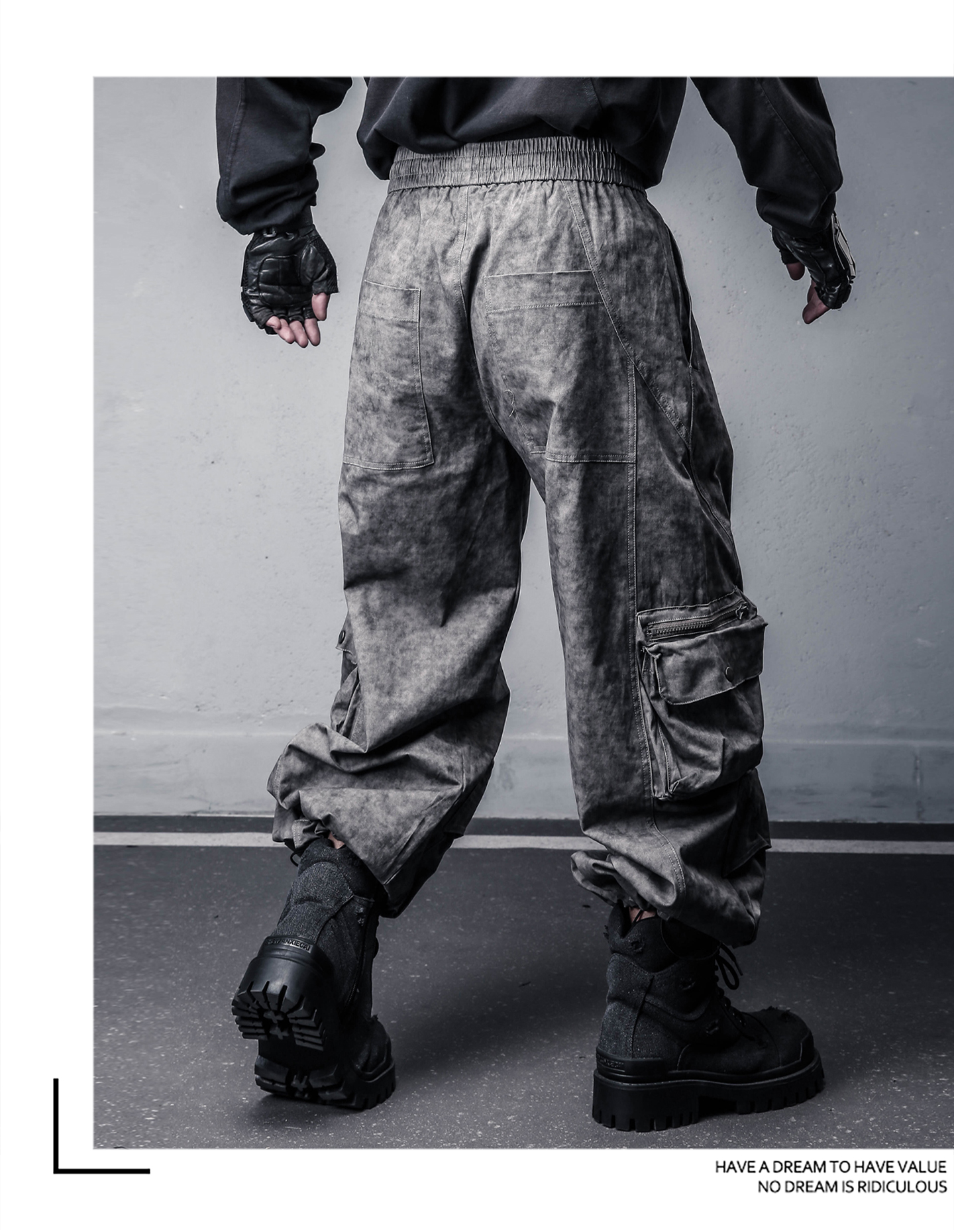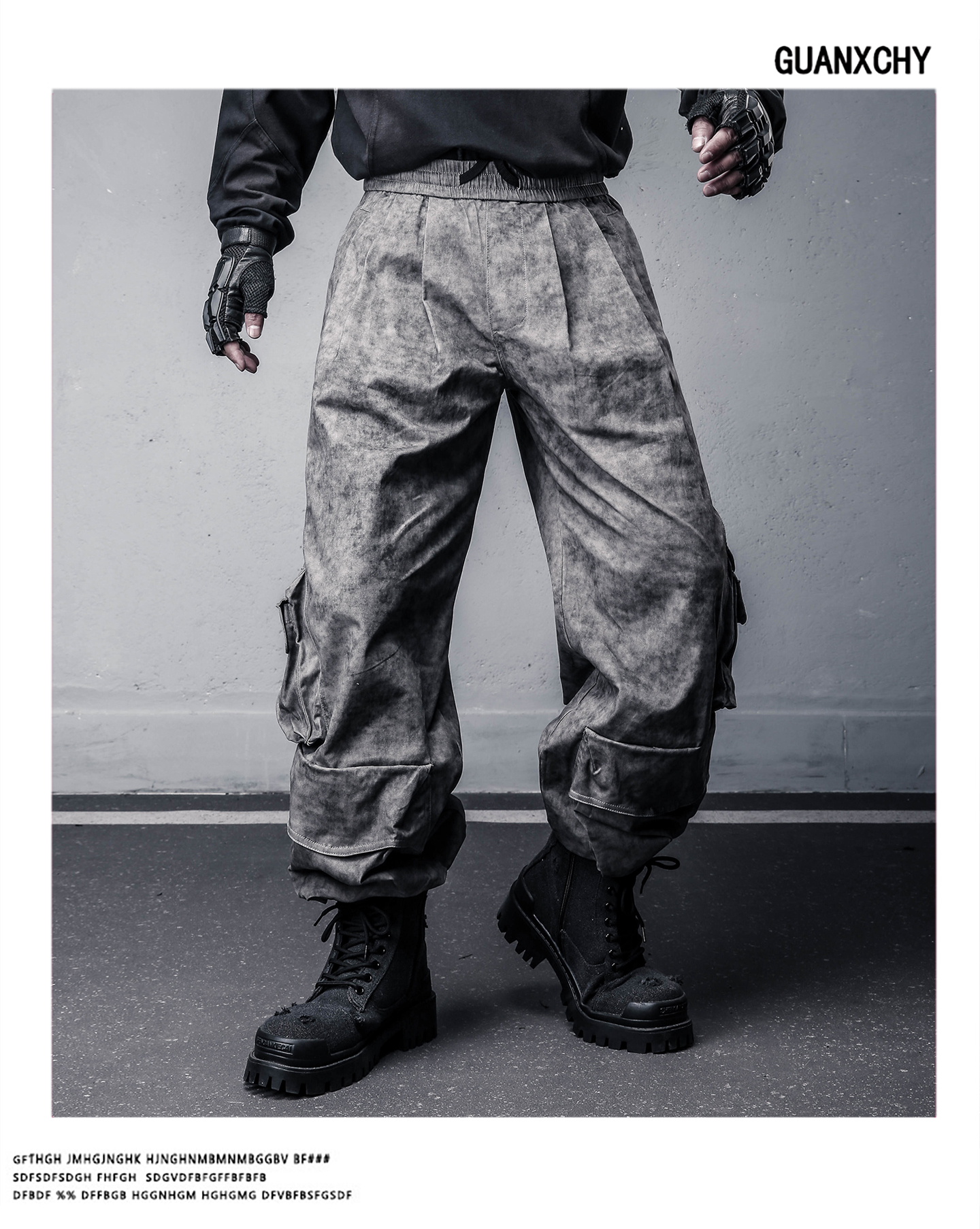 Tie-Dye Wash Large Pocket Wide Leg Pants WN22321