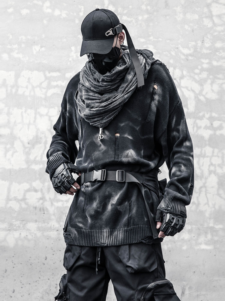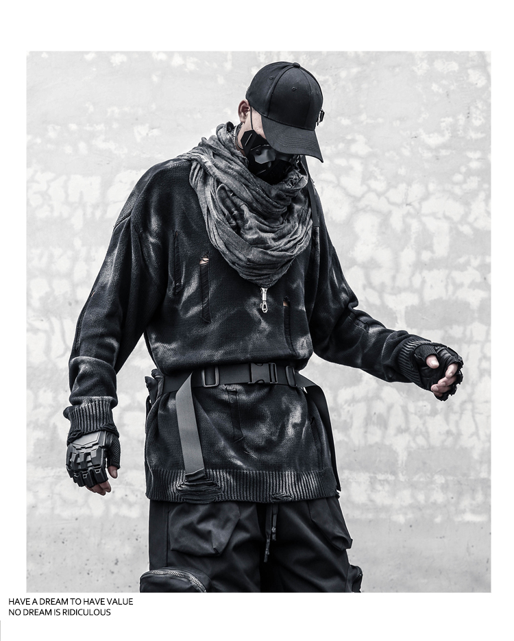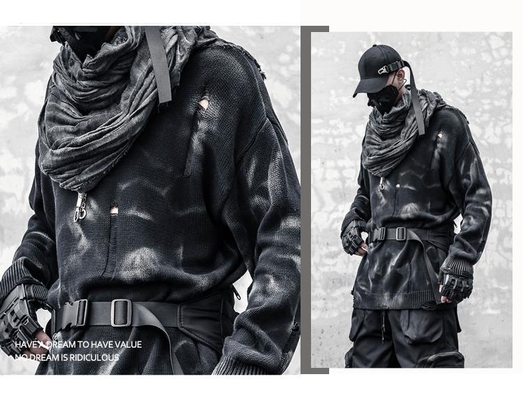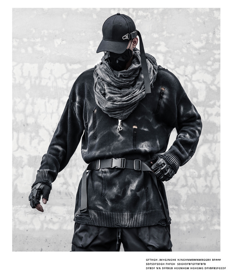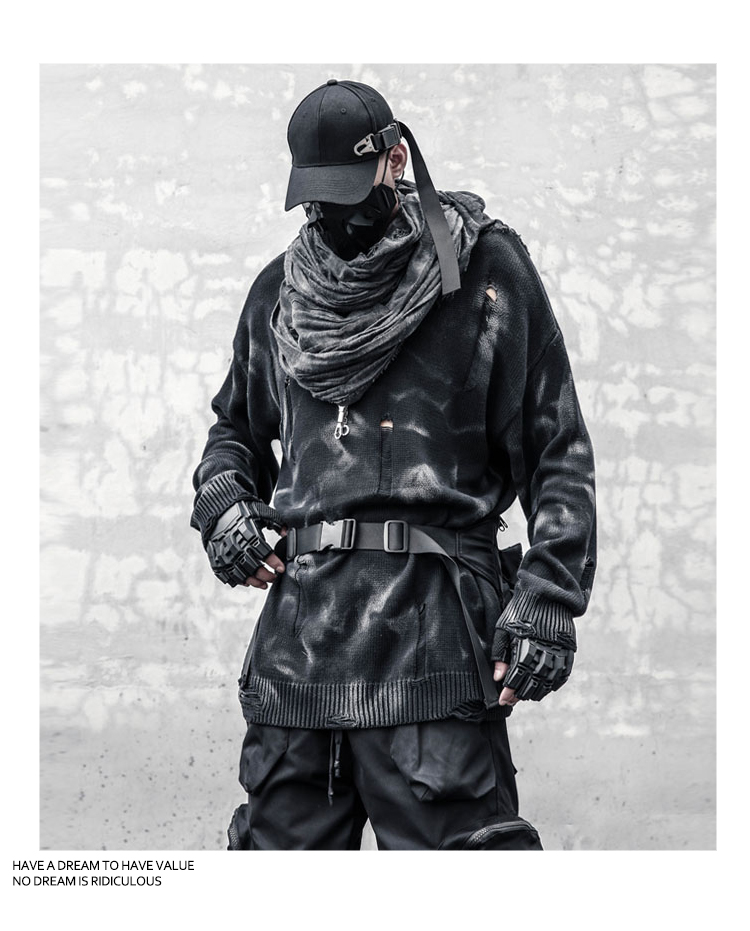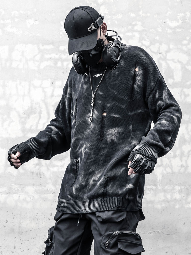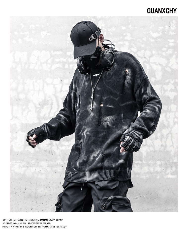 Wash Tie-Dye Damage Oversize Knit Sweater WN22328