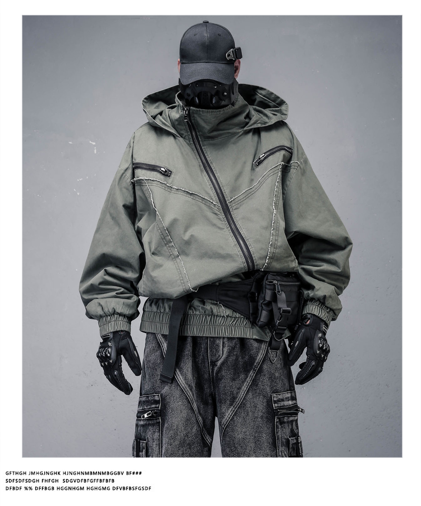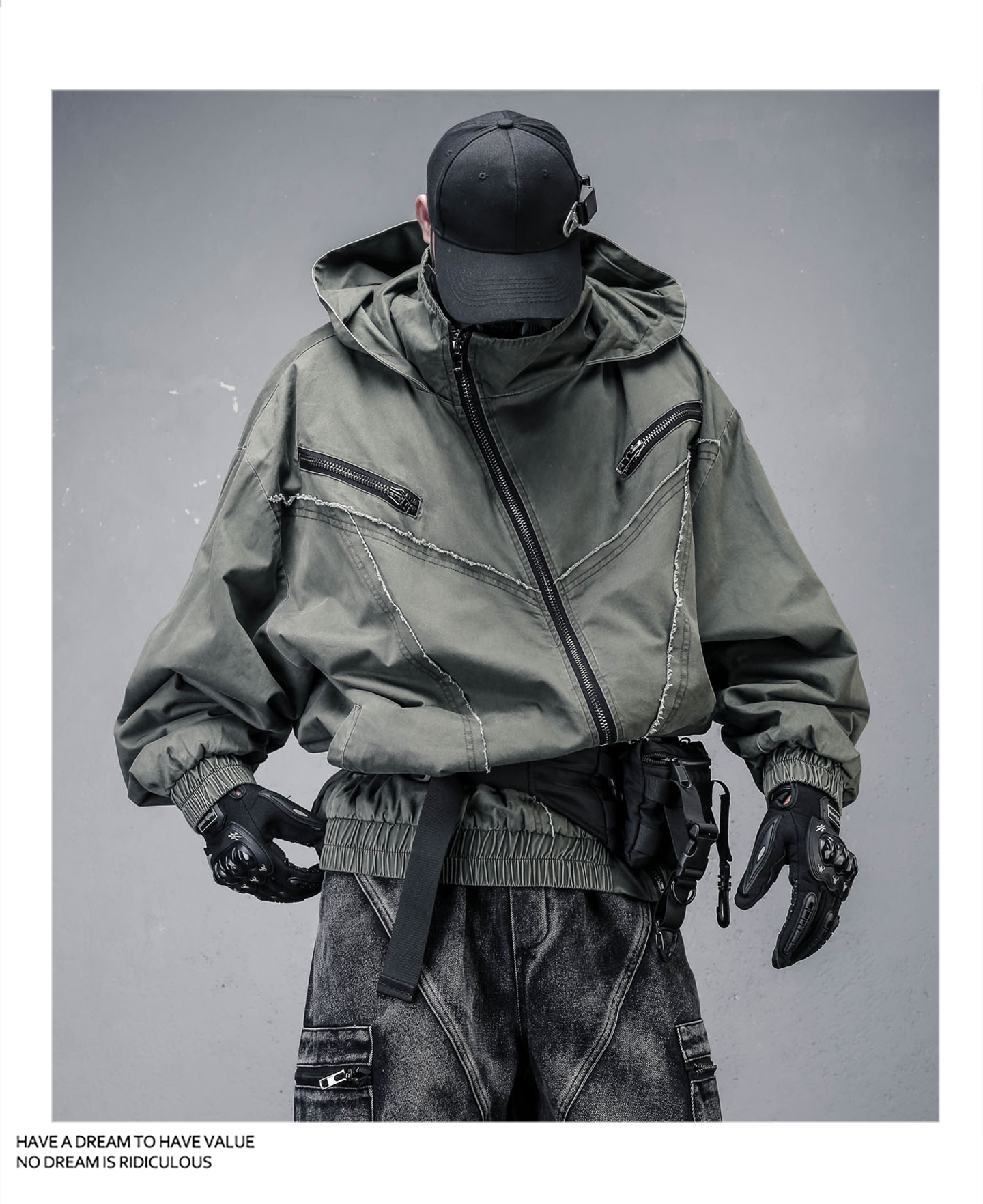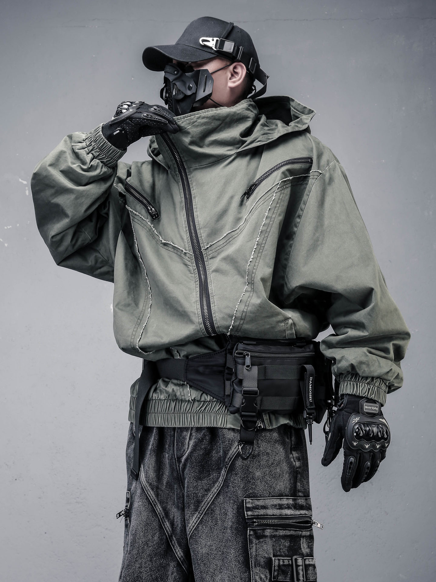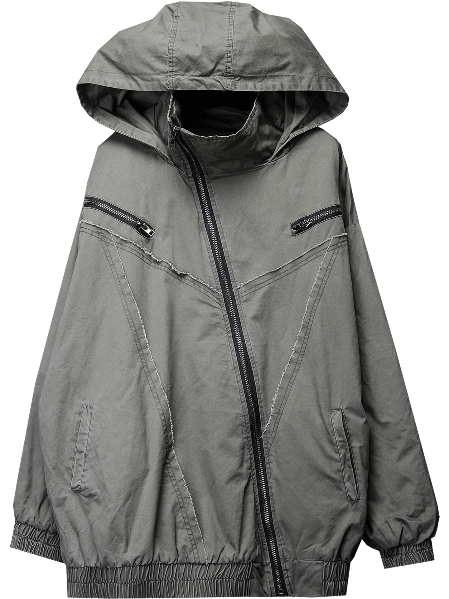 Wash Damage Raw Edge High-Neck Hooded Jacket WN22331