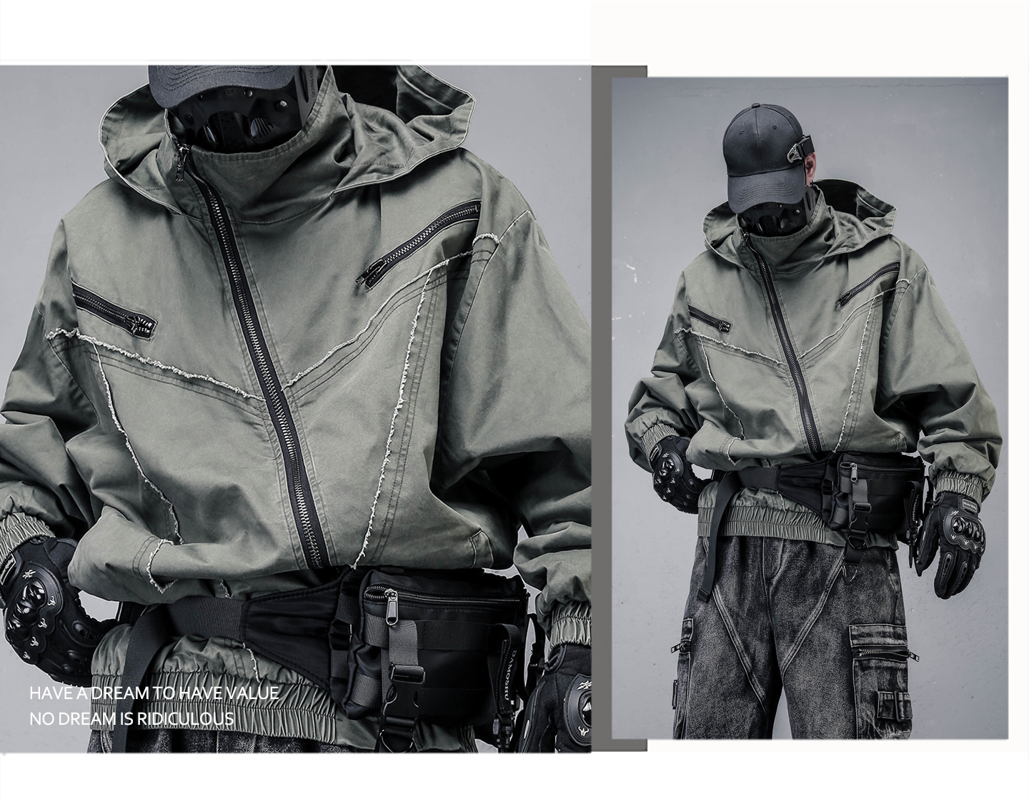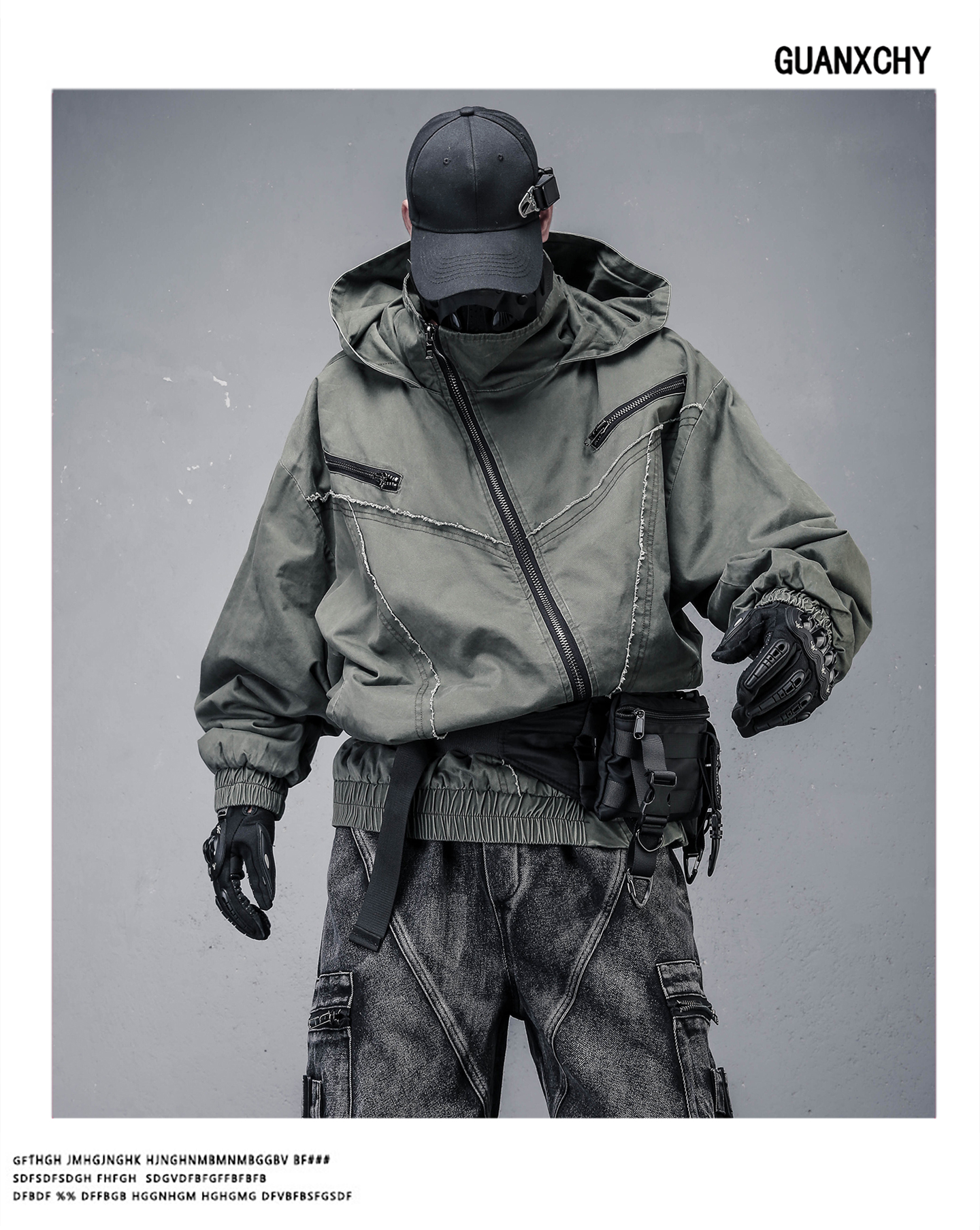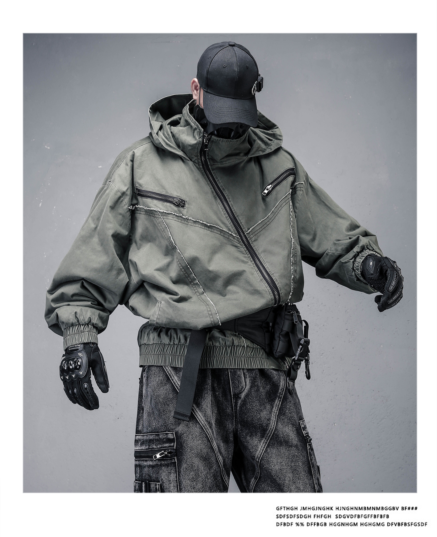 Wash Damage Raw Edge High-Neck Hooded Jacket WN22331