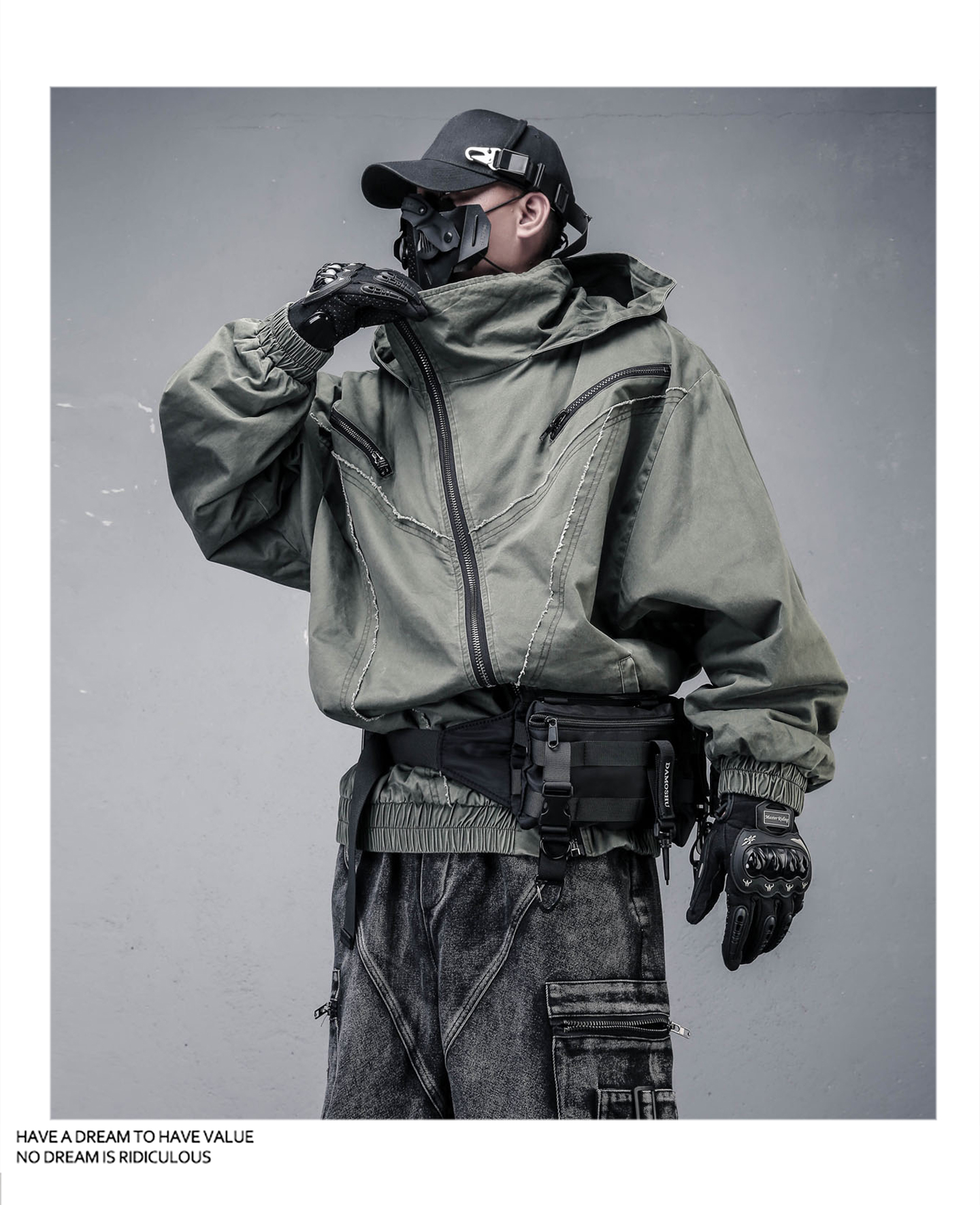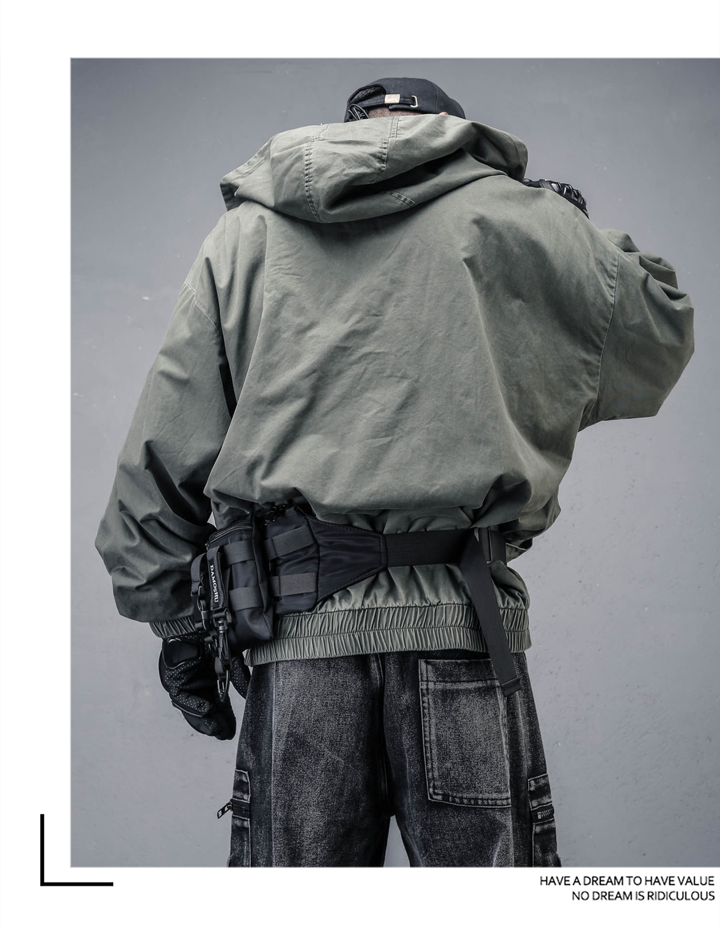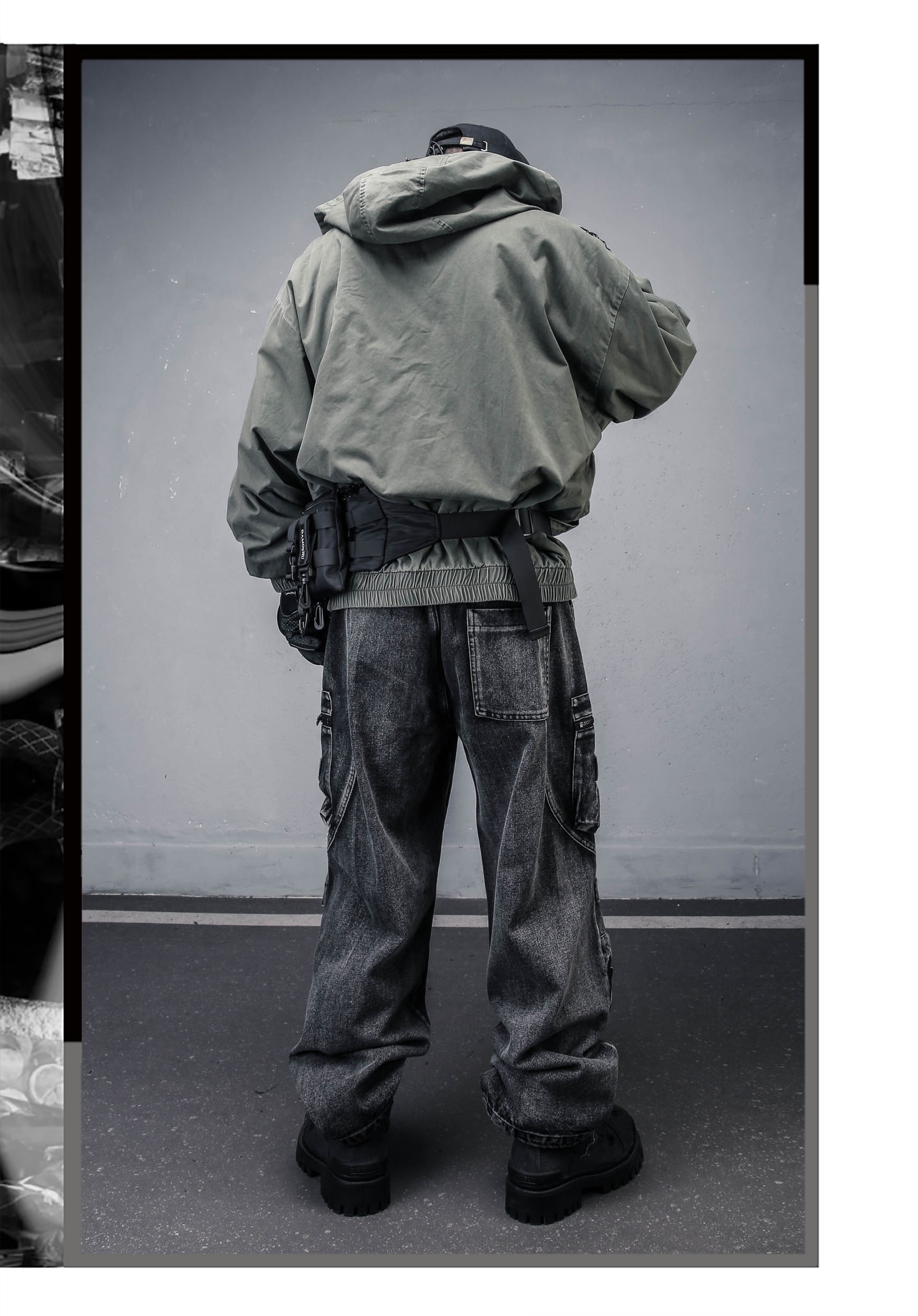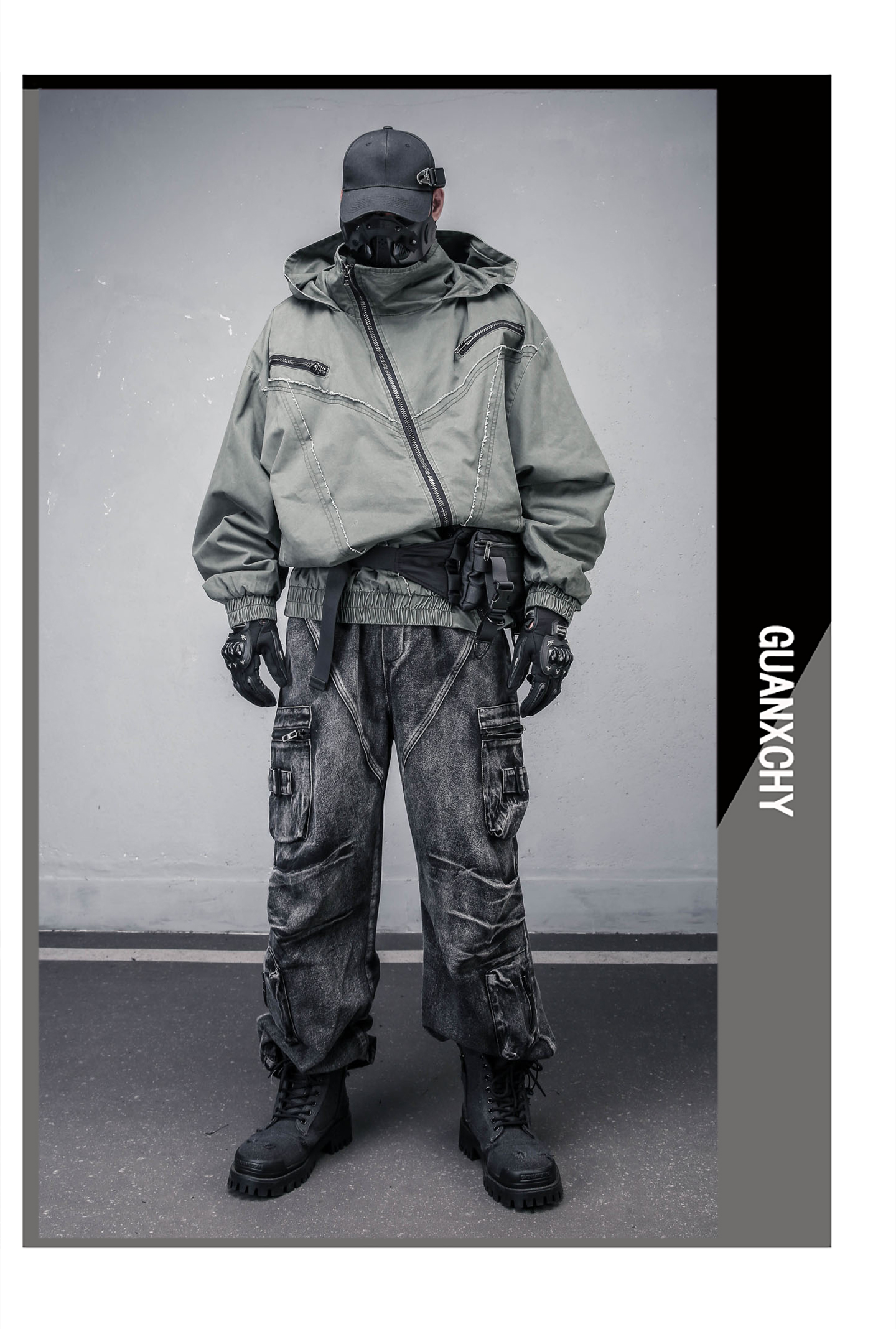 Wash Damage Raw Edge High-Neck Hooded Jacket WN22331