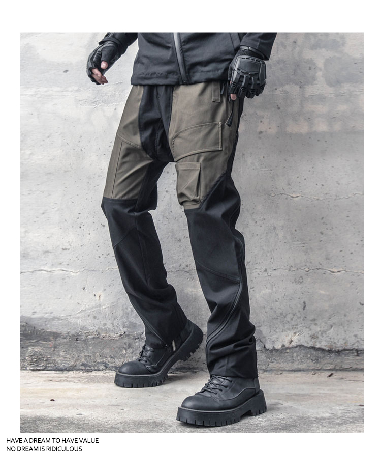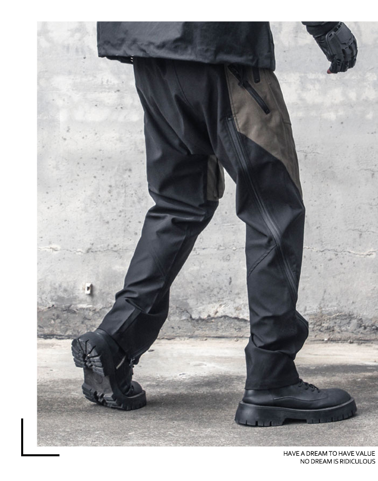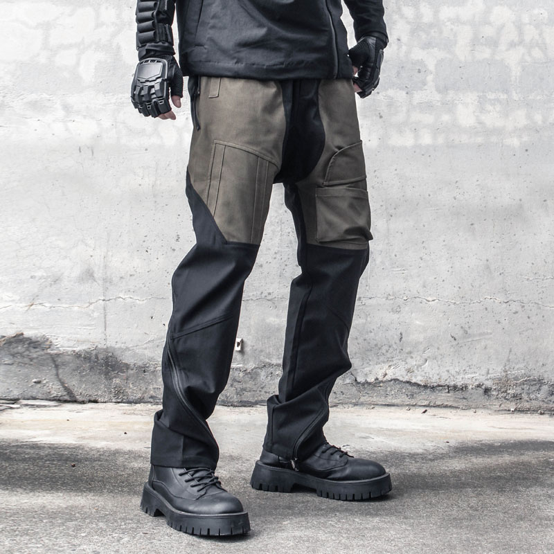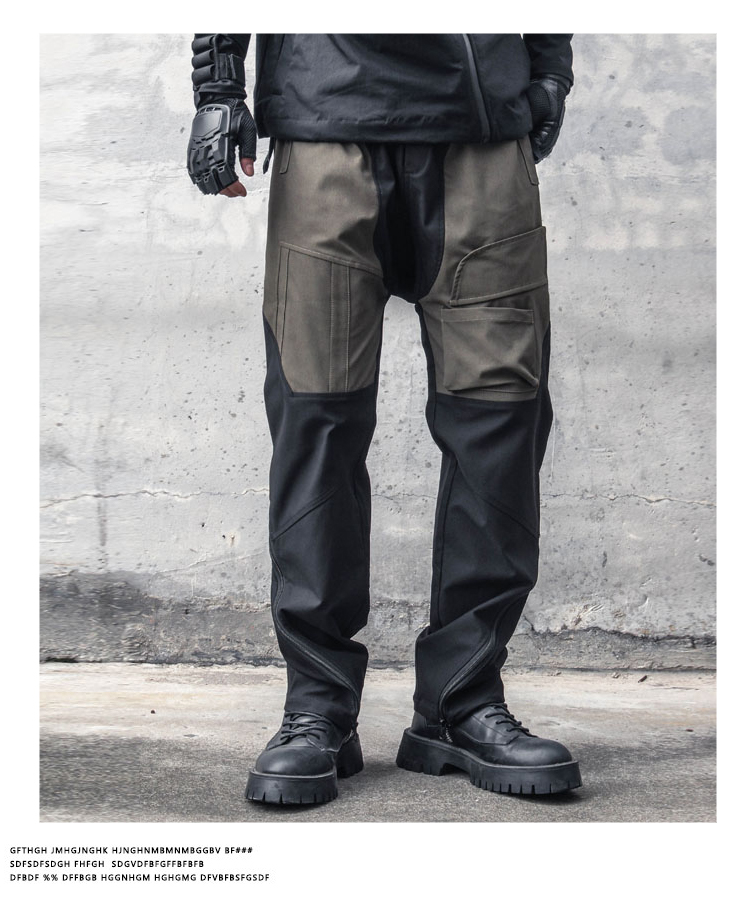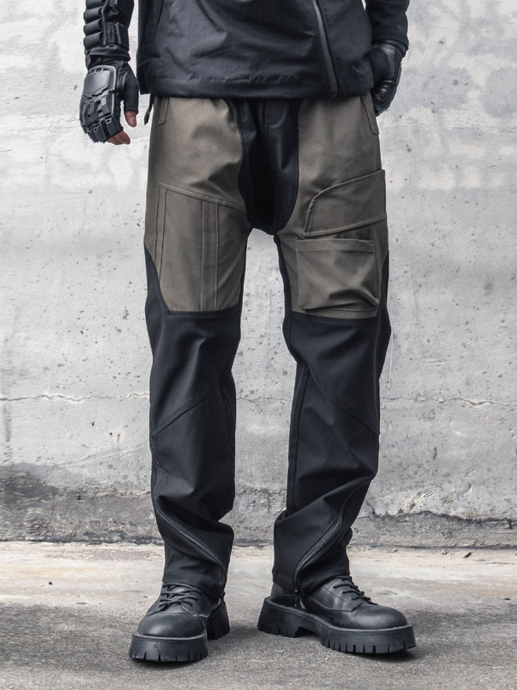 Zipper Colorblock Mix Patch Wide Leg Pants WN22366