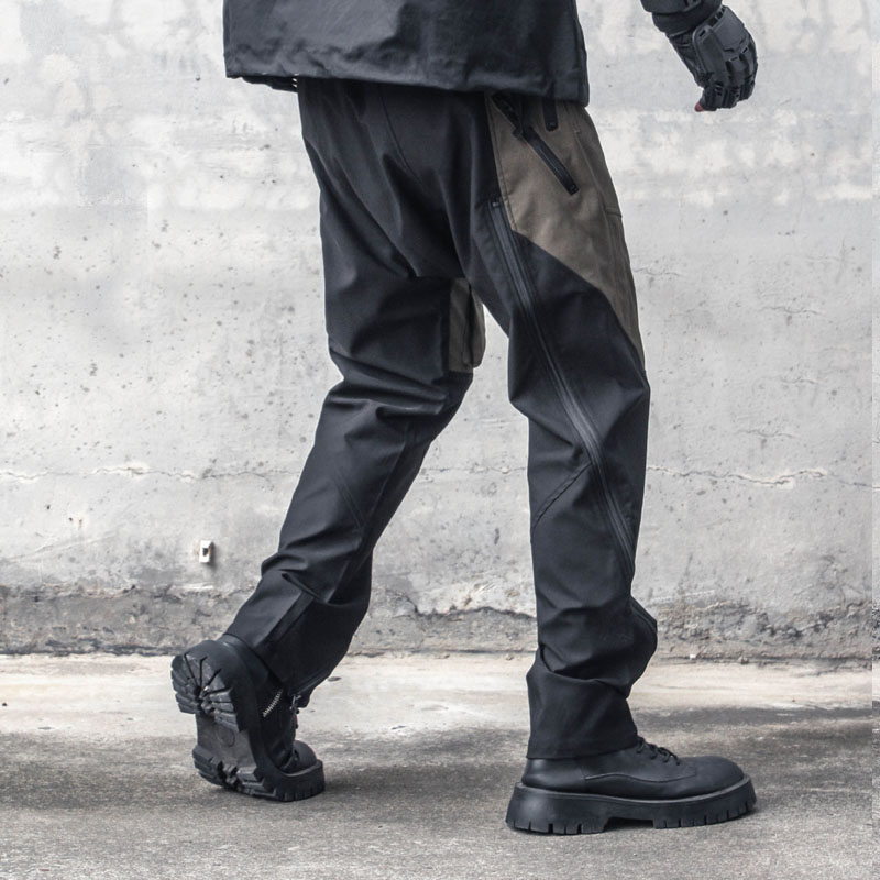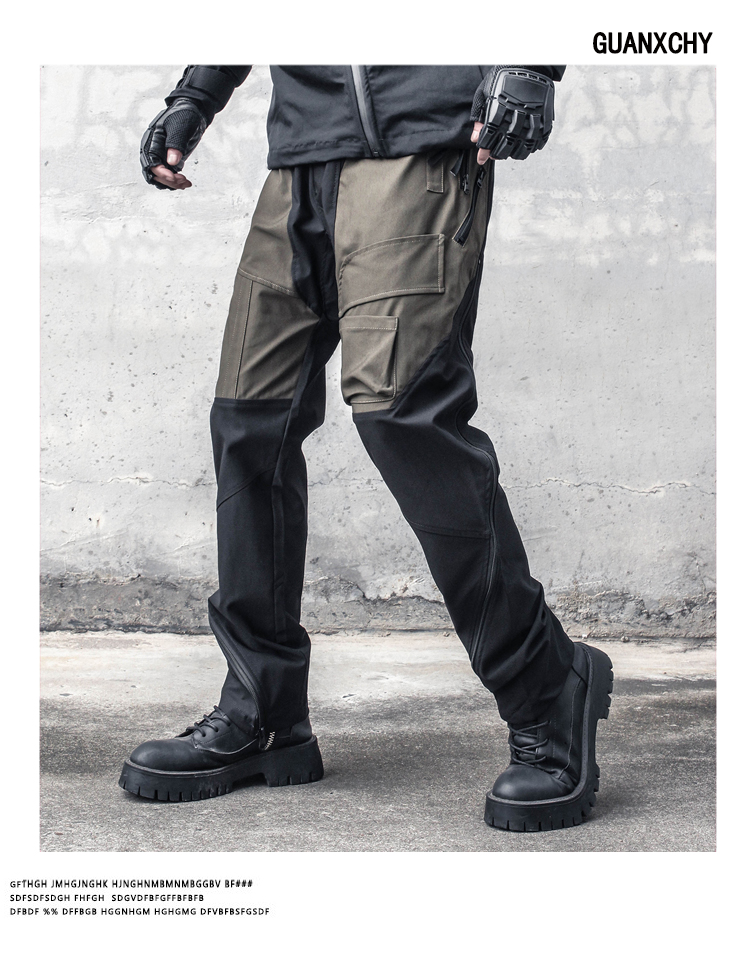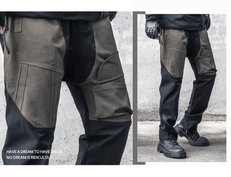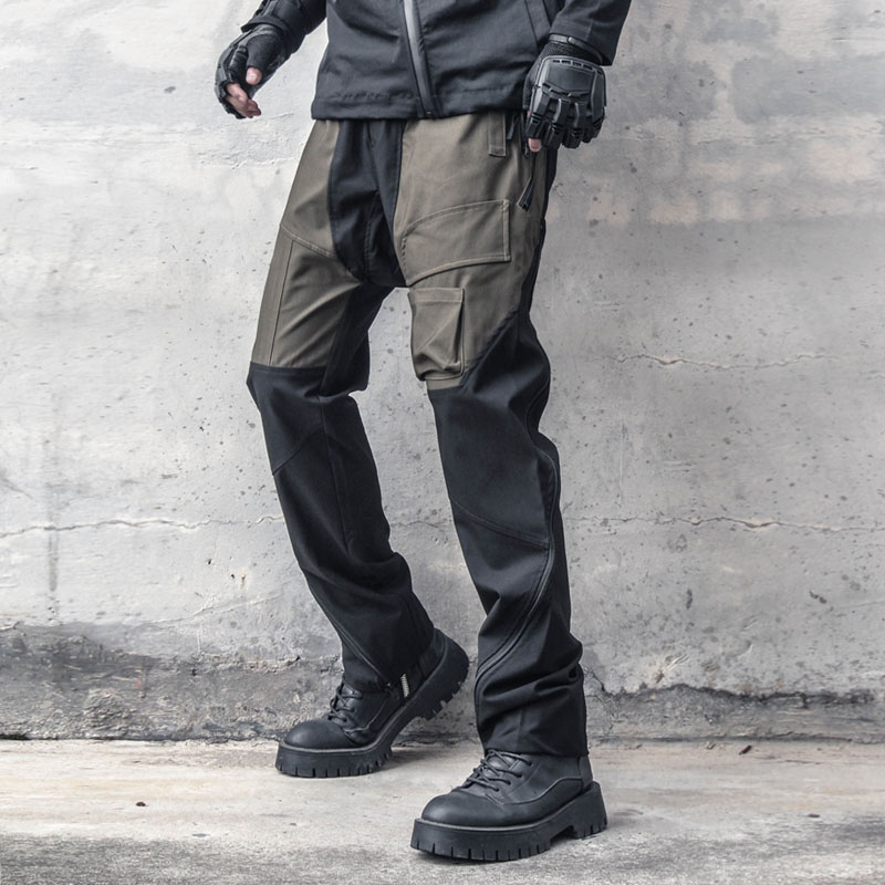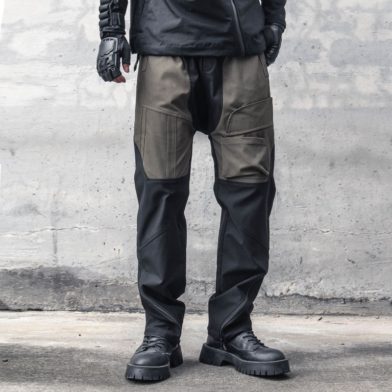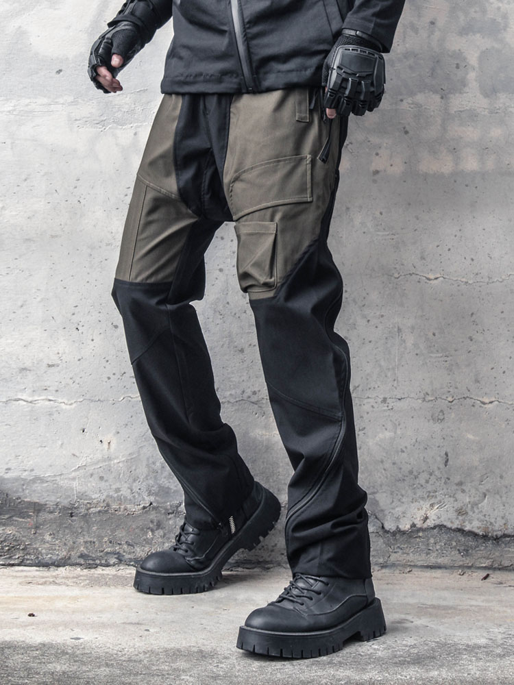Zipper Colorblock Mix Patch Wide Leg Pants WN22366